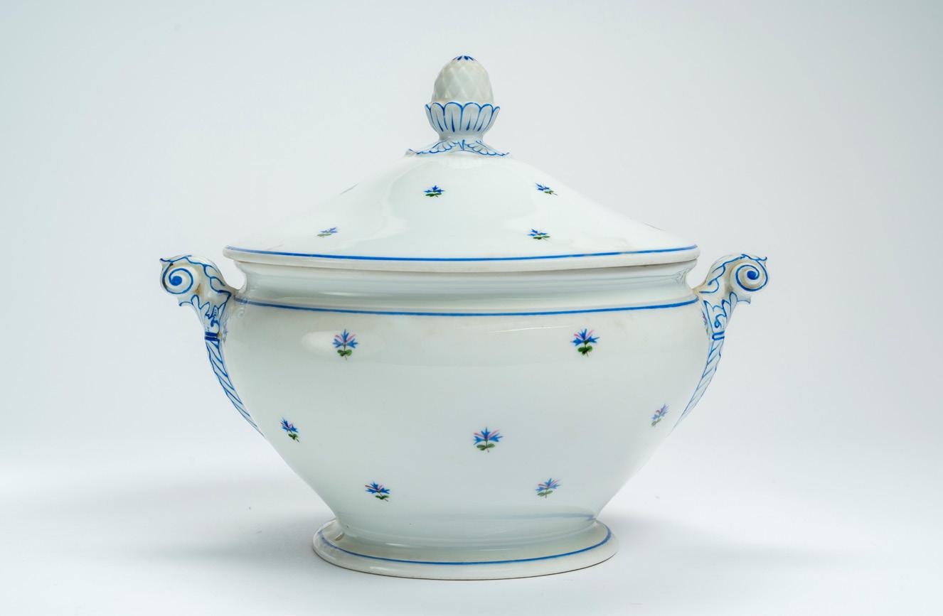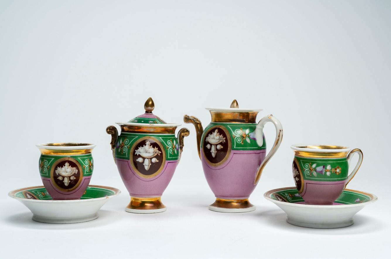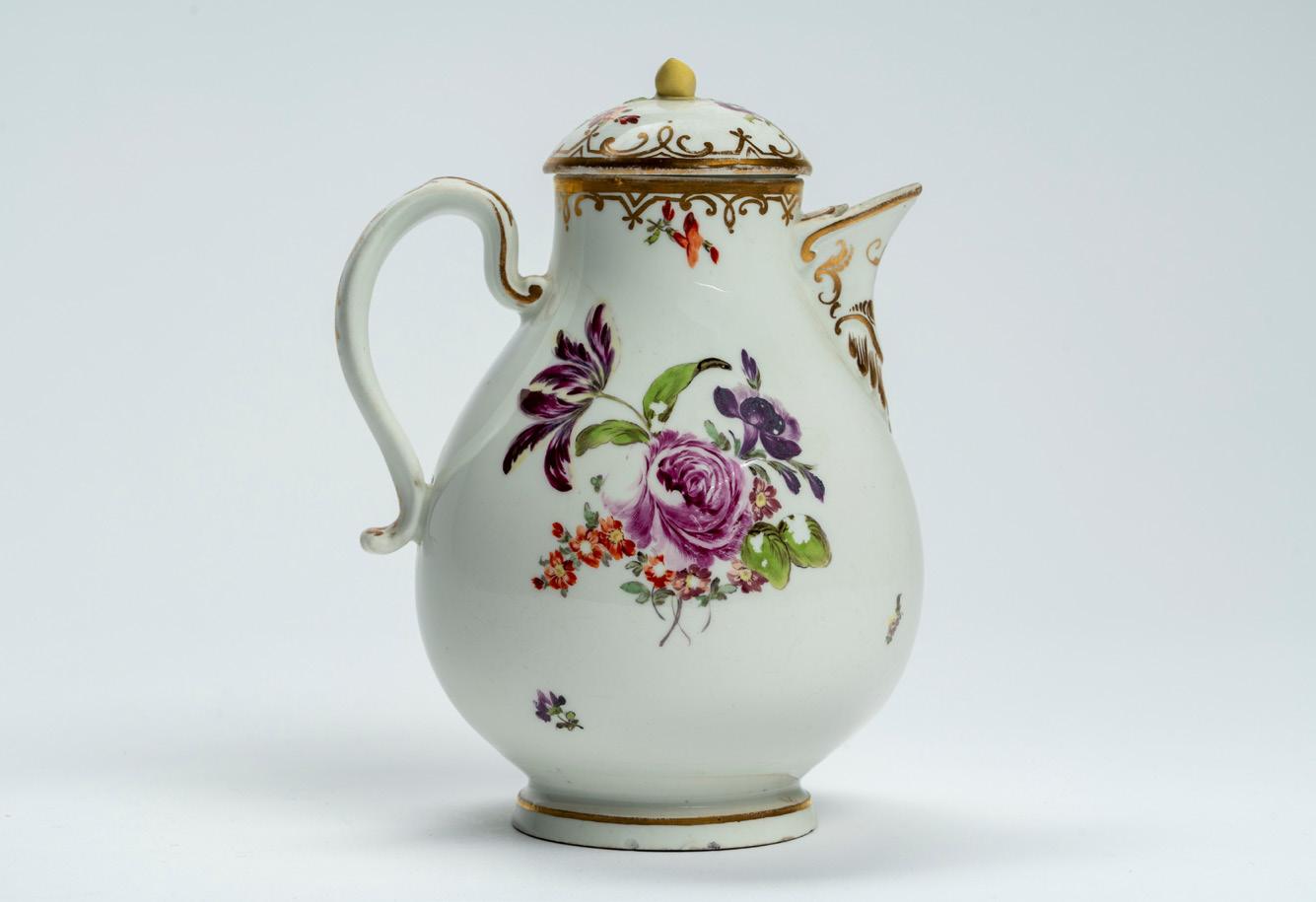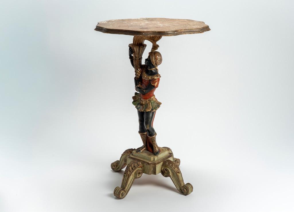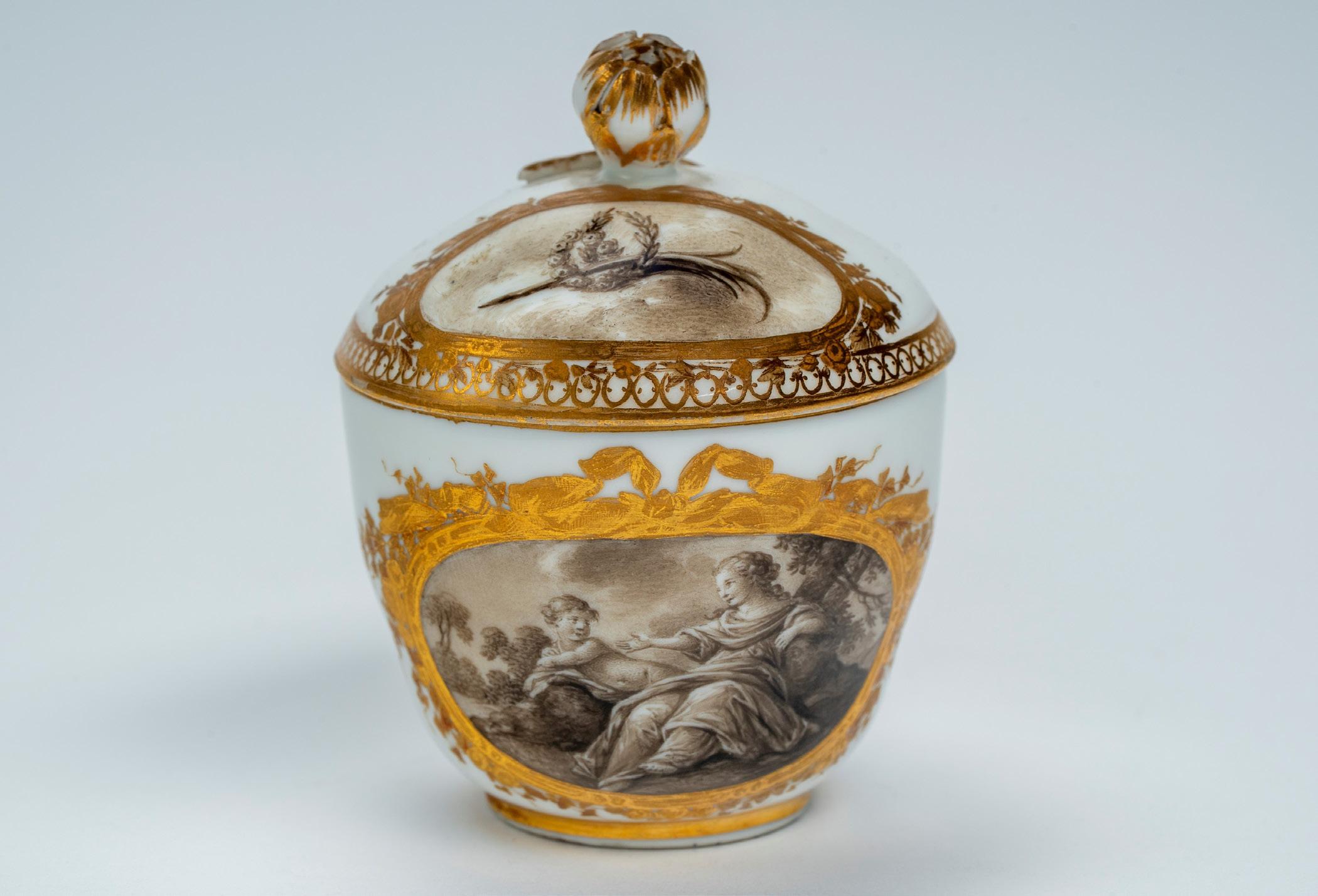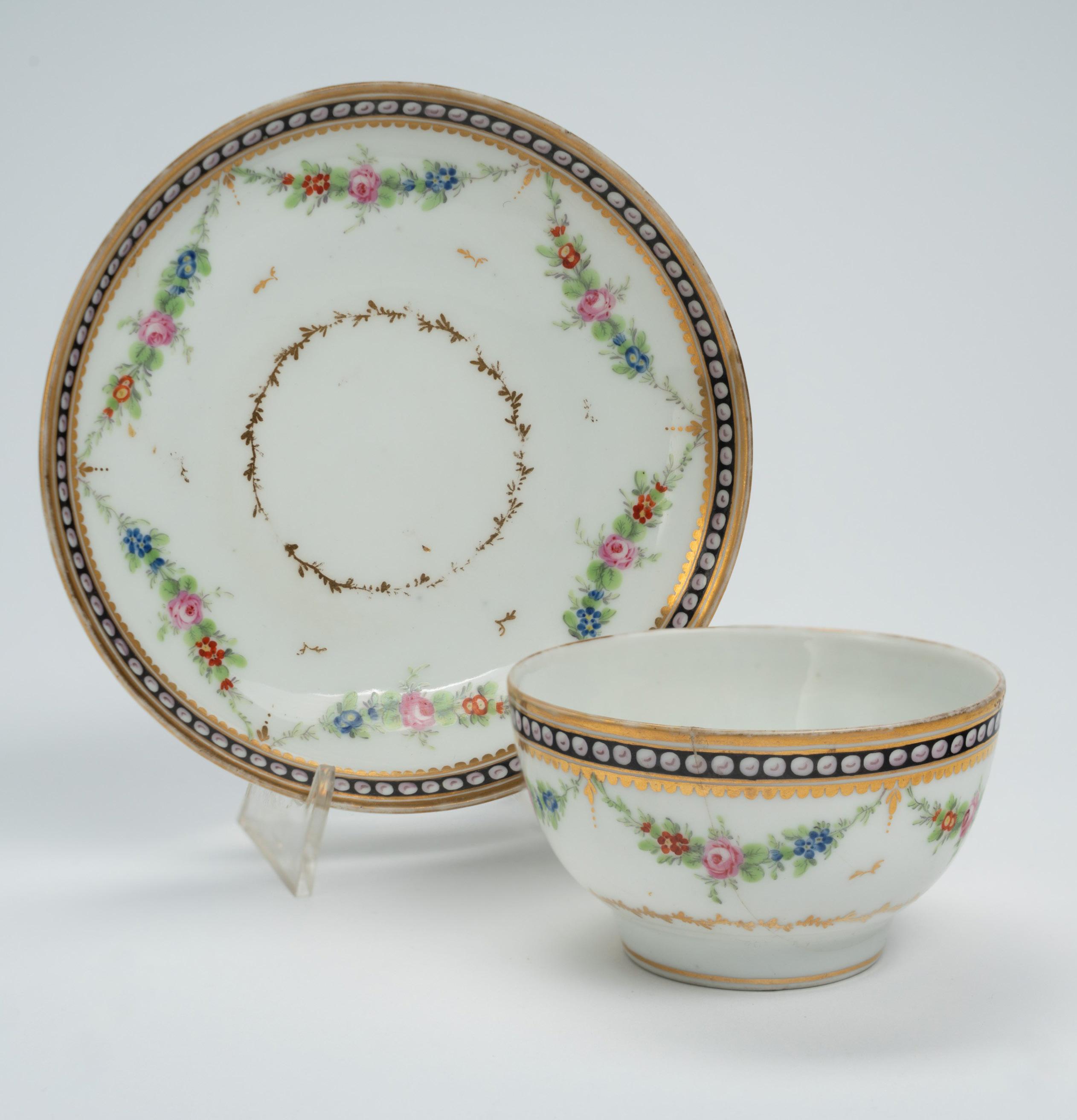 Poggianti su base a rocaille. L’orchestra, da un modello creato da Johann Joachim Kaendler nel 1753 e rivisto nel 1765 con Peter Reinicke, è composta da ventuno figure di musicanti e un leggio. L’ensemble comprende: clavicembalista, liutista, suonatore di cornamusa scozzese, chitarrista, percussionista al triangolo, direttore d’orchestra, violoncellista, batterista, assistente, arpista, tamburino (tamburo laterale a spalla), soprano, violinista, oboista, trombettista, due coriste con spartito, cornista (con corno francese), flautista, flautista traverso e cantante. Alcuni esemplari con tracce di etichetta cartacea di provenienza “L. Beltrami, Torino”. Marchio di fabbrica, numeri impressi e dipinti in oro e/o rosso sotto le basi.