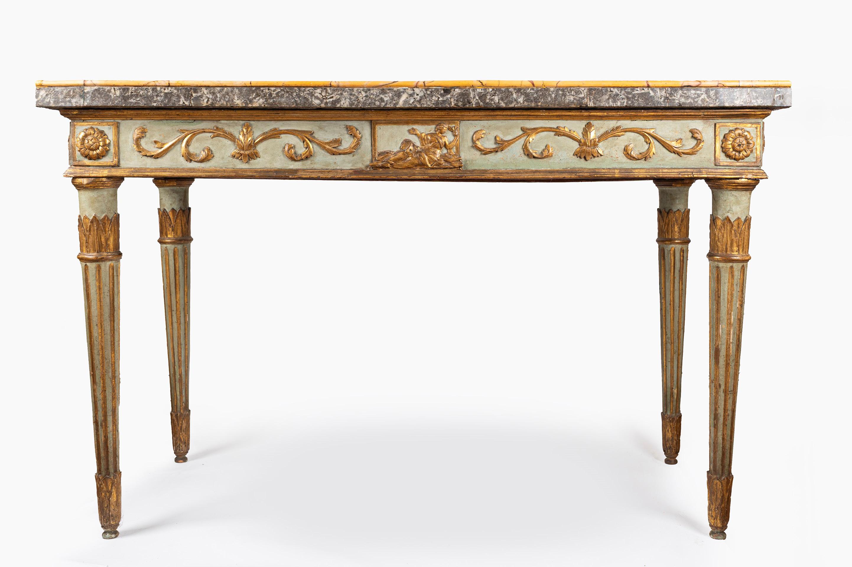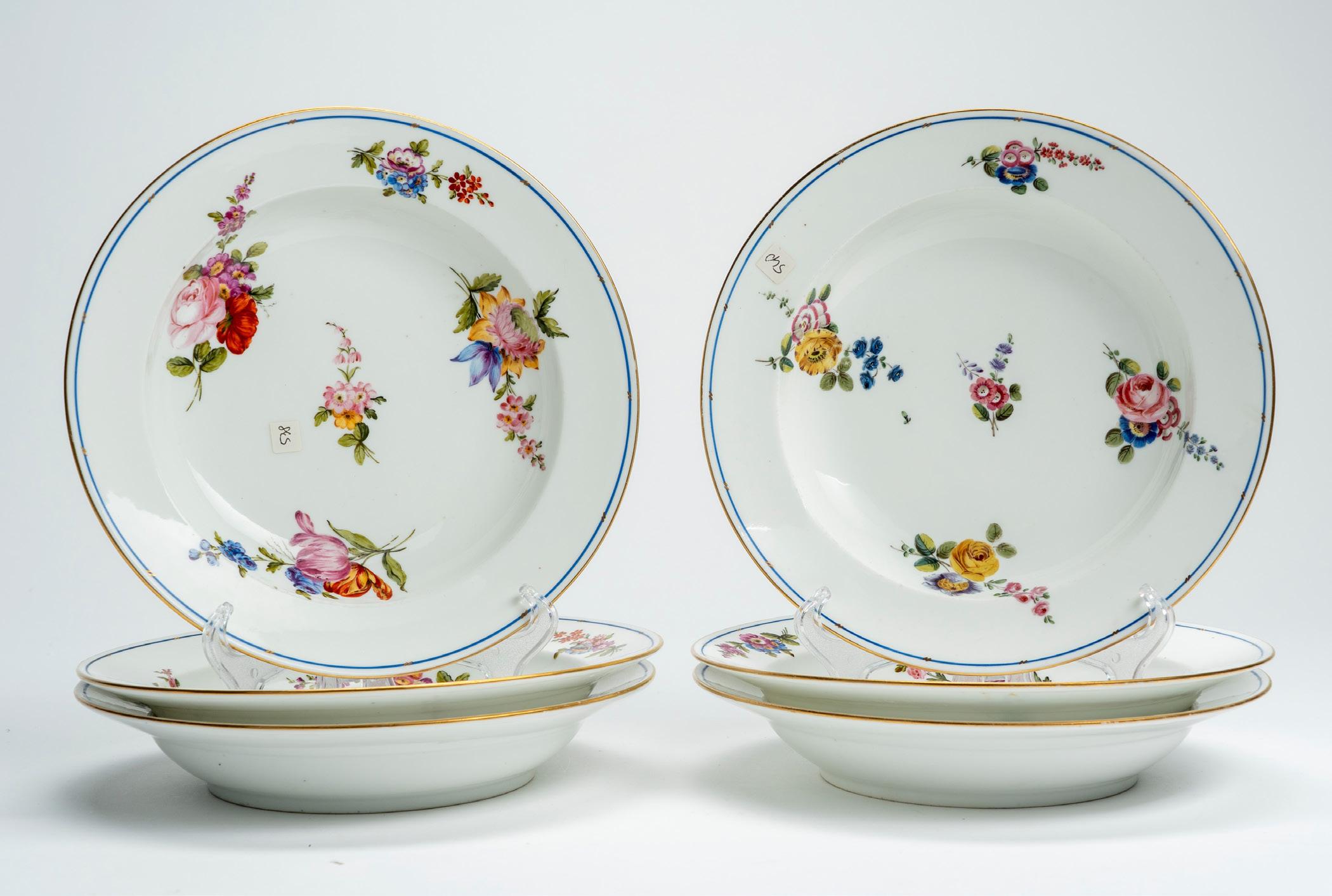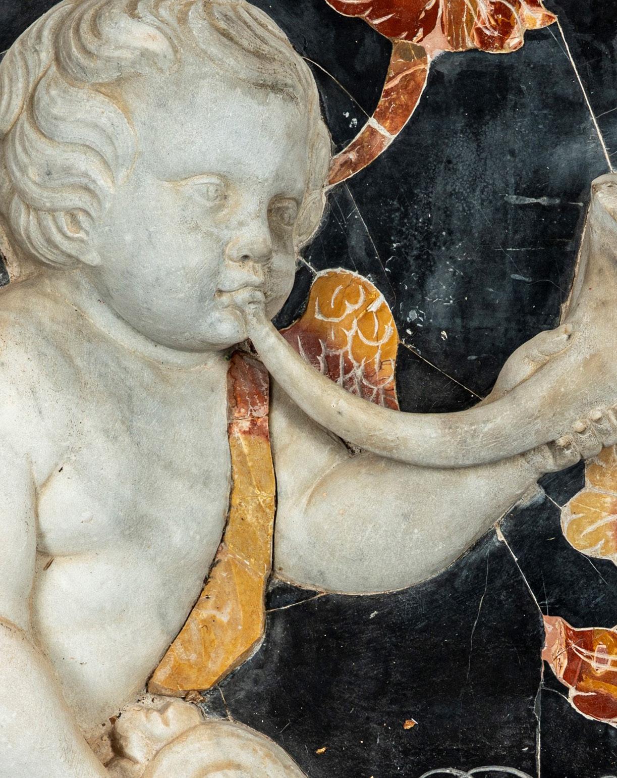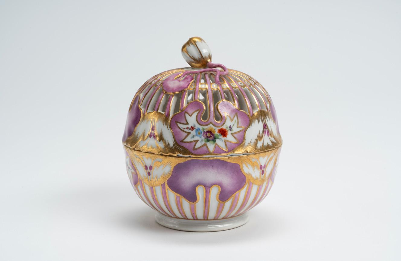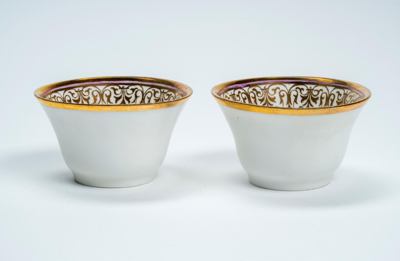 Poggianti su base a rocaille. L’orchestra, da un modello creato da Johann Joachim Kaendler nel 1753 e rivisto nel 1765 con Peter Reinicke, è composta da ventuno figure di musicanti e un leggio. L’ensemble comprende: clavicembalista, liutista, suonatore di cornamusa scozzese, chitarrista, percussionista al triangolo, direttore d’orchestra, violoncellista, batterista, assistente, arpista, tamburino (tamburo laterale a spalla), soprano, violinista, oboista, trombettista, due coriste con spartito, cornista (con corno francese), flautista, flautista traverso e cantante. Alcuni esemplari con tracce di etichetta cartacea di provenienza “L. Beltrami, Torino”. Marchio di fabbrica, numeri impressi e dipinti in oro e/o rosso sotto le basi.