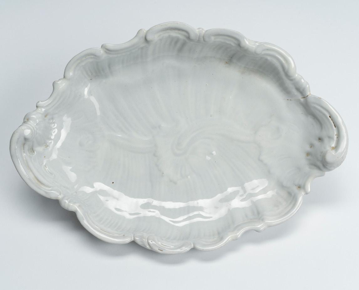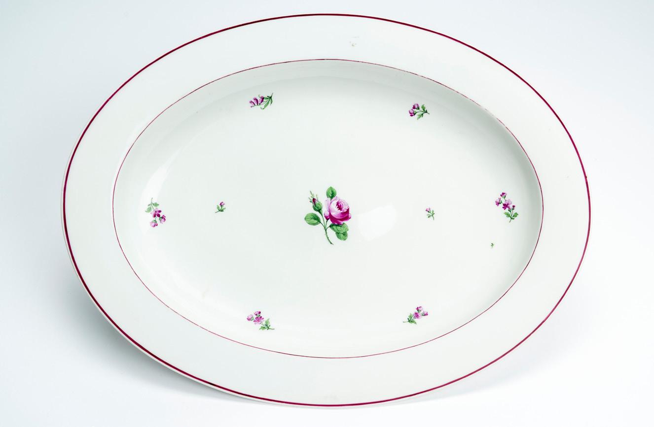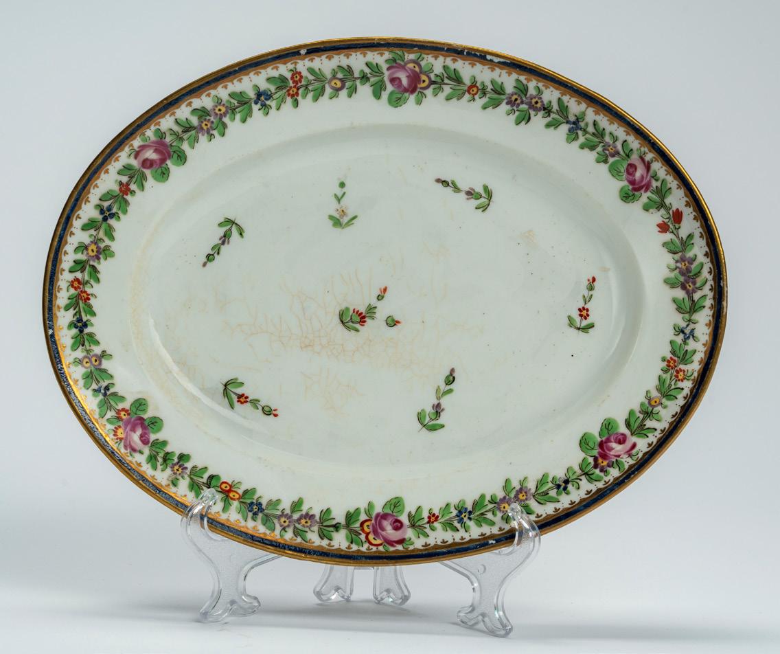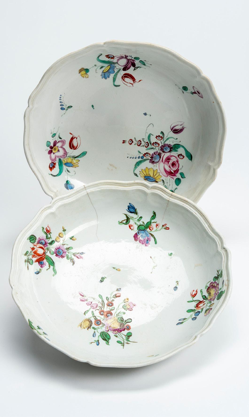 Vassoio ovale in maiolica con decoro “a giardinetto”. Manifattura P. Antonibon–Baccin, Nove, circa 1770