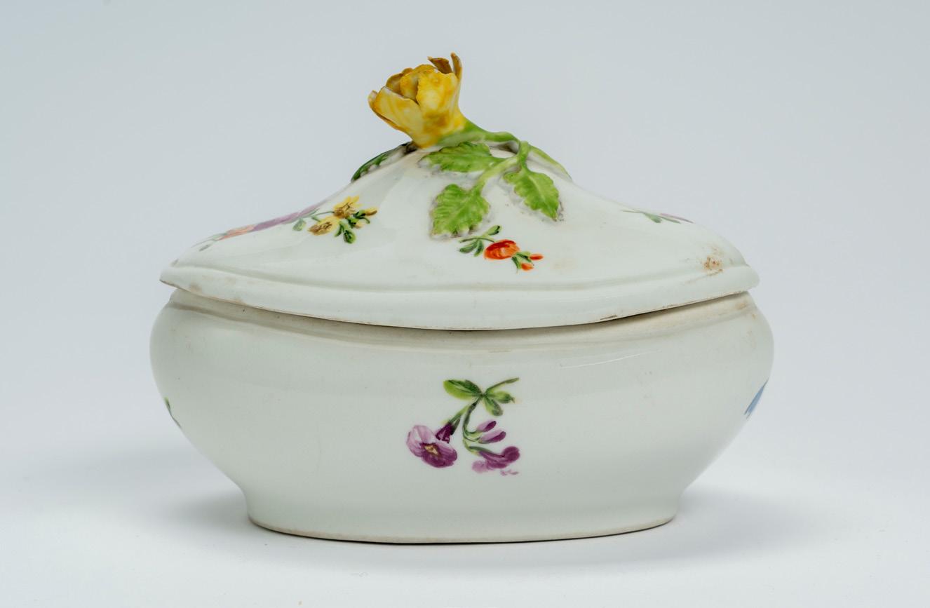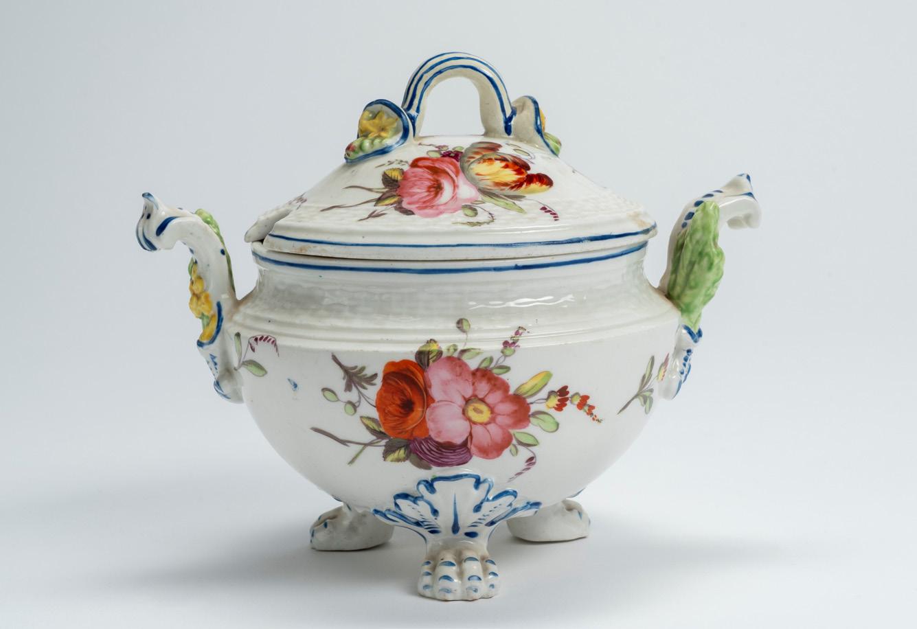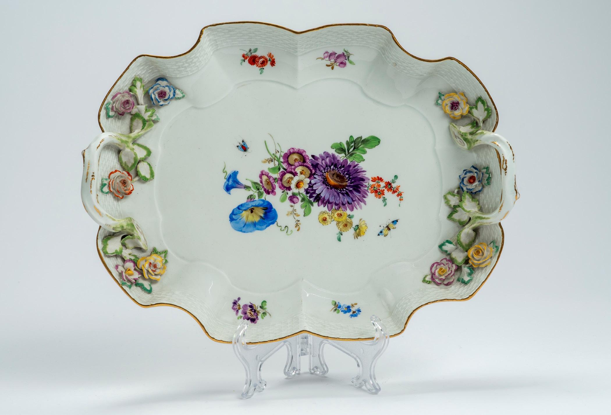 Vassoio ovale in maiolica con decoro “a giardinetto”. Manifattura P. Antonibon–Baccin, Nove, circa 1770