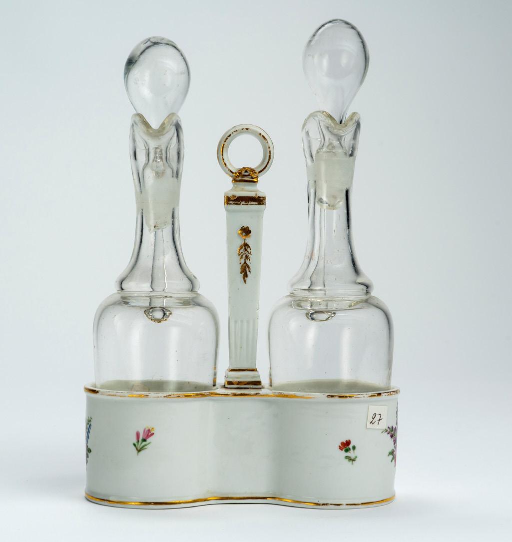 vassoio polilobato poggiante su piede basso, ringhierina traforata e cordonata che si ripete in un anello centrale adibito a portaoggetti. Difetti