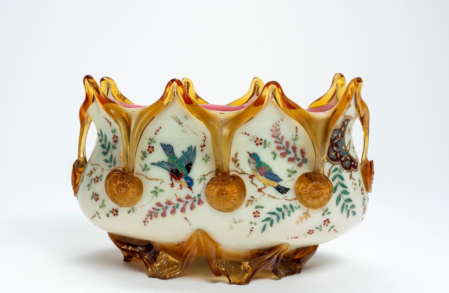 Lievi sbeccature lungo il bordo e piccola mancanza allo smalto sul profilo interno della falda.