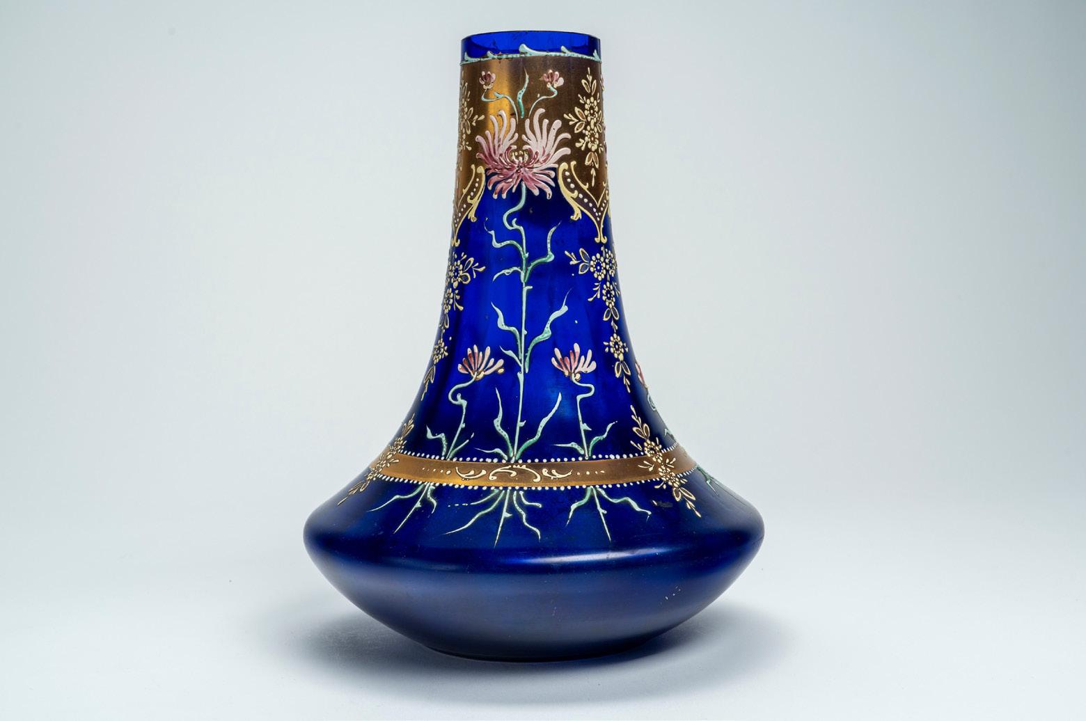 Pendola con cassa in vetro montata in bronzo decorato a smalti policromi. Francia o Austria, fine XIX – inizio XX secolo, cm 45x21x18