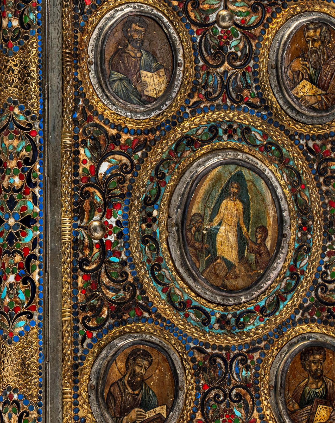 Le “Dodici Feste” sono ra igurate in riquadri separati, disposti attorno alla scena centrale dominante della Risurrezione di Cristo.