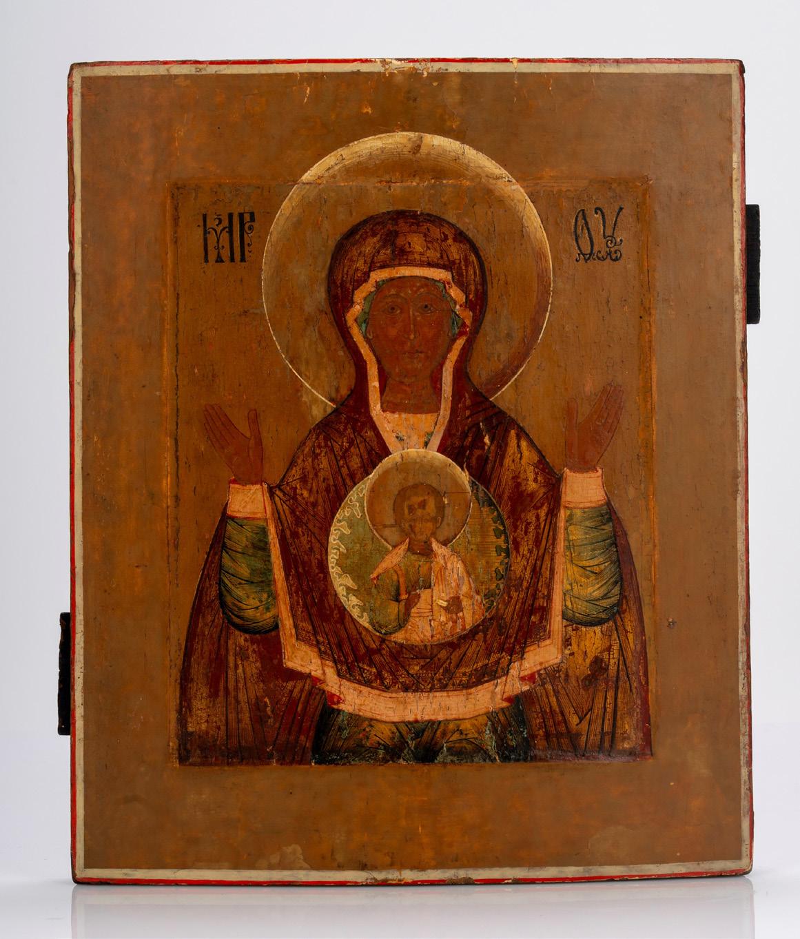 Icona su tavola ra igurante Madonna della Deesis. Russia, secolo XIX
