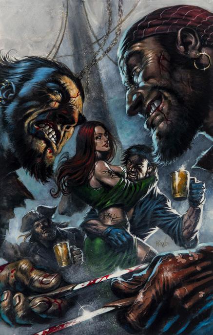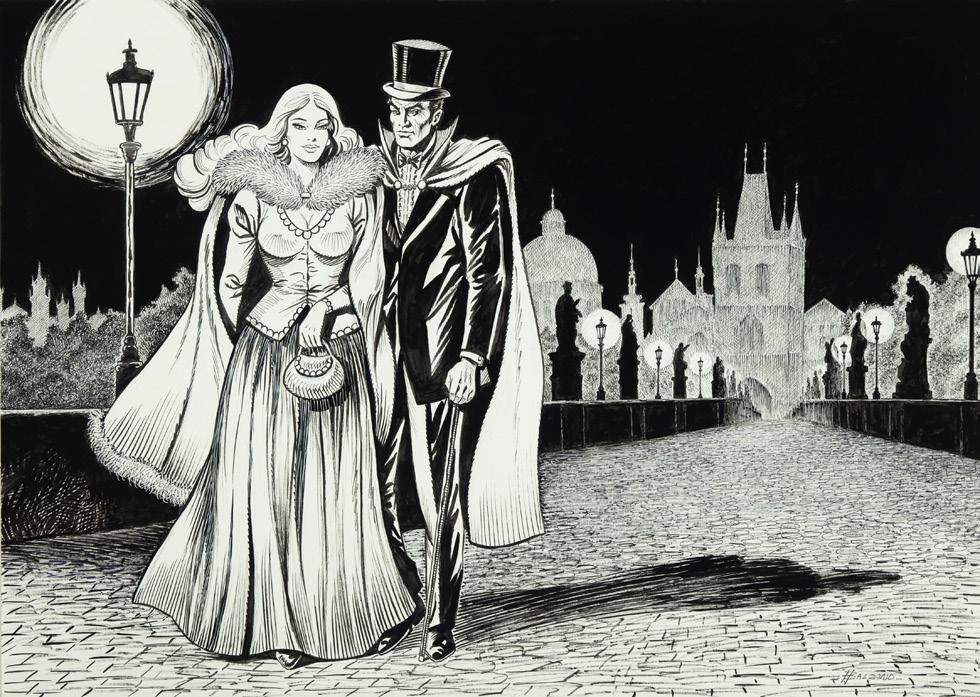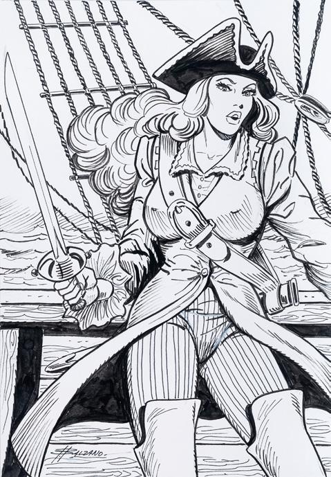 Illustrazione originale realizzata da Vega intitolata “El Altar”, edita dalla Norma Editorial nel 2002. Al retro: << la cautiva es la ofrenda, que espera en el altar el inicio del ritual (Il prigioniero è l’offerta che attende sull’altare affinché il rituale abbia inizio) >>. Fori di affissione al margine superiore.