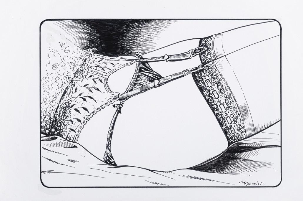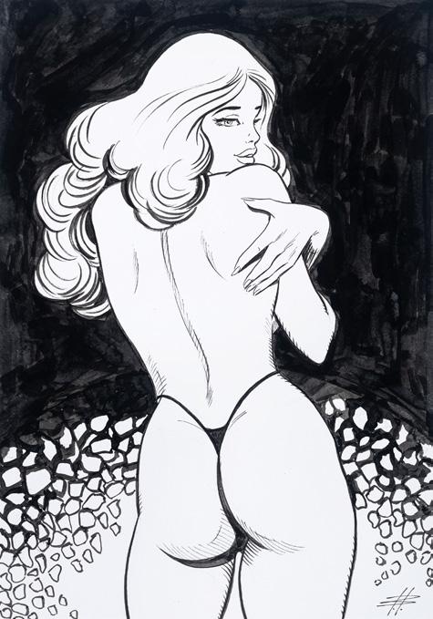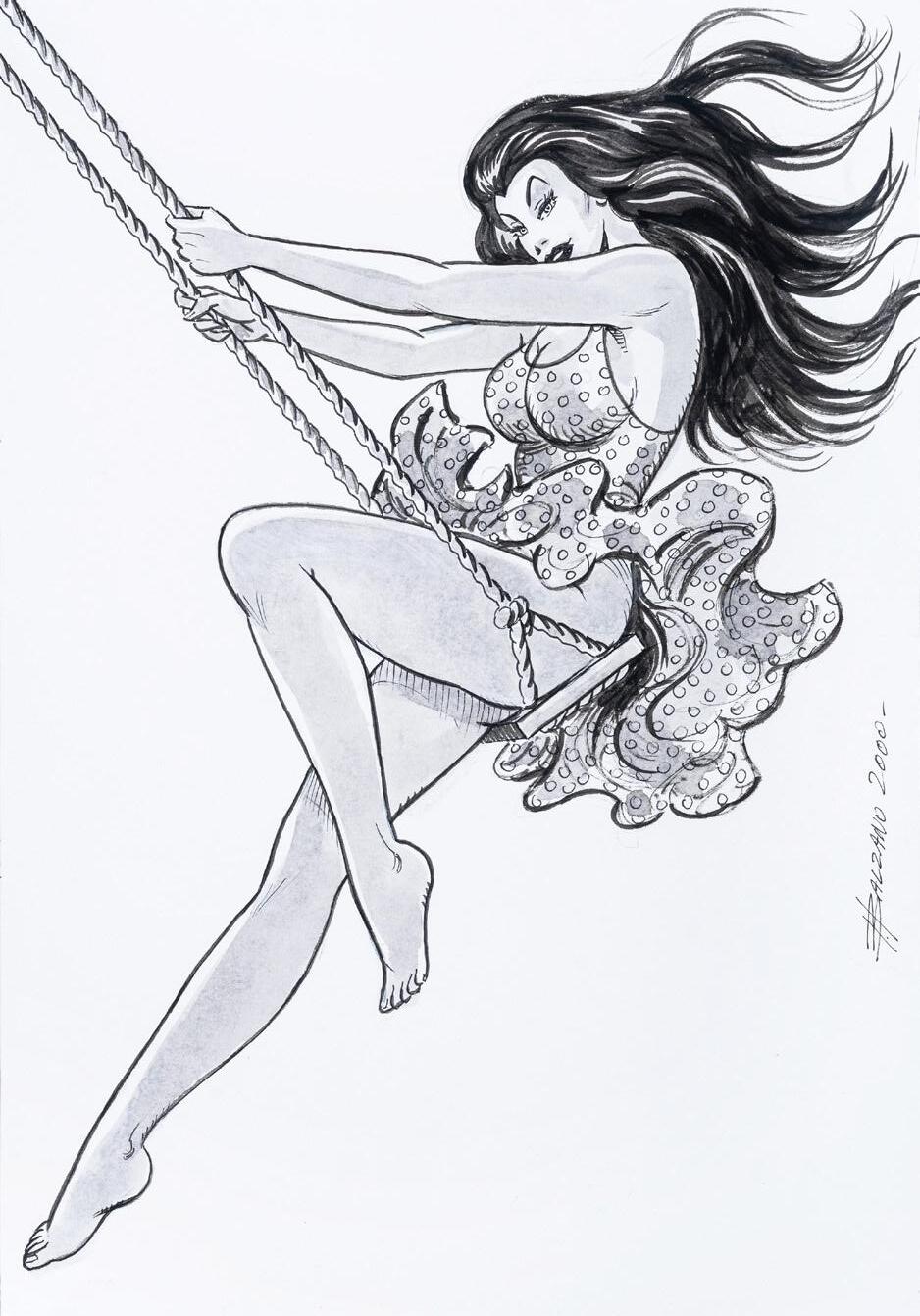 Illustrazione originale realizzata da Frollo negli anni ‘80, utilizzata come copertina del volume “Le donne di Leone Frollo” edito da Lo Scarabeo nel 2003. Firmata.