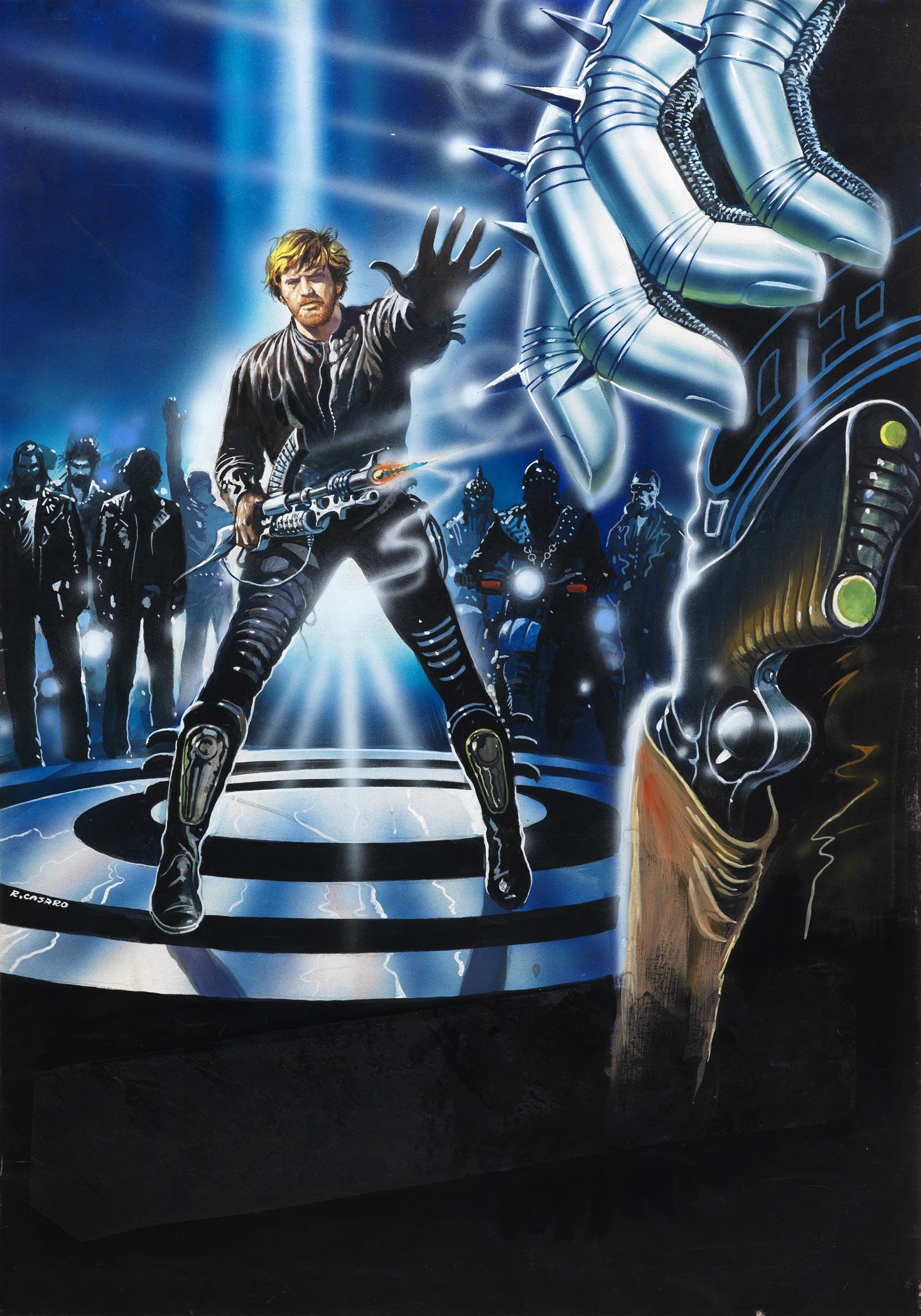 Il vero punto di svolta nella carriera di Casaro arriva tra la fine degli anni Settanta e l’inizio degli anni Ottanta, quando il suo talento viene notato anche fuori dall’Italia. In un momento storico in cui Hollywood riscopre il valore del grande manifesto illustrato, Casaro diventa uno dei pochi artisti europei chiamati a lavorare stabilmente per le major americane. Trasferitosi per lunghi periodi negli Stati Uniti, realizza manifesti per film di enorme successo internazionale come: 007 - Mai dire mai, La storia infinita, Rambo, Conan il barbaro, Flash Gordon, C’era una volta in America, Dune, L’ultimo imperatore, e molti altri. Le sue immagini accompagnano opere destinate a entrare nell’immaginario collettivo globale, contribuendo in modo decisivo alla loro identità visiva. Casaro riesce in un’impresa rara: adattare il suo stile pittorico alla spettacolarità hollywoodiana senza perdere profondità artistica. Nei suoi manifesti, l’epica del cinema americano si fonde con una sensibilità europea, più attenta alla psicologia dei personaggi e alla costruzione simbolica dell’immagine. In questo periodo, il suo lavoro diventa sempre più complesso e articolato. I manifesti si trasformano in vere e proprie scene teatrali, affollate di figure, dettagli e riferimenti narrativi. Ogni elemento è calibrato per guidare lo sguardo dello spettatore e suggerire una storia ancora prima che il film venga visto. Uno stile inconfondibile Lo stile di Casaro è il risultato di un equilibrio magistrale tra realismo e idealizzazione. I volti degli attori sono immediatamente riconoscibili, ma al tempo stesso trasfigurati in icone. La luce gioca un ruolo centrale: spesso drammatica, talvolta eroica, contribuisce a dare tridimensionalità e pathos alle figure. La composizione è sempre studiata per creare una gerarchia visiva chiara, in cui i protagonisti emergono con forza, sostenuti da uno sfondo narrativo che arricchisce l’immagine senza appesantirla. Un altro elemento fondamentale è la capacità di Casaro di adattarsi ai generi. Nei film d’avventura domina il dinamismo, nei drammi storici prevale la solennità, nelle commedie emerge una leggerezza controllata. Questa versatilità non è mai sinonimo di dispersione stilistica: al contrario, ogni manifesto porta con