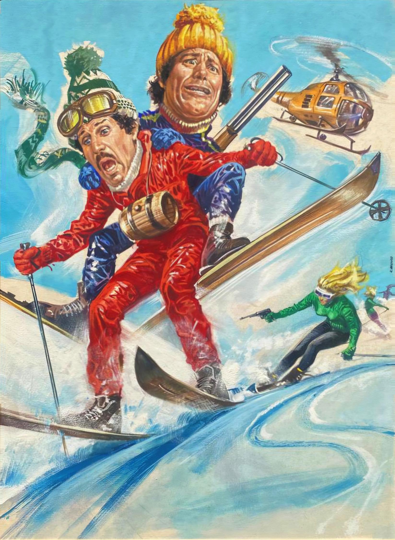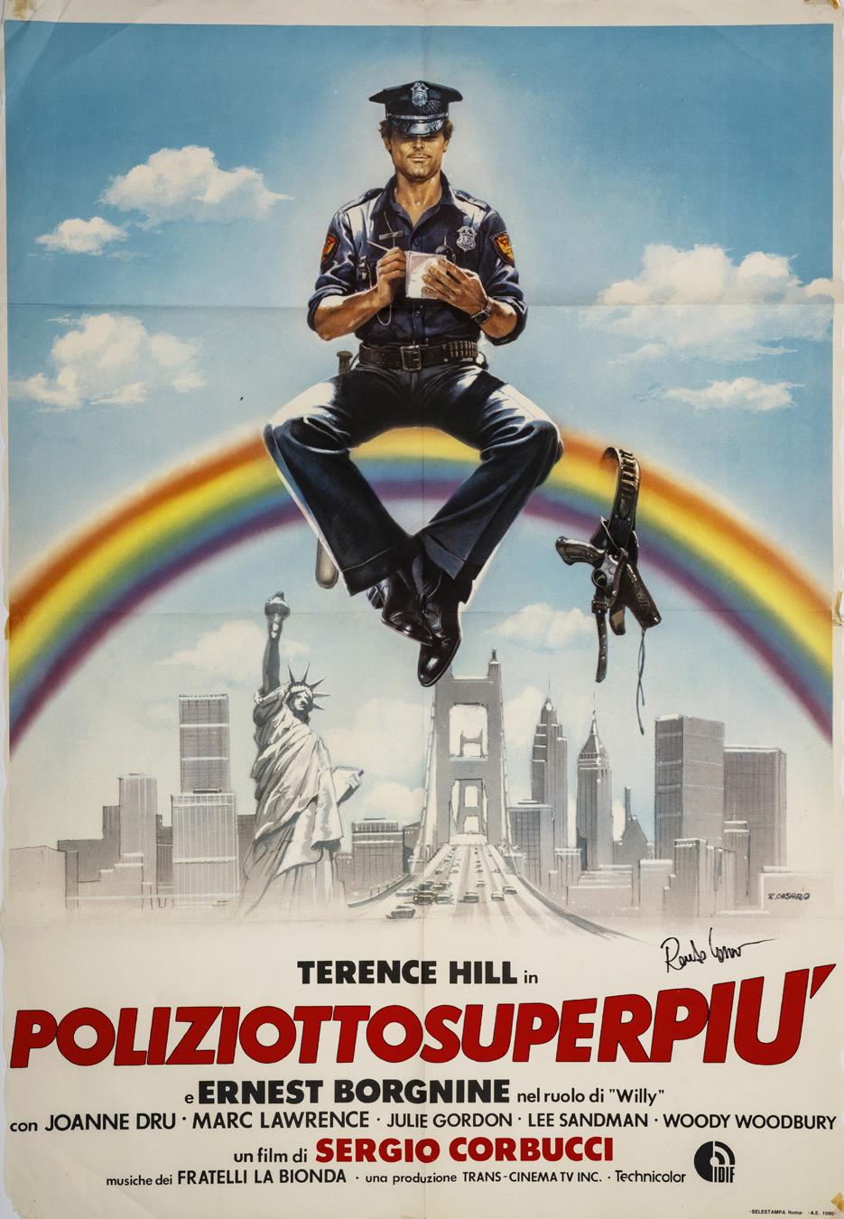 Tempera on cardboard. Original artwork made by Casaro for the movie poster of “I due pezzi da 90”, directed by Osvaldo Civirani with Franco Franchi and Ciccio Ingrassia in 1971. Signed.