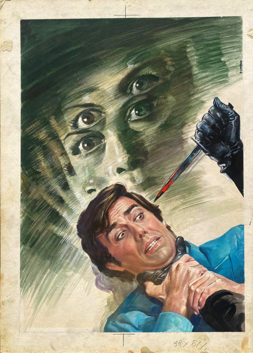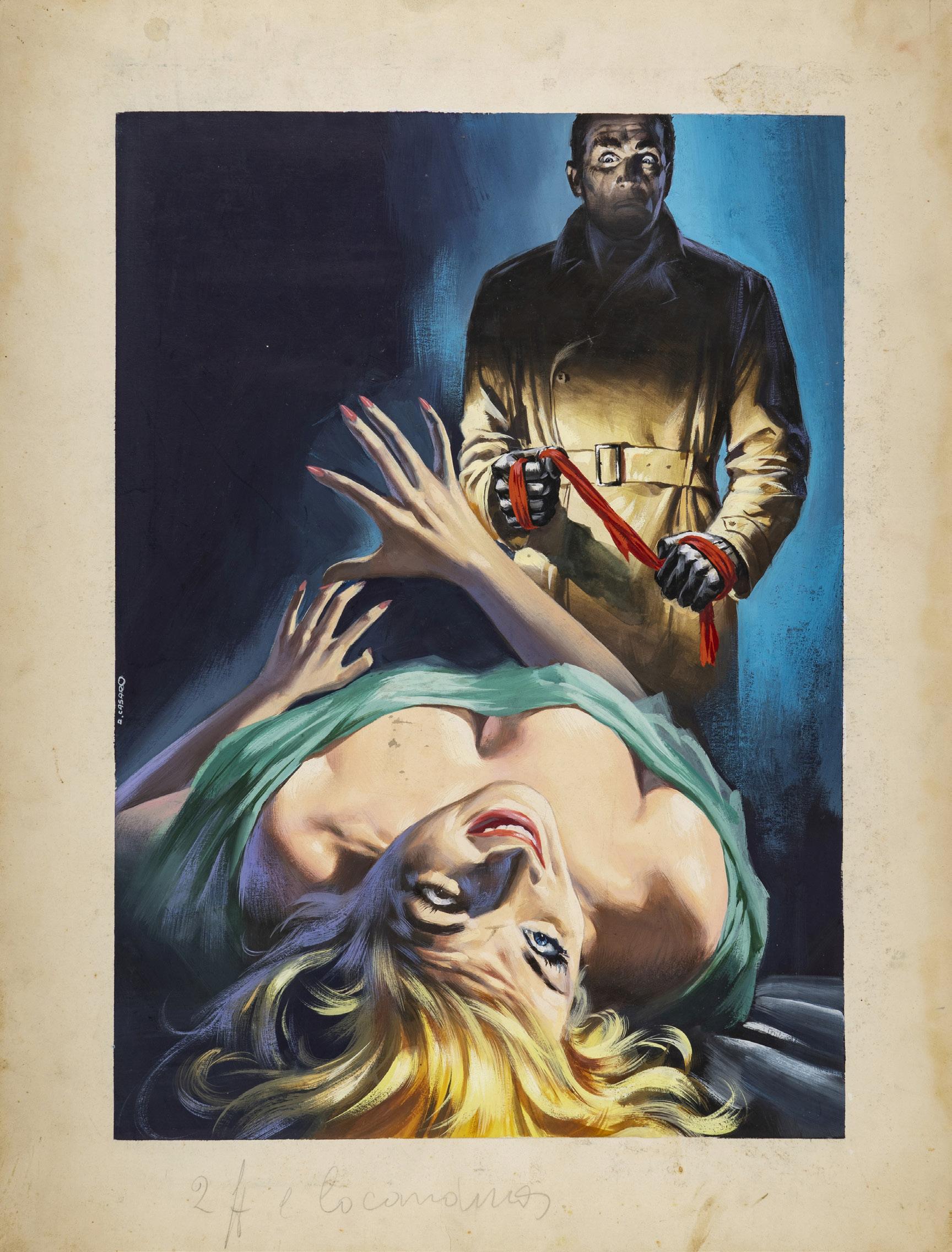 Tempera on cardboard. Original artwork made by Casaro for the movie poster of “The Two Faces of Fear”, directed by Tulio Demicheli with George Hilton and Anita Edberg in 1972. Signed.