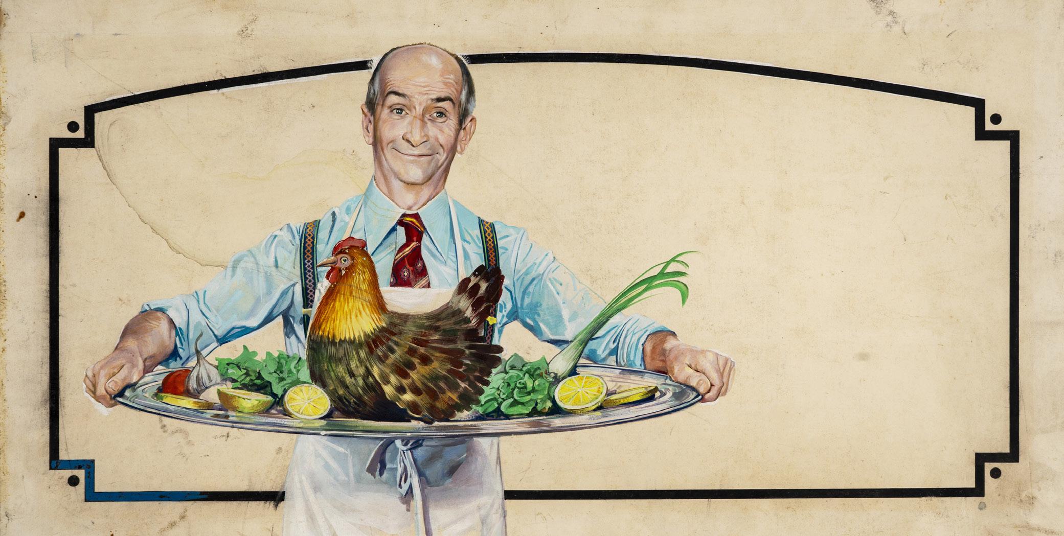 tempera and airbrush on cardboard. Original artwork made by Casaro for the movie poster of “Oscar” directed by John Landis with Sylvester Stallone, Kirk Douglas and Ornella Muti in 1991. Signed.