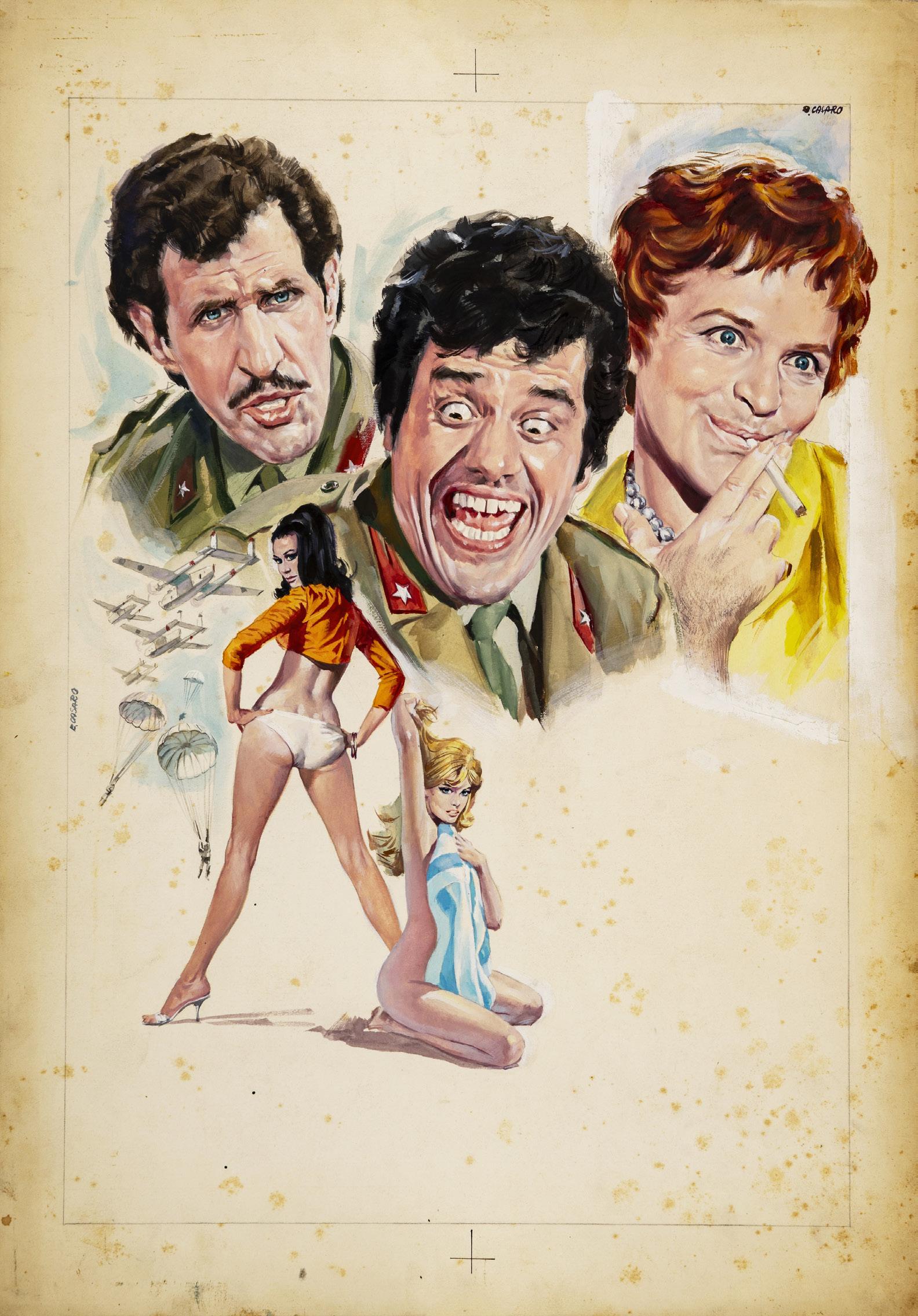 Tempera on cardboard. Original artwork made by Casaro for the movie poster of “Obiettivo Ragazze”, directed by Mario Mattoli and starring Franco Franchi and Ciccio Ingrassia in 1963. The film was re-released in 1971 with the title “Obiettivo ragazze raggiunto Stop - Missione compiuta”. Slight dent in the upper right corner. Signed.
