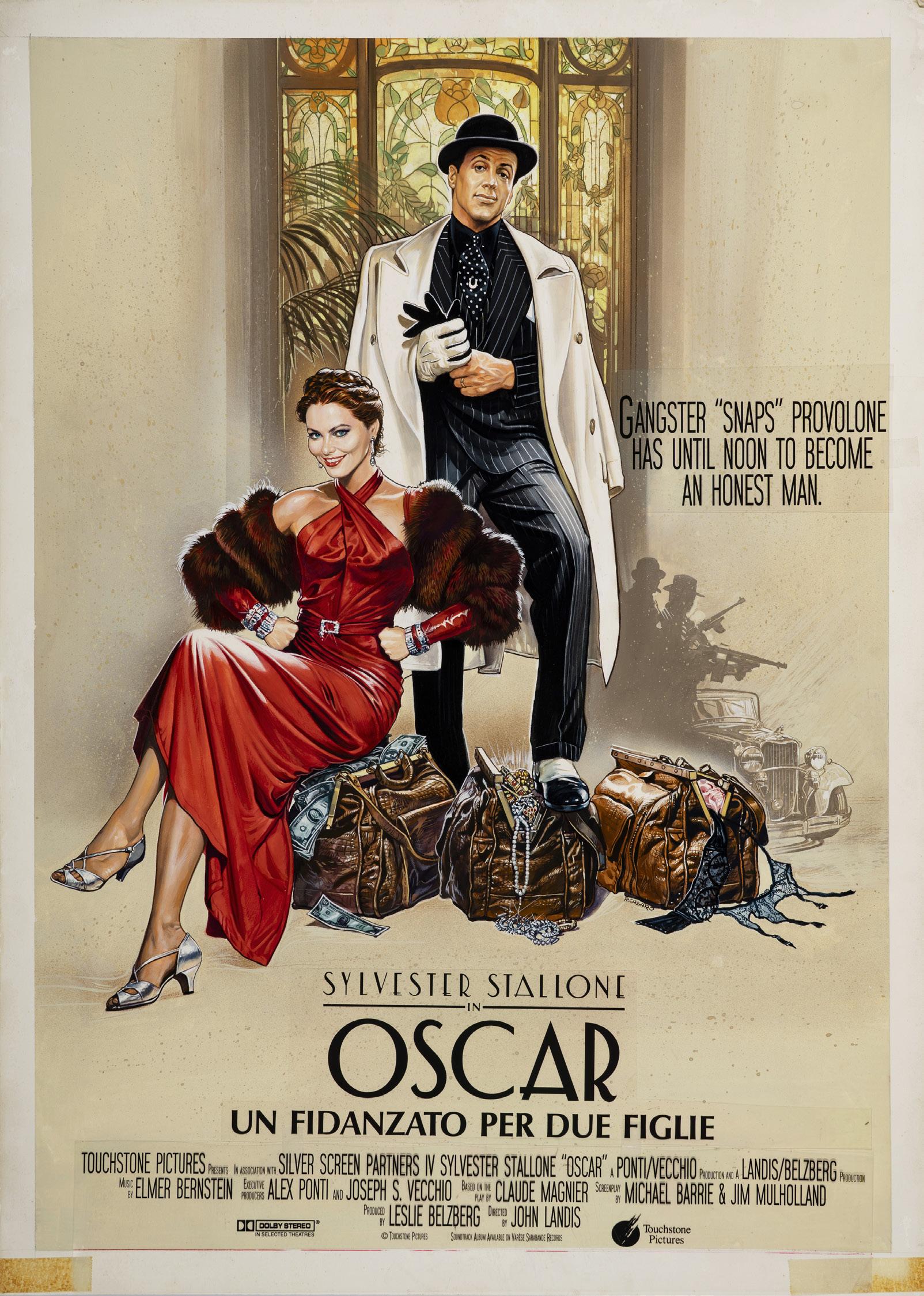 Bozzetto originale realizzato da Casaro per la locandina ufficiale del film “Oscar - Un fidanzato per due figlie” diretto da John Landis con Sylvester Stallone, Kirk Douglas e Ornella Muti nel 1991. Firmato.
