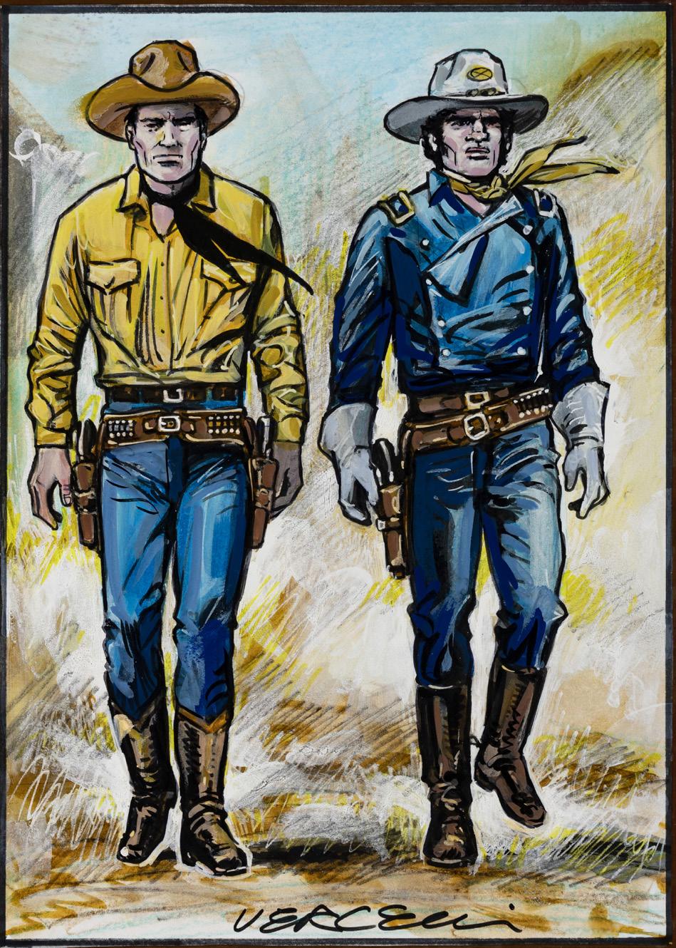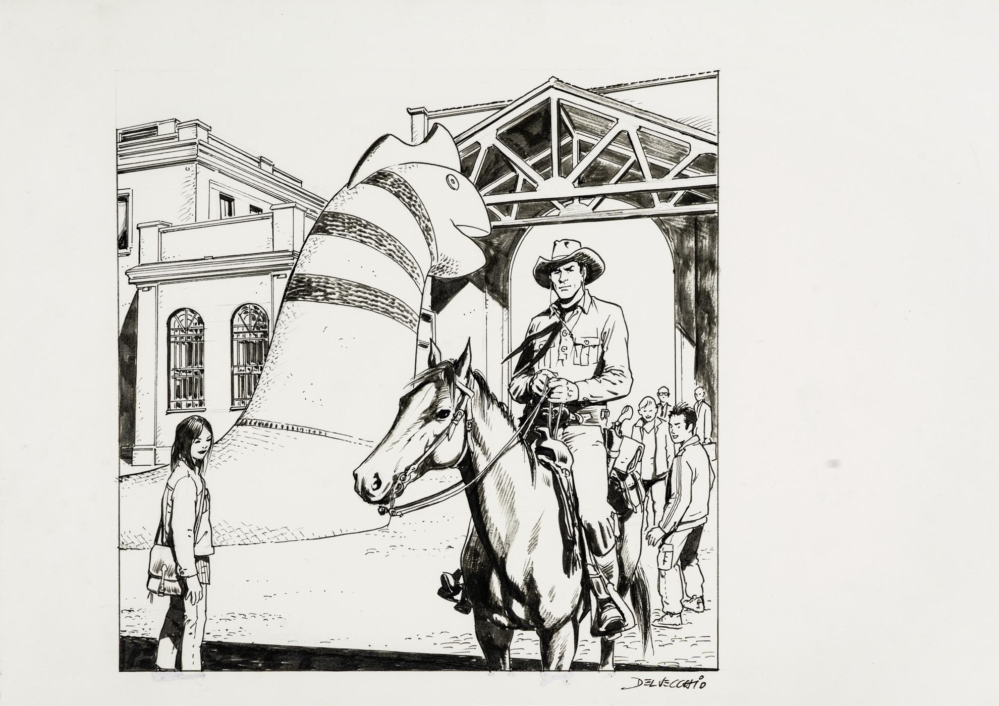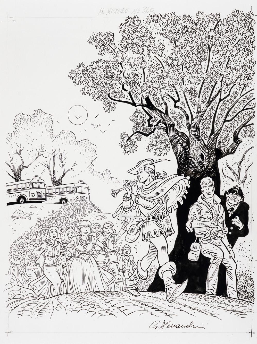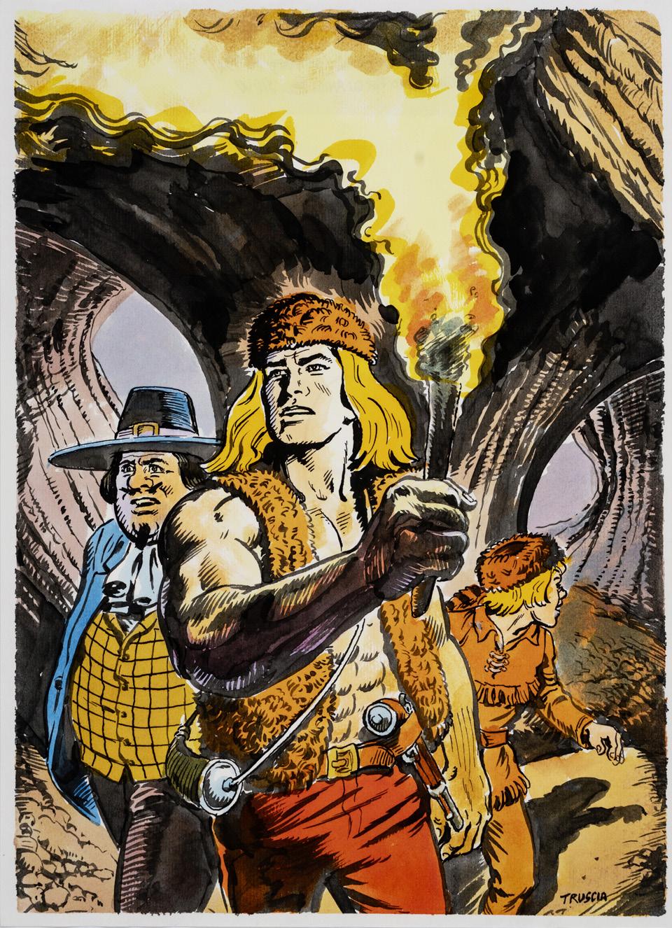 Pencil, ink and watercolor on cardboard. Original illustration made by Carnevali for the Ronfi series in the mid-1980s. Slight dent in the upper right corner. Signed.