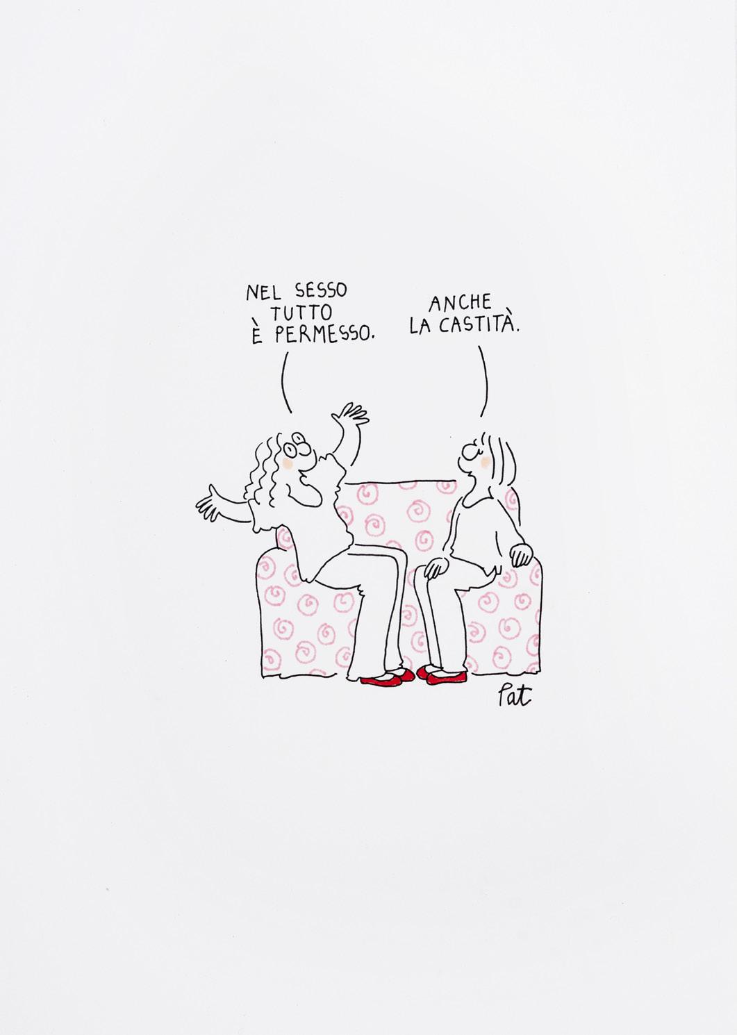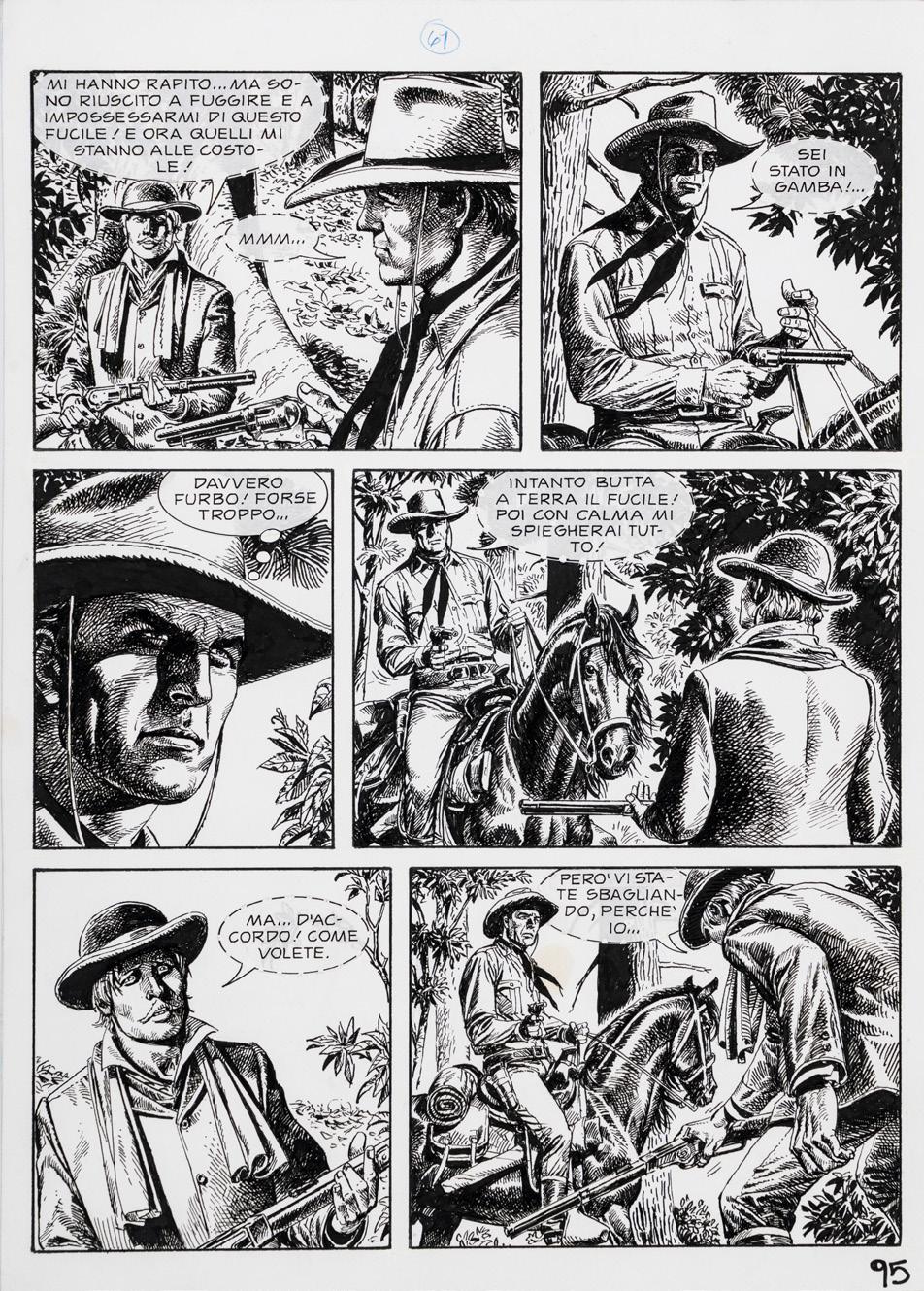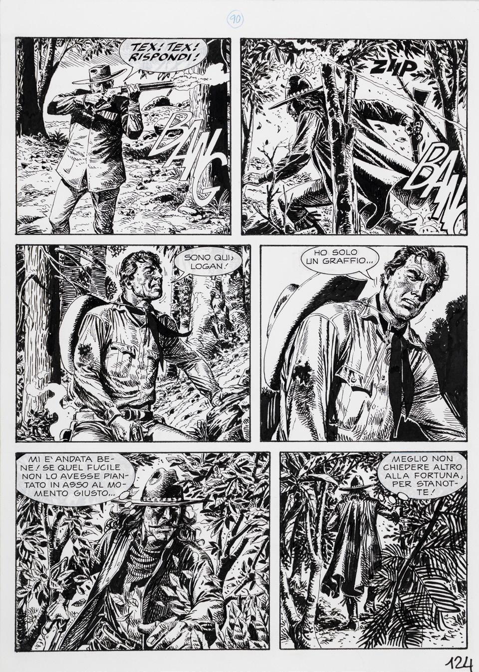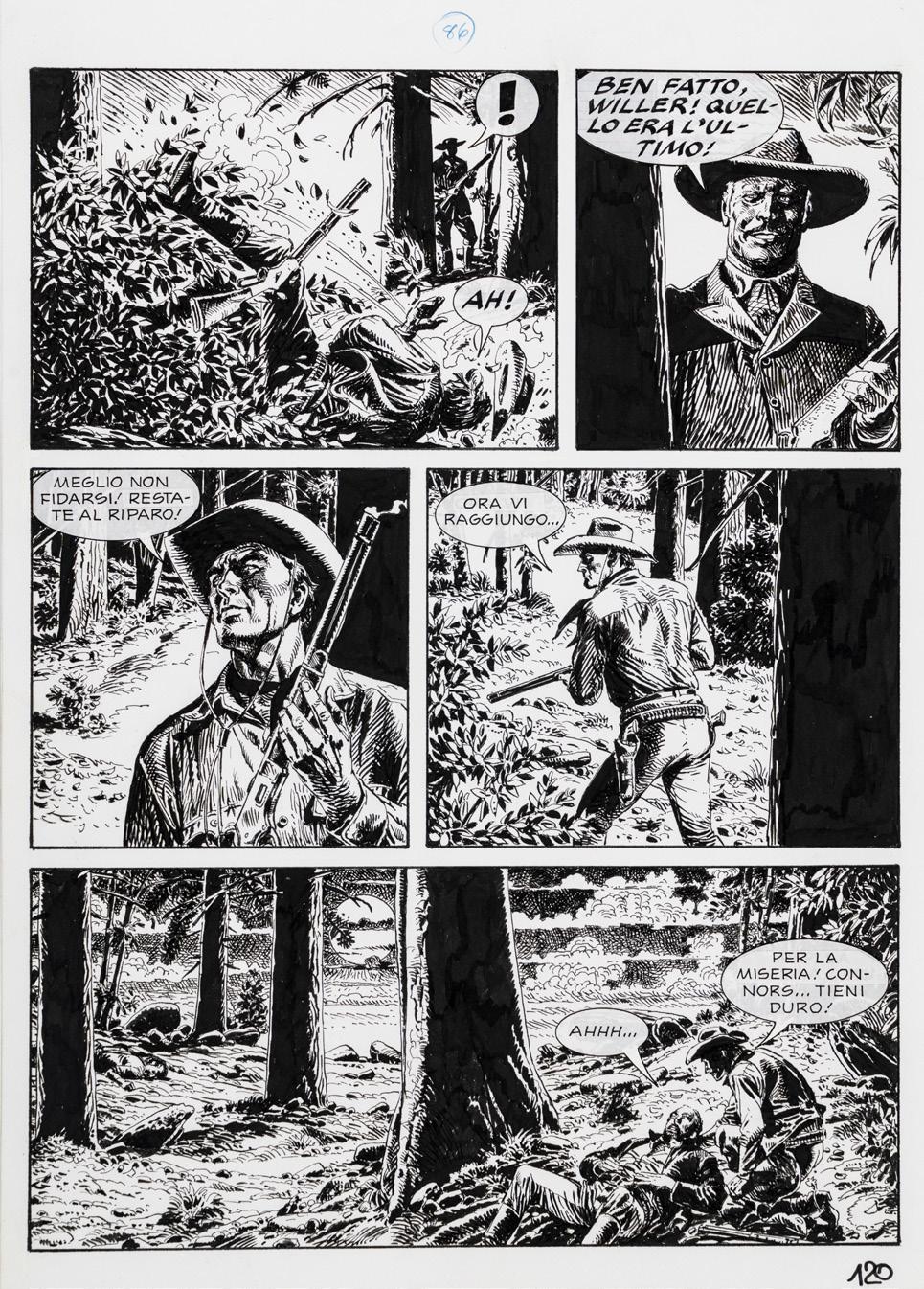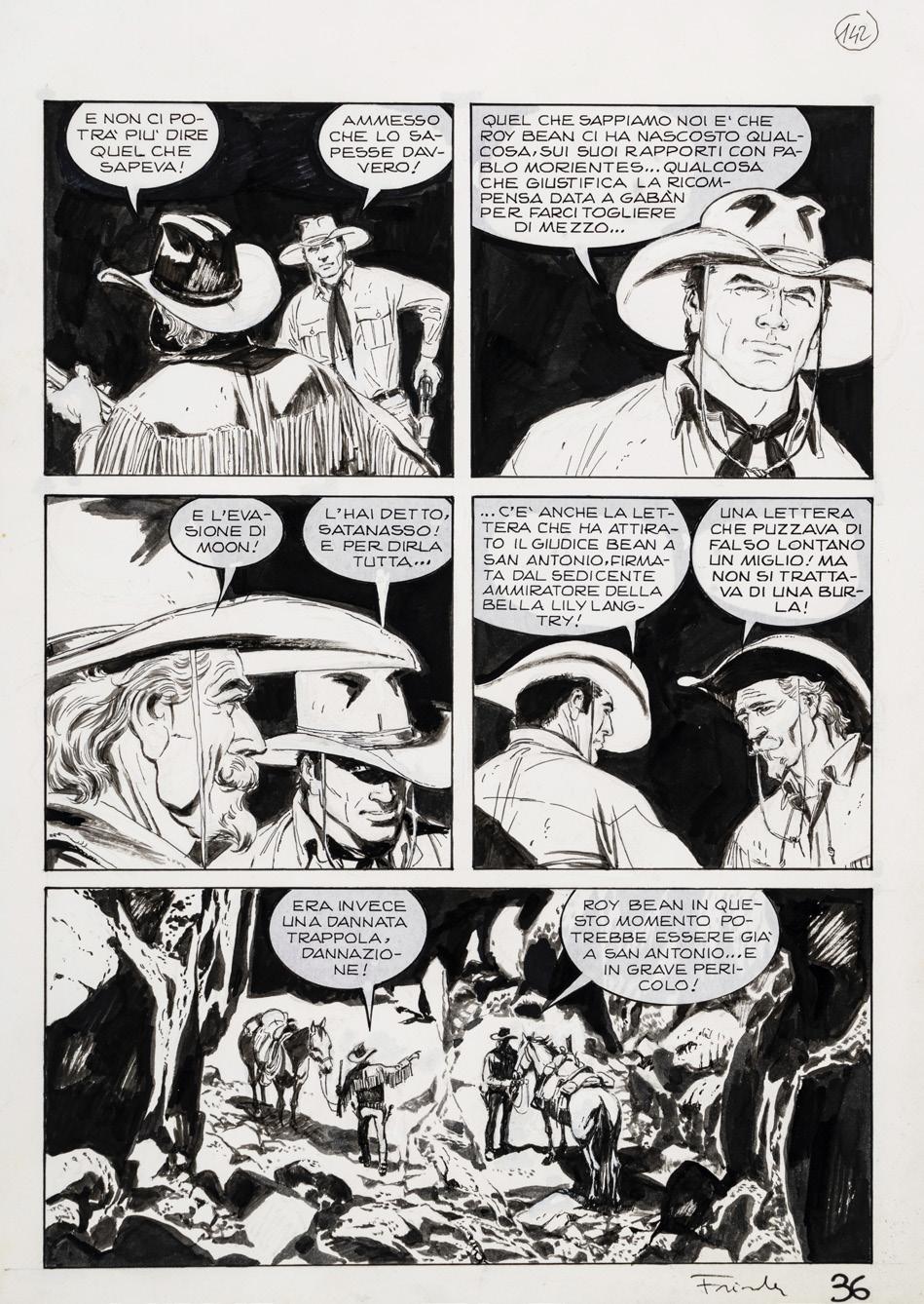 Pencil, ink and watercolor on cardboard. Original illustration made by Carnevali for the Ronfi series in the mid-1980s. Slight dent in the upper right corner. Signed.