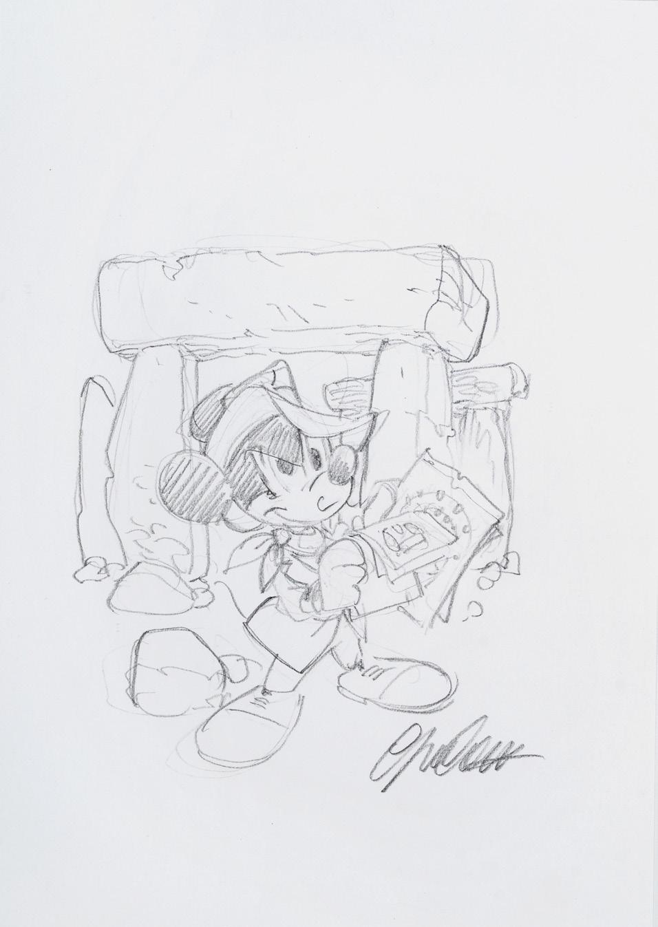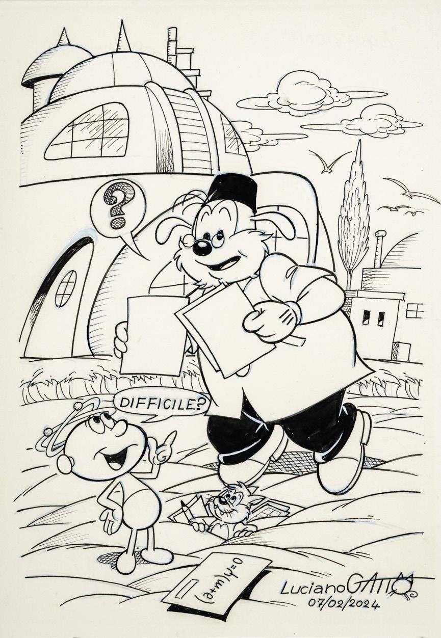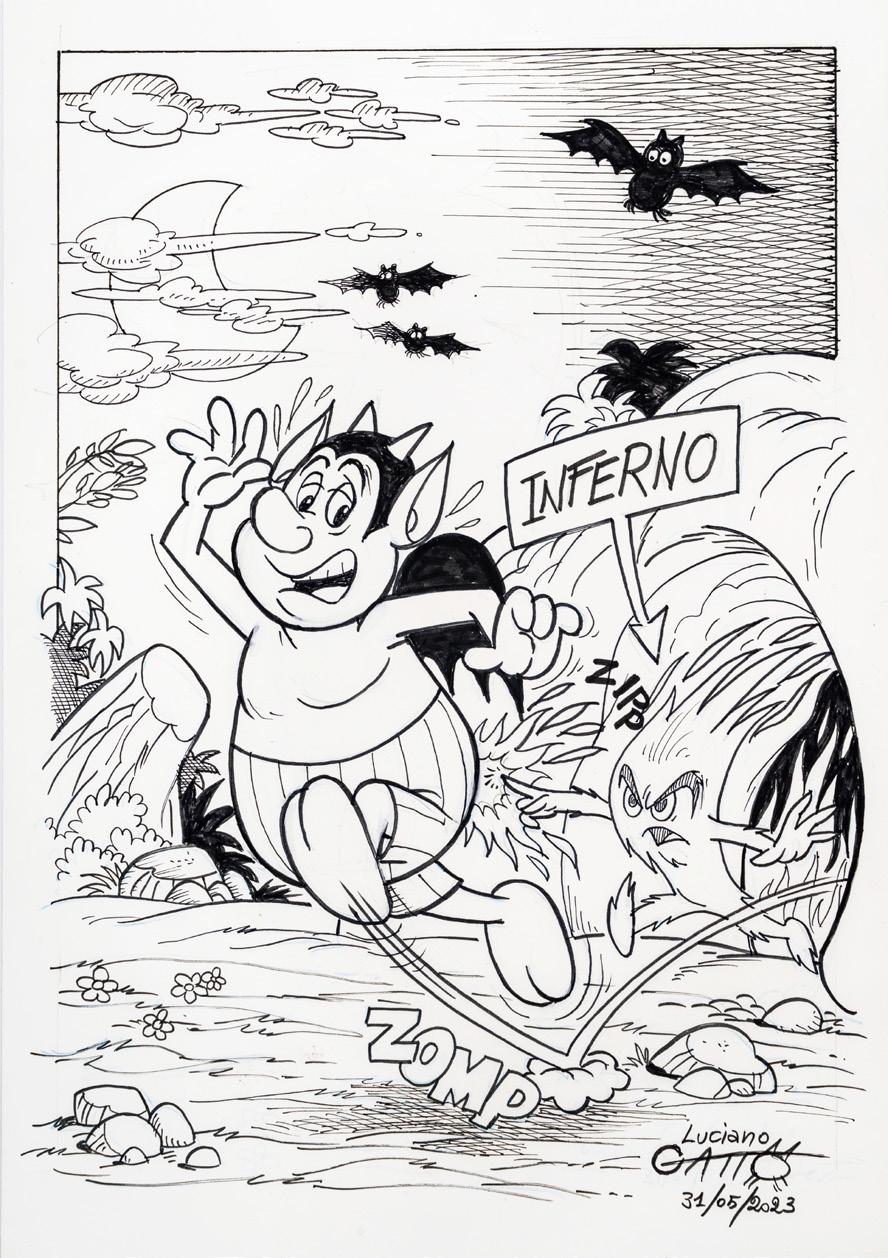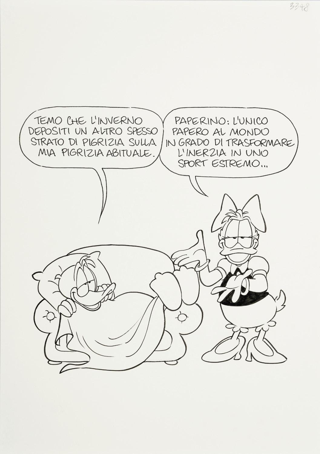 Pencil and ink on thin cardboard. Original illustration made by Ziche for the series “What’s the air like in... Paperopoli?”, published in Topolino n. 3542 on page 3 in October 2023.