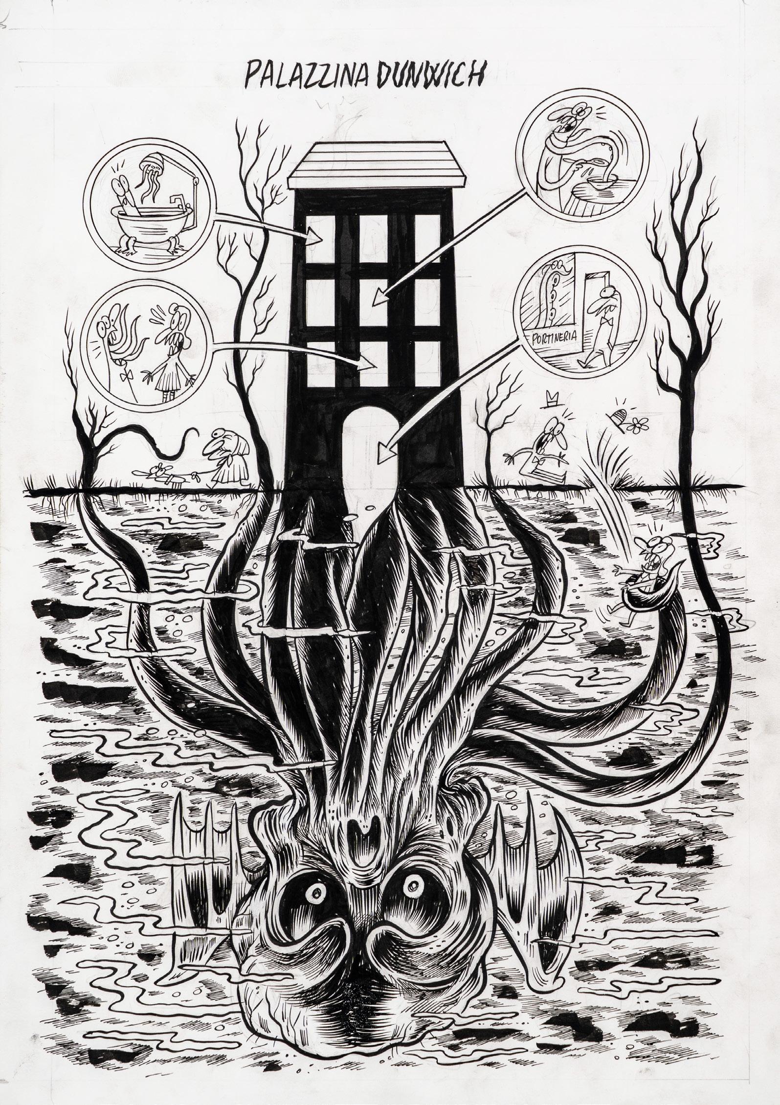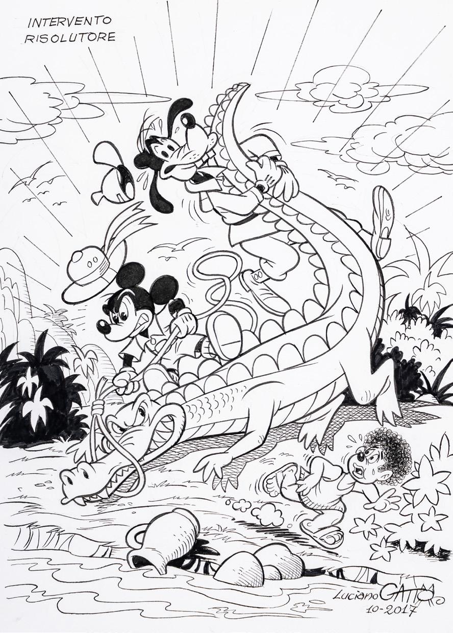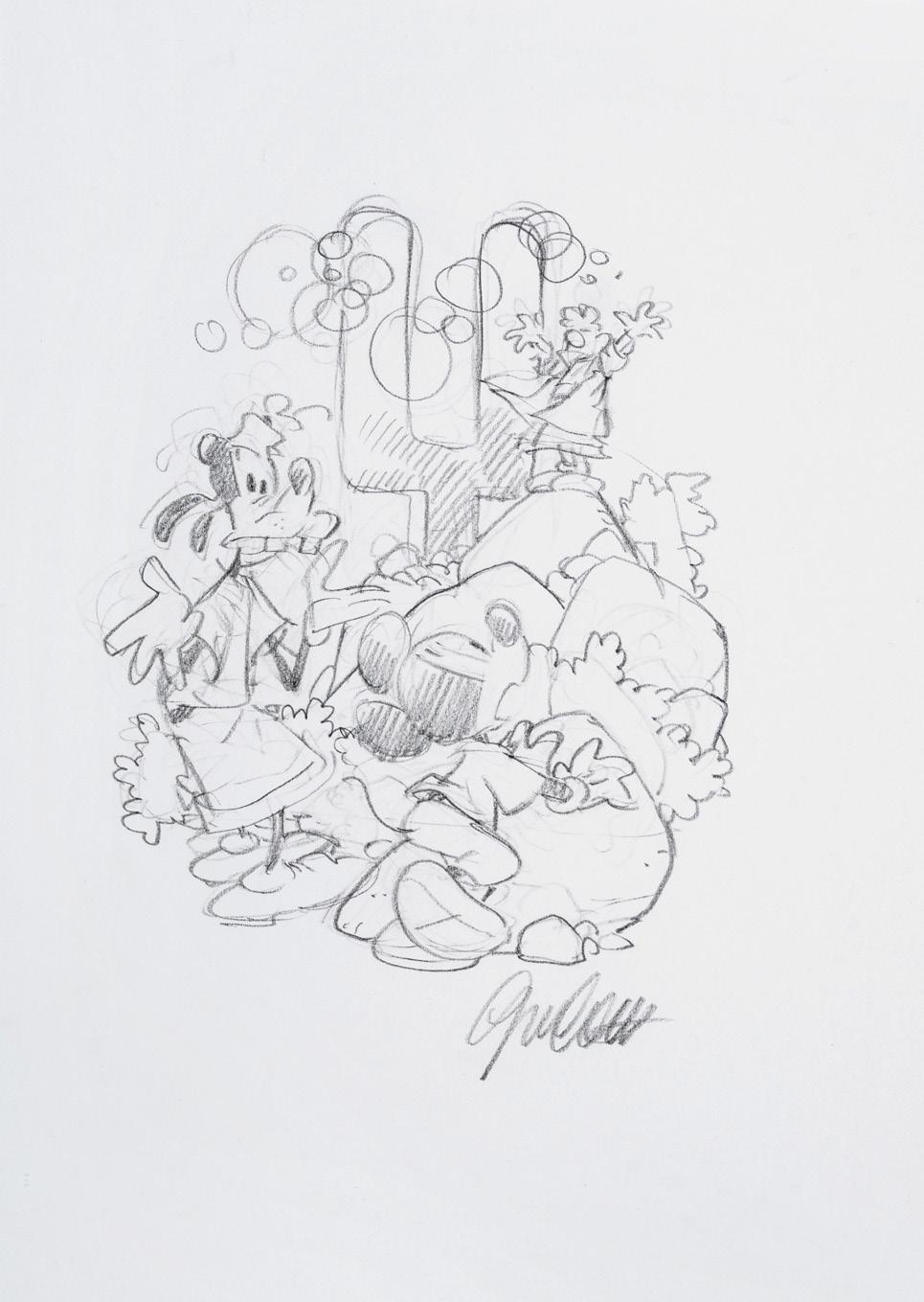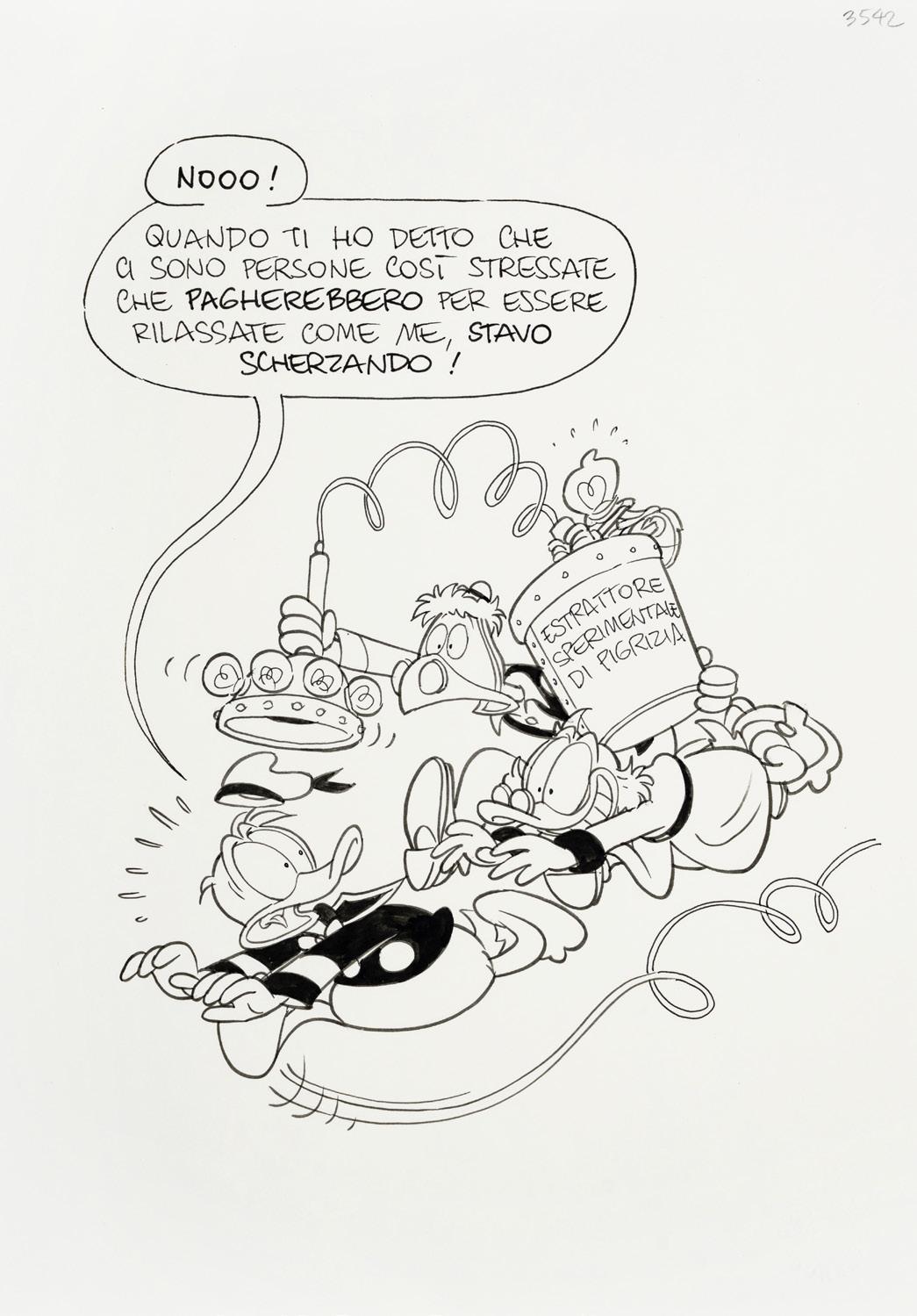 Pencil and ink on thin cardboard. Original illustration made by Ziche for the series “What’s the air like in... Paperopoli?”, published in Topolino n. 3542 on page 3 in October 2023.