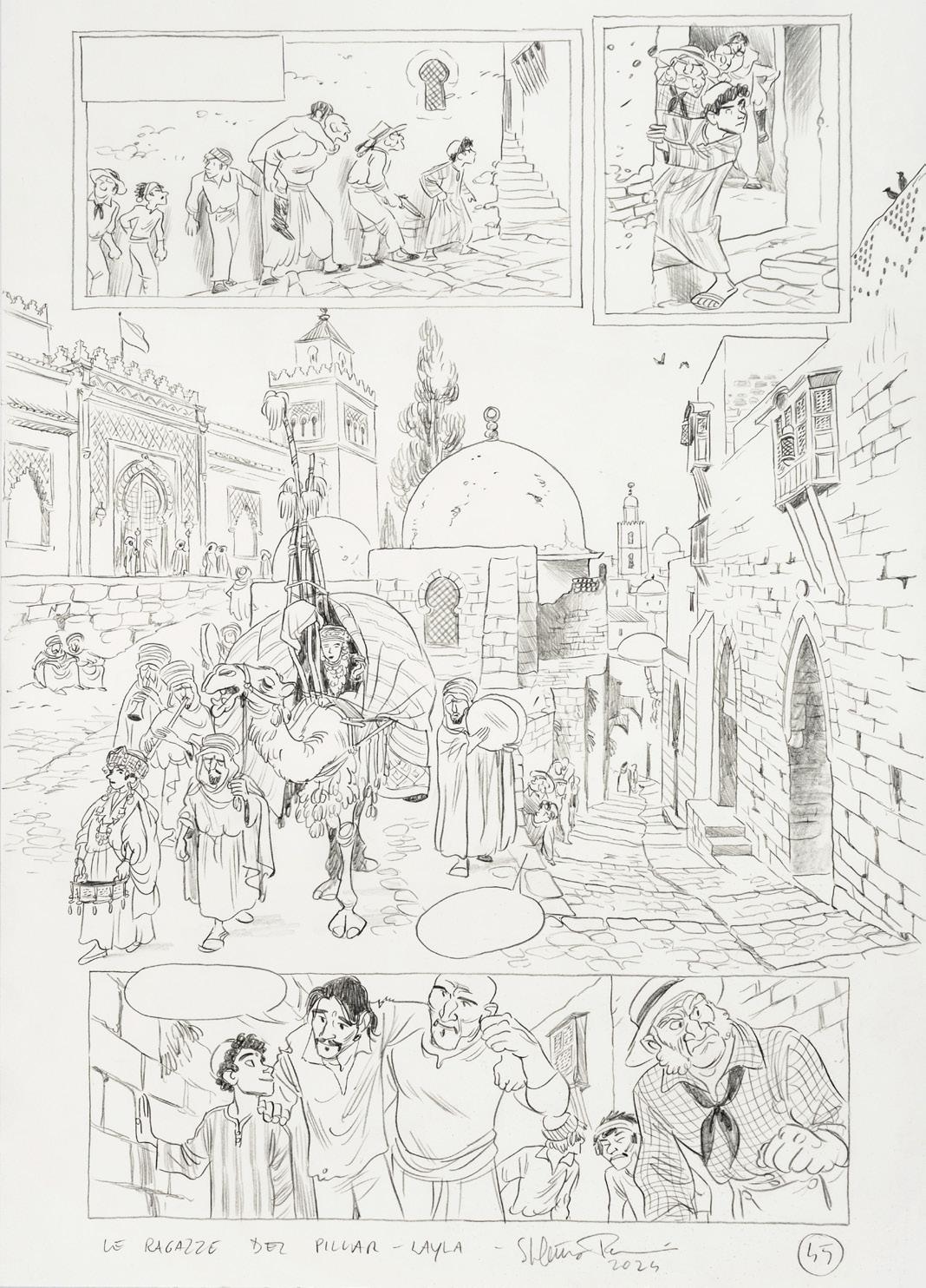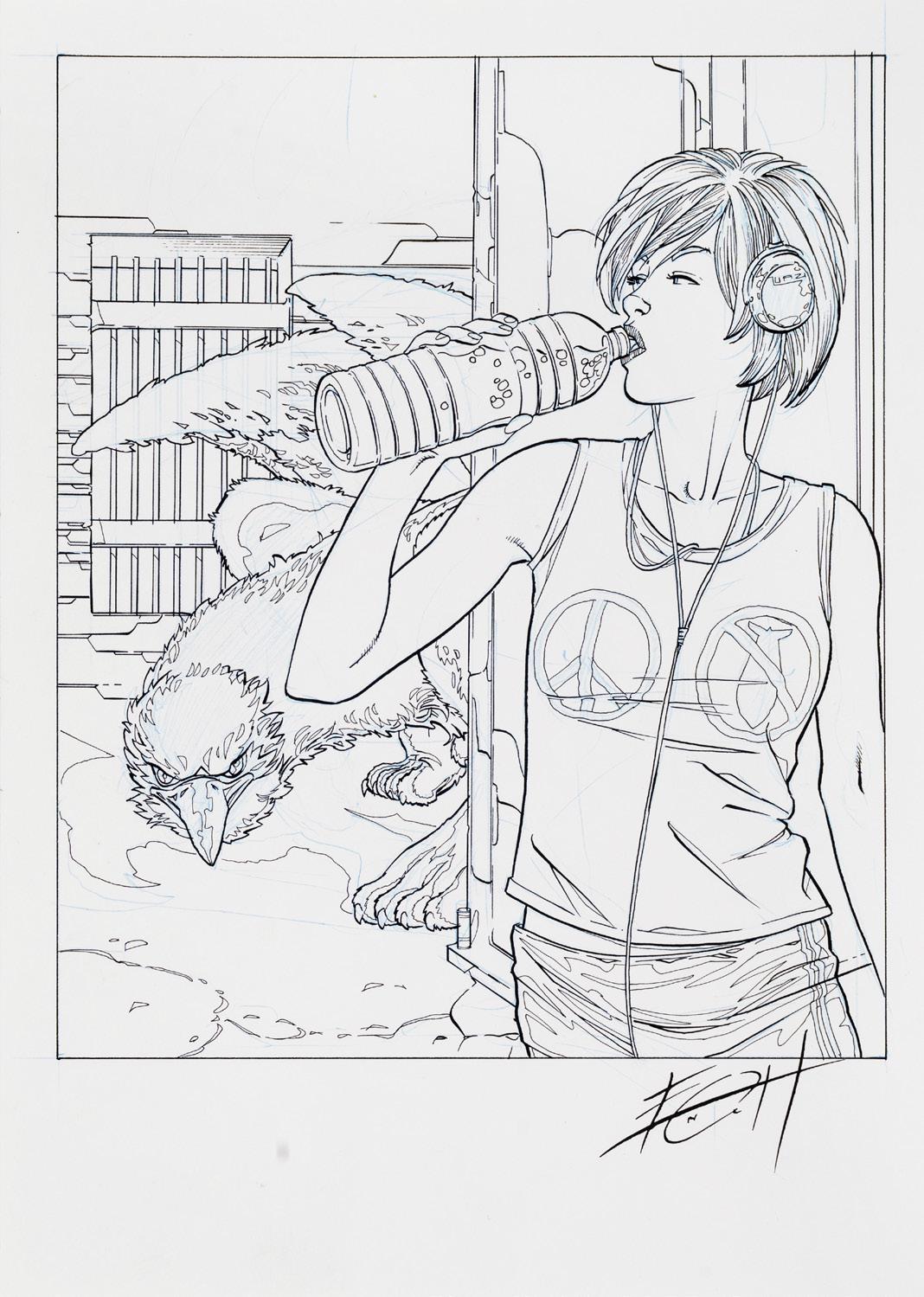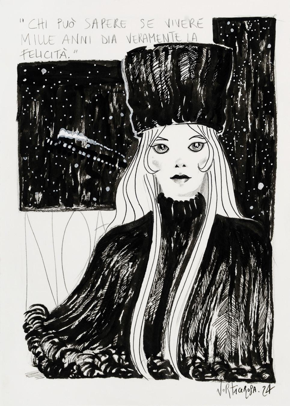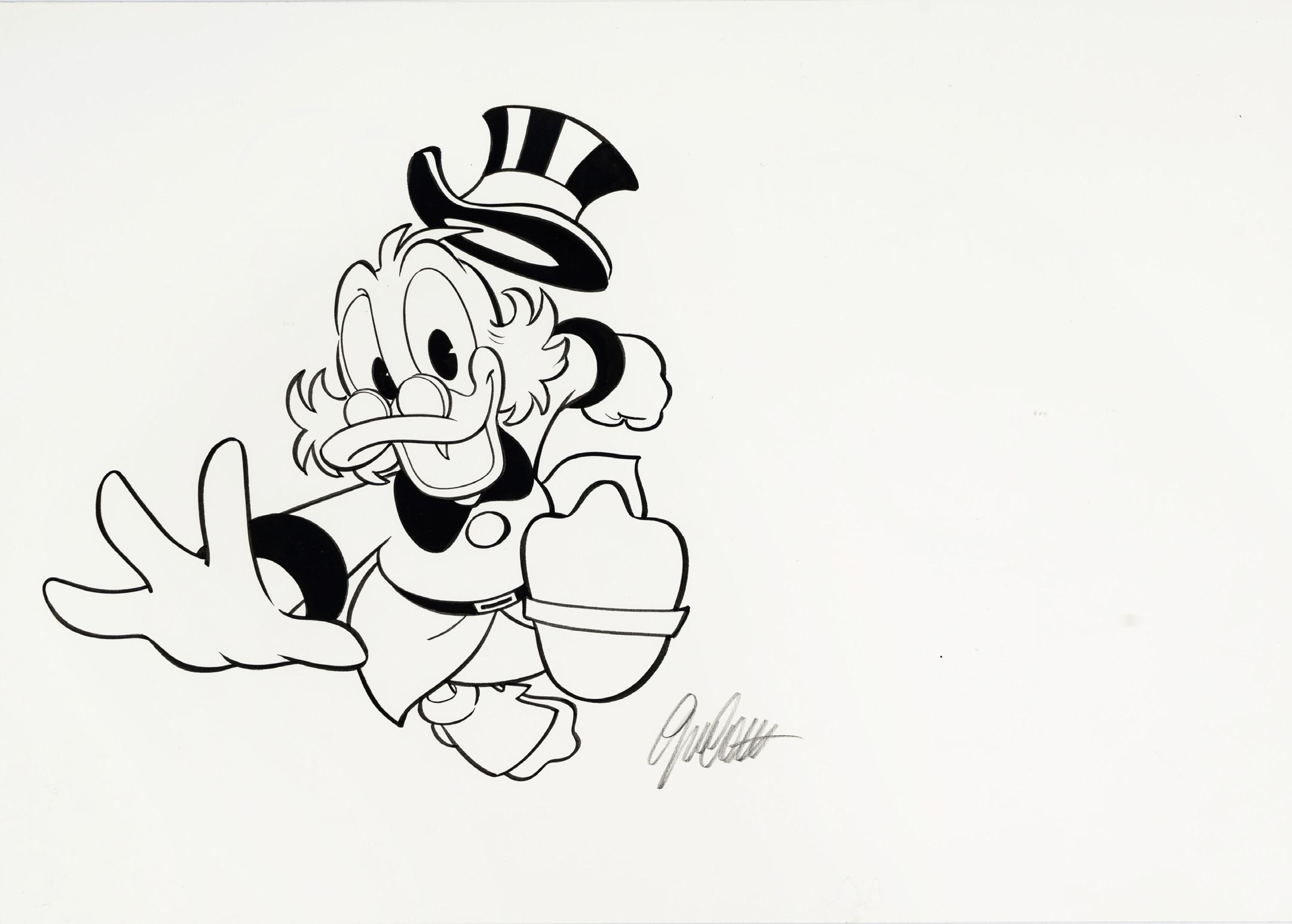 Pencil and ink on thin cardboard. Original illustration made by Ziche for the series “What’s the air like in... Paperopoli?”, published in Topolino n. 3542 on page 3 in October 2023.