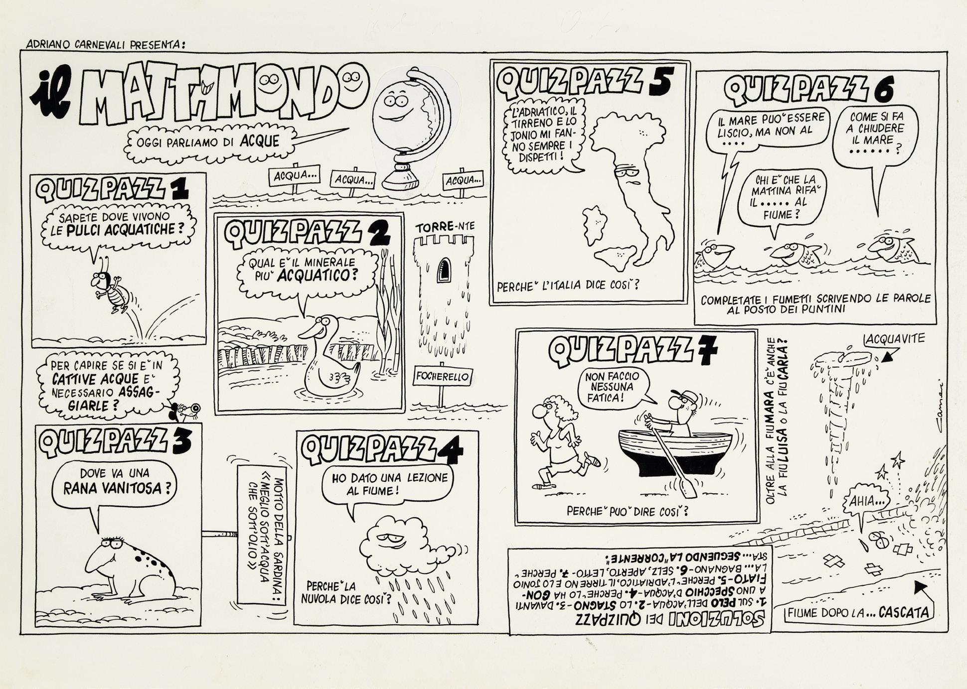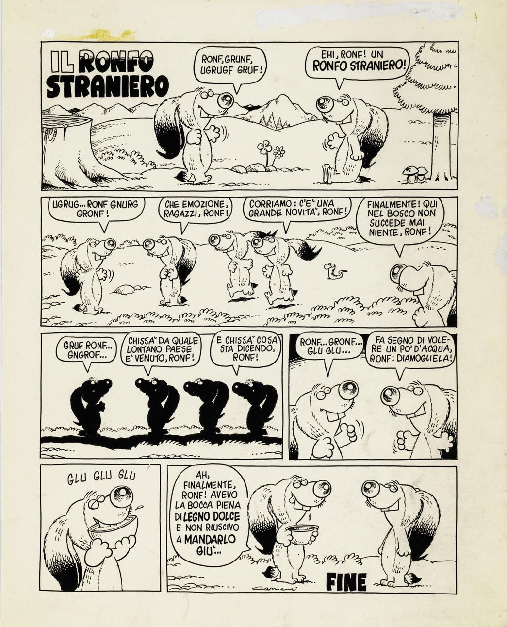 Tavola originale realizzata da Carnevali per la serie dei Ronfi nella metà degli anni ‘80. Lieve piega all’angolo superiore sinistro.