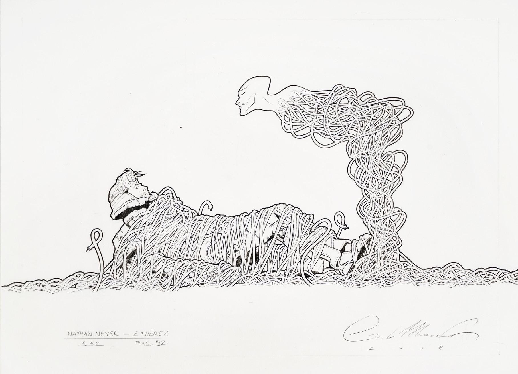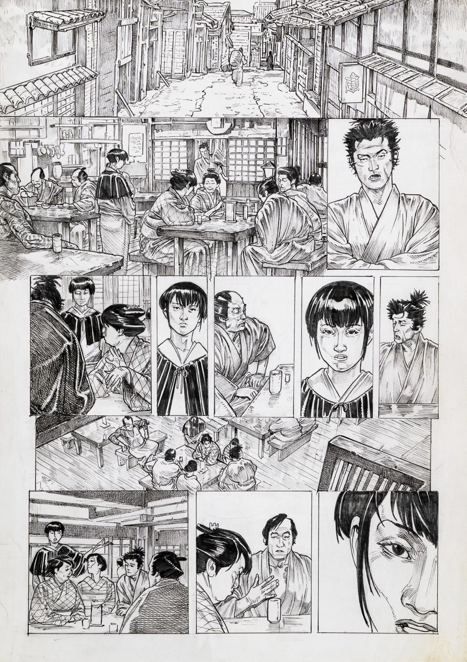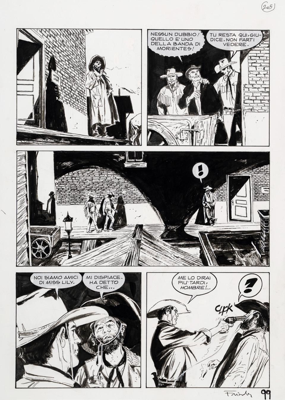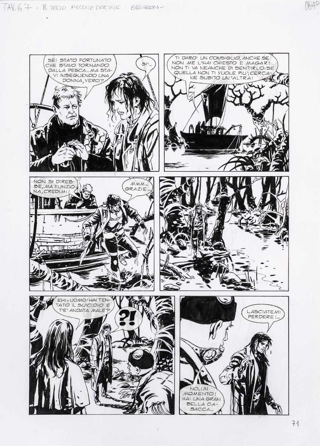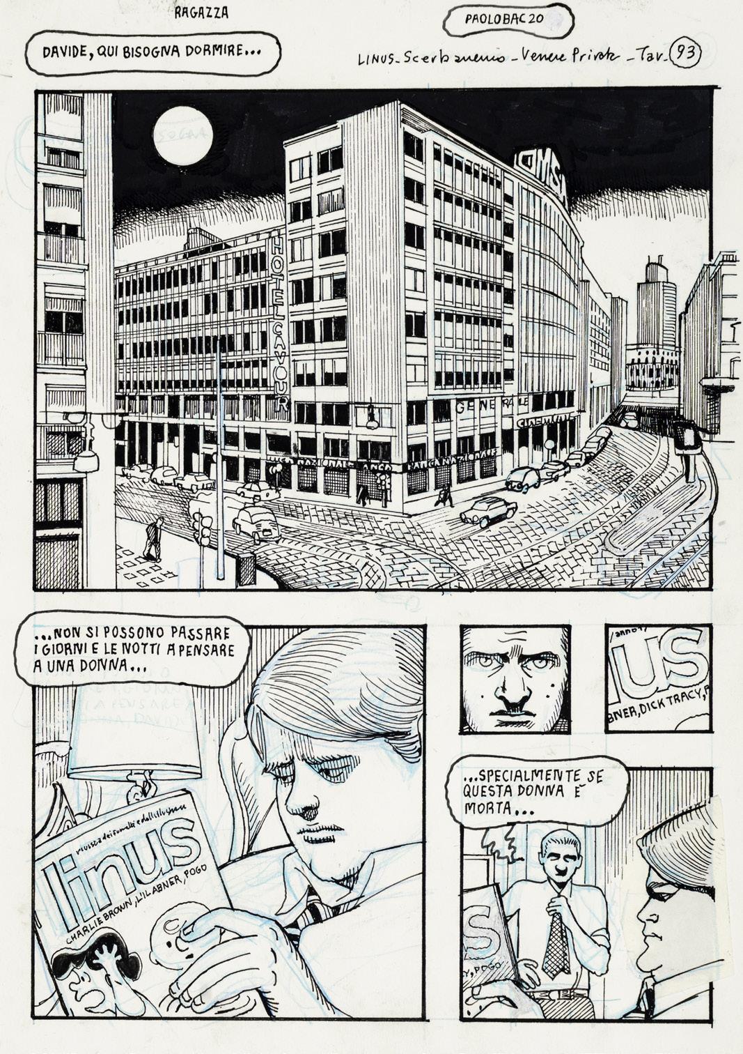 Tavola originale realizzata da Bacilieri per l’adattamento a fumetti del romanzo “Venere privata” di Giorgio Scerbanenco, edito per la prima volta sulle pagine della rivista Linus e successivamente pubblicato in volume da Oblomov Edizioni nel 2022. Firmata.