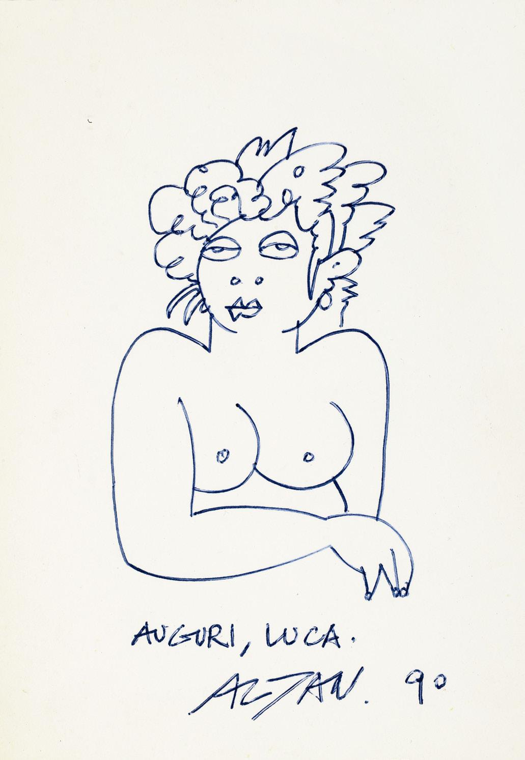 Donna, 1990 biro su cartoncino, 10,5 x 15 cm Firmato, datato e dedicato.