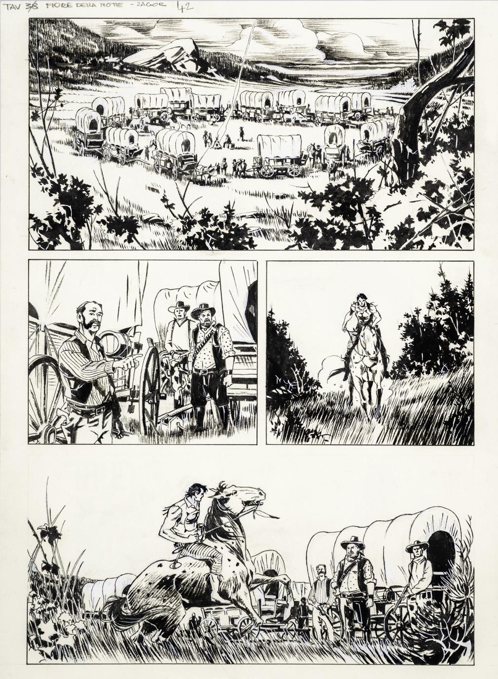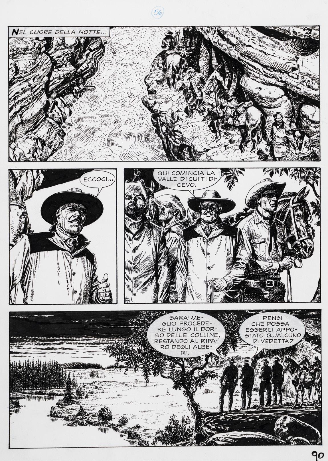 Tavola originale realizzata da Carnevali per la serie dei Ronfi nella metà degli anni ‘80. Pieghe.