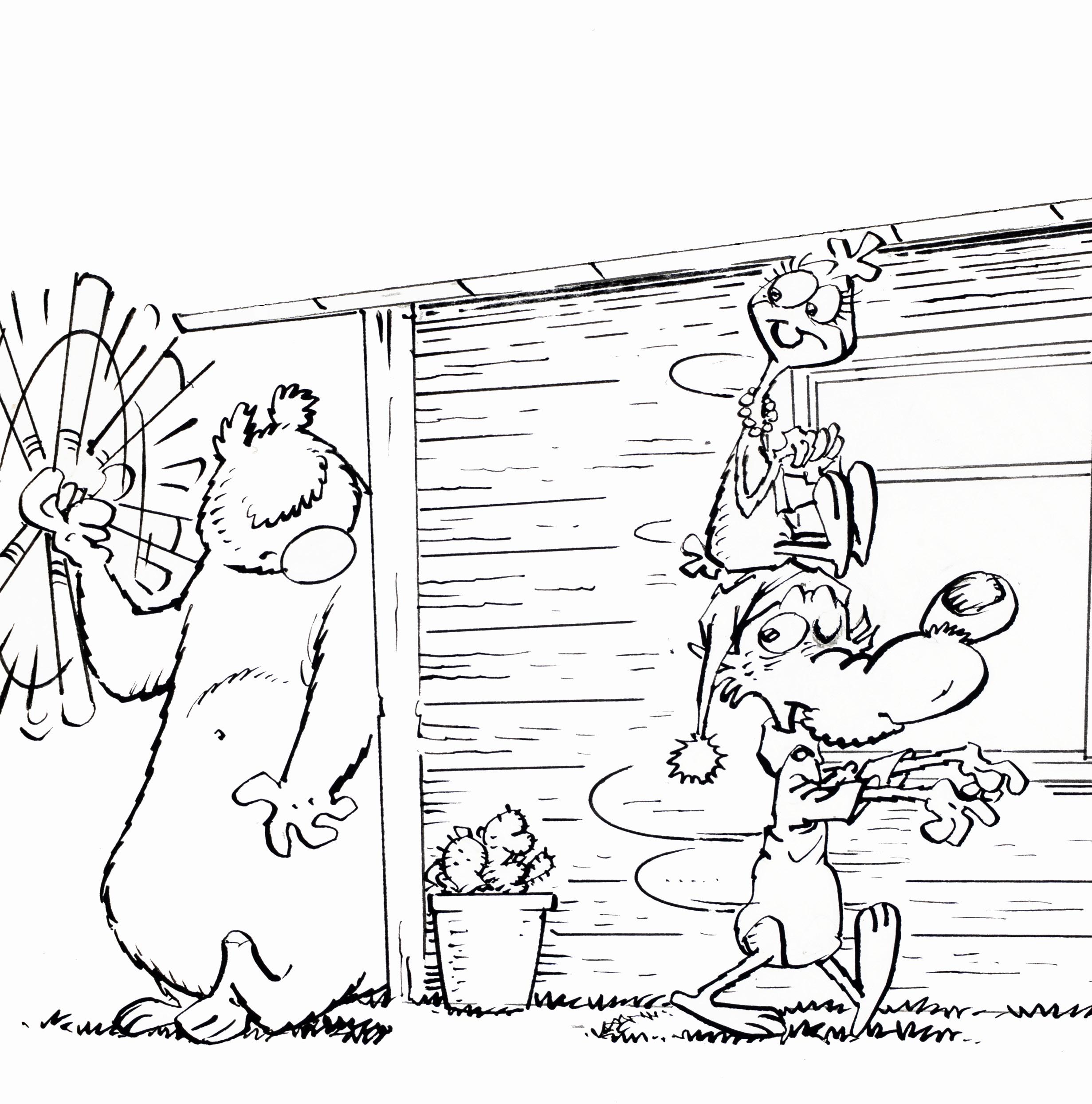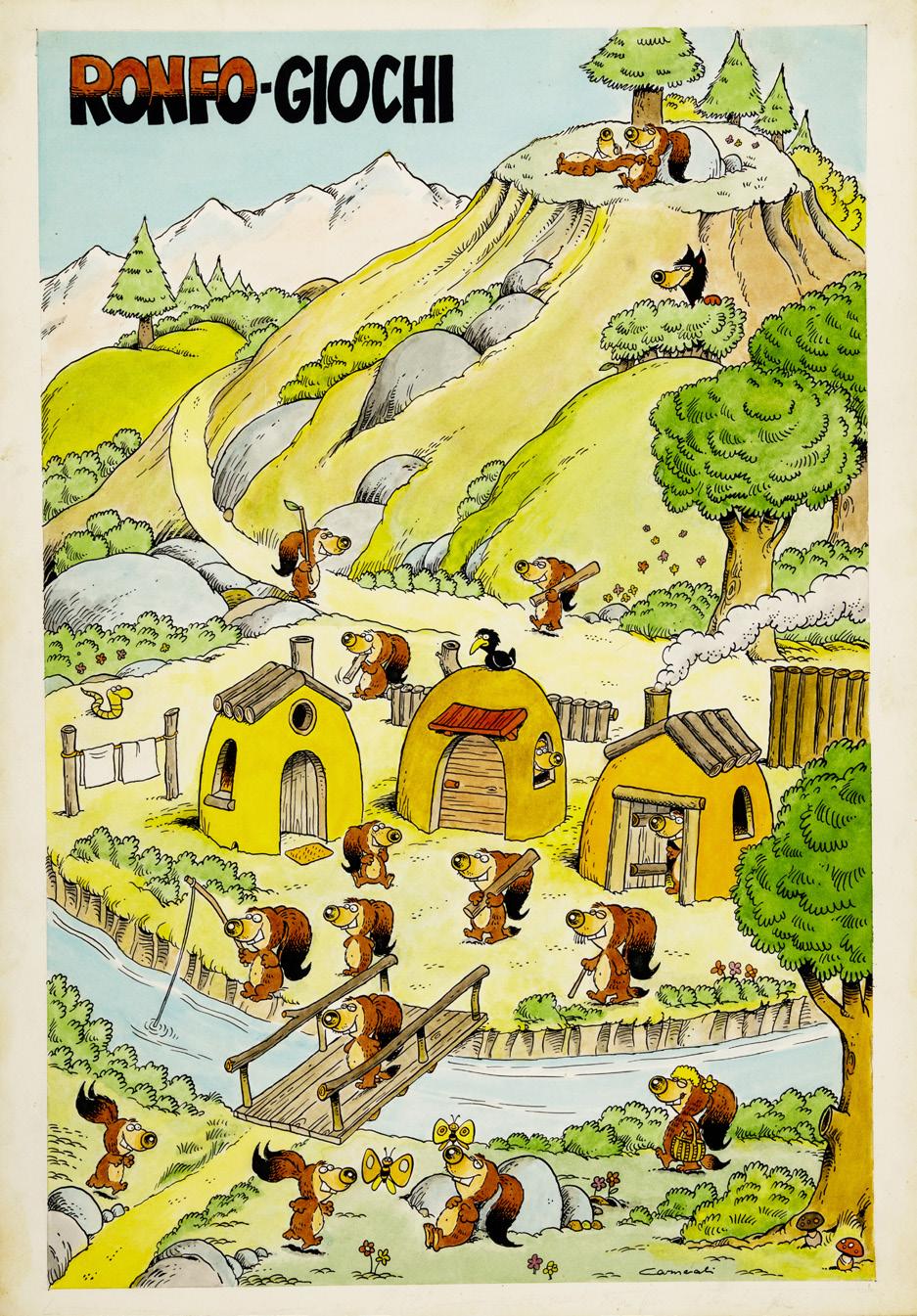 Illustrazione originale realizzata da Carnevali per la serie dei Ronfi nella metà degli anni ‘80. Lieve ammaccatura all’angolo superiore destro. Firmata.