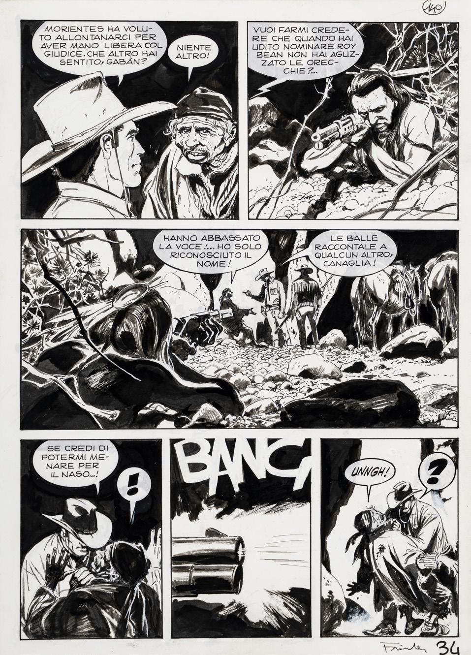 Pencil and ink on thin cardboard. Original comic art made by Carnevali for the Ronfi series in the mid1980s. Slight crease in the upper left corner.