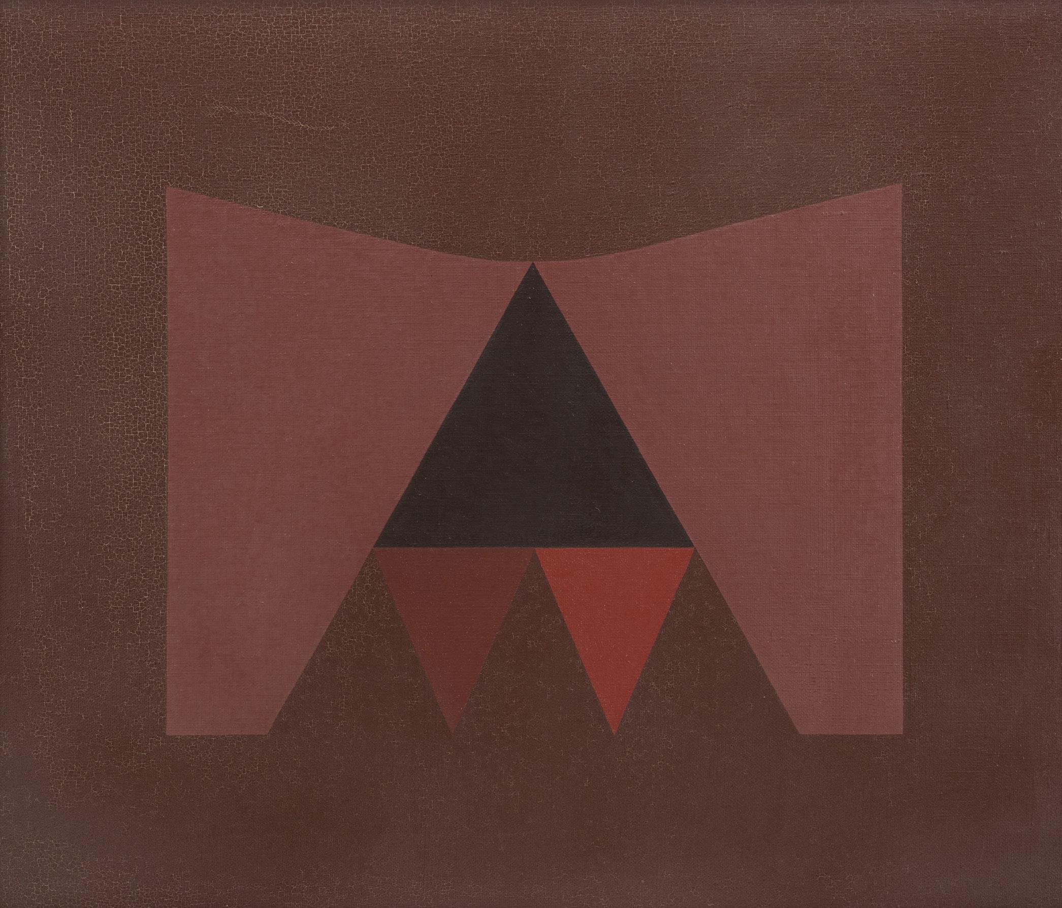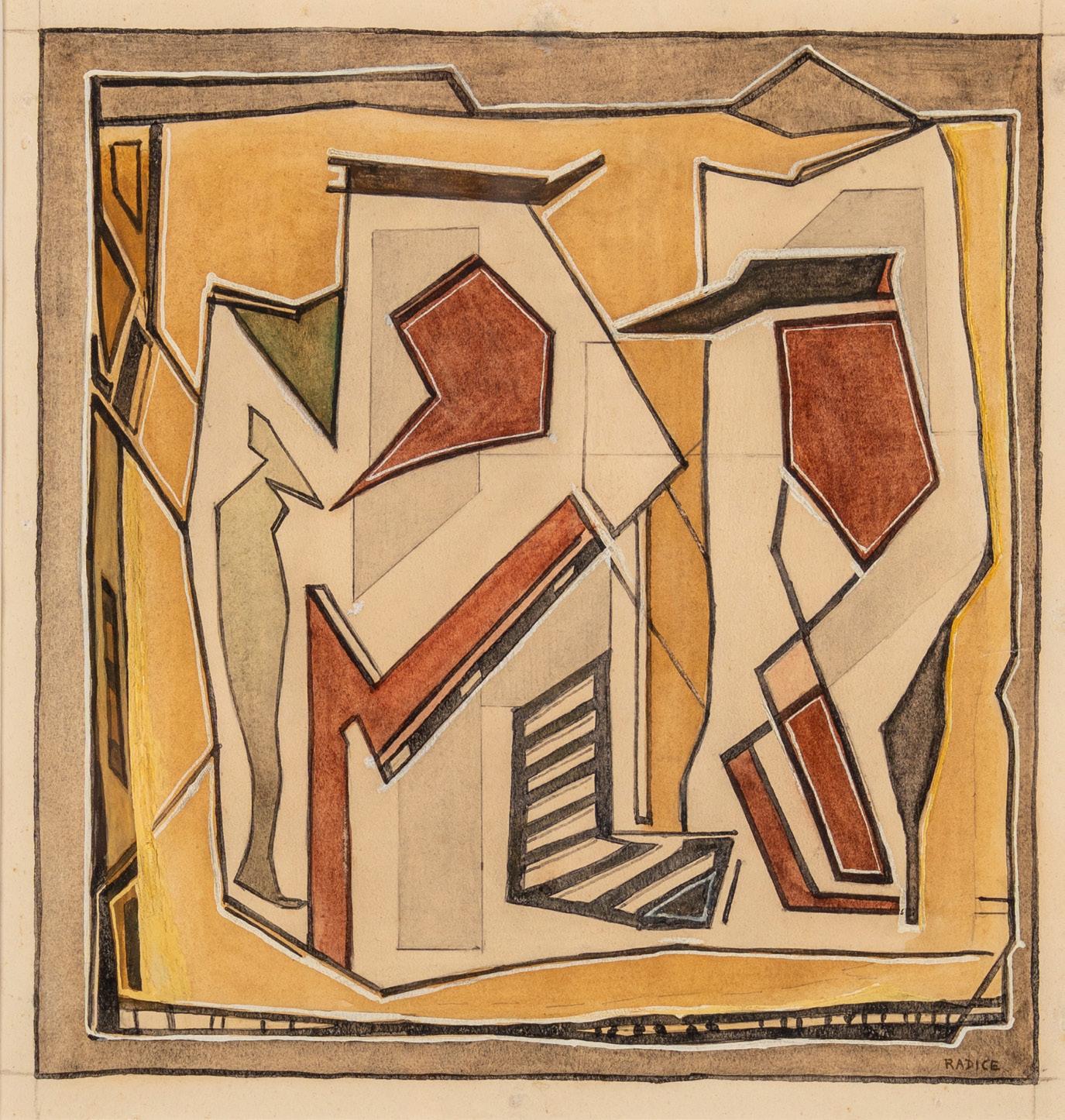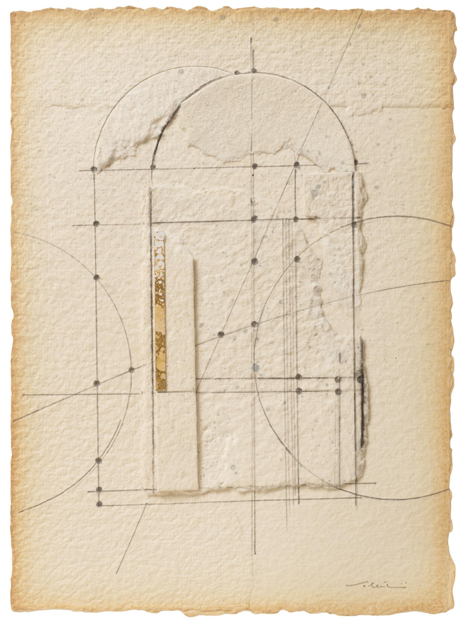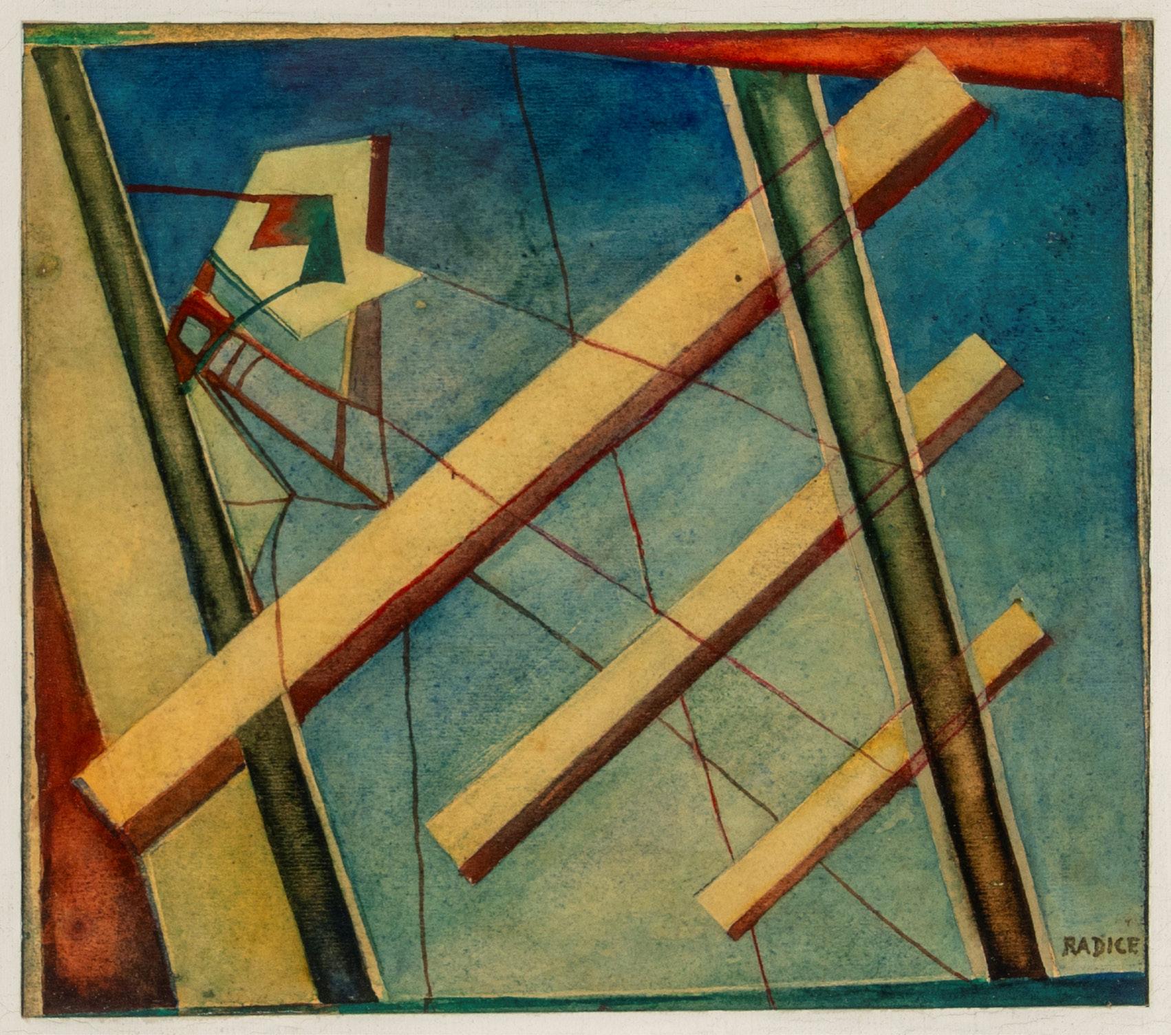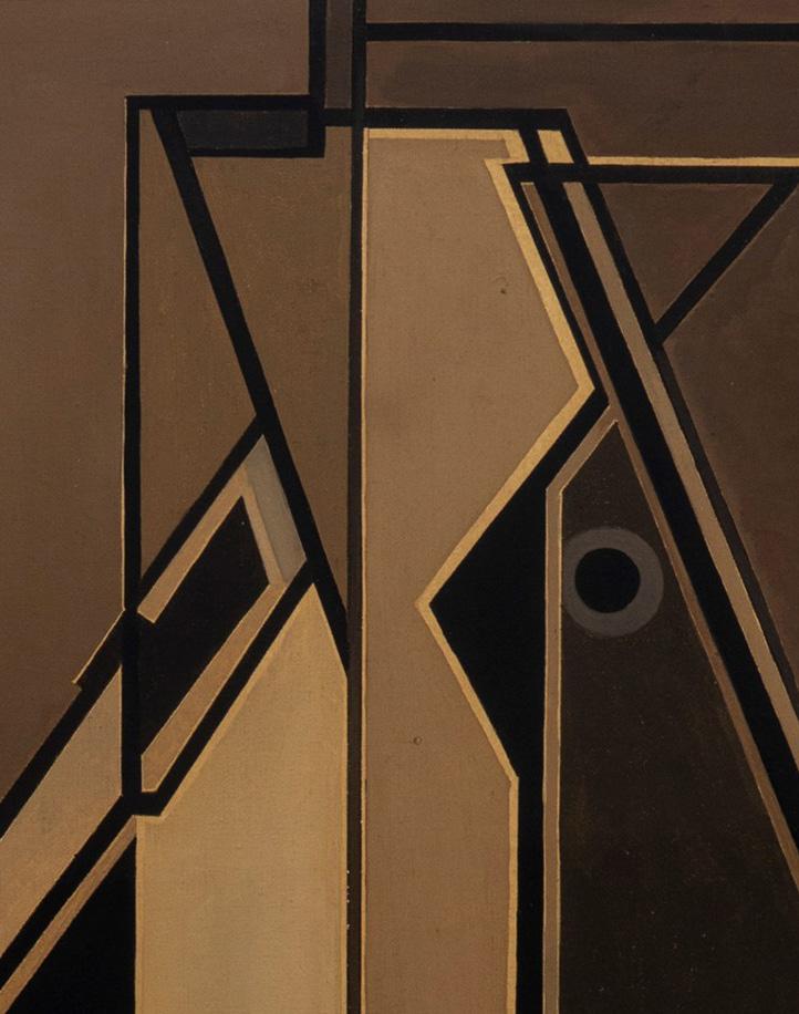 Nel frattempo, a Milano le opere cominciavano ad affollare le pareti e tutte le superfici orizzontali, fino a invadere persino la sala da bagno. I quadri geometrici appesi ai muri ricordavano al Professore le mirabolanti opere ingegneristiche che aveva visto progettare – ponti, dighe, bacini di contenimento – suscitandogli uno spazio mentale in cui triangoli, archi, ellissi e rettangoli si confrontavano in un equilibrio calibrato e sempre vibrante, portando armonia nell’intimo del suo abitare. È in questo contesto che la collezione si arricchisce di una prima composizione di Atanasio Soldati, dove diverse superfici piane strutturate in rettangoli e quadrati, costruiscono un ordine modulare, con una vibrazione tonale quasi musicale. È un’opera chiave, del primo astrattismo italiano, che anticipa il concetto di “astrazione poetica” dove il linguaggio razionale è innervato di sensibilità.