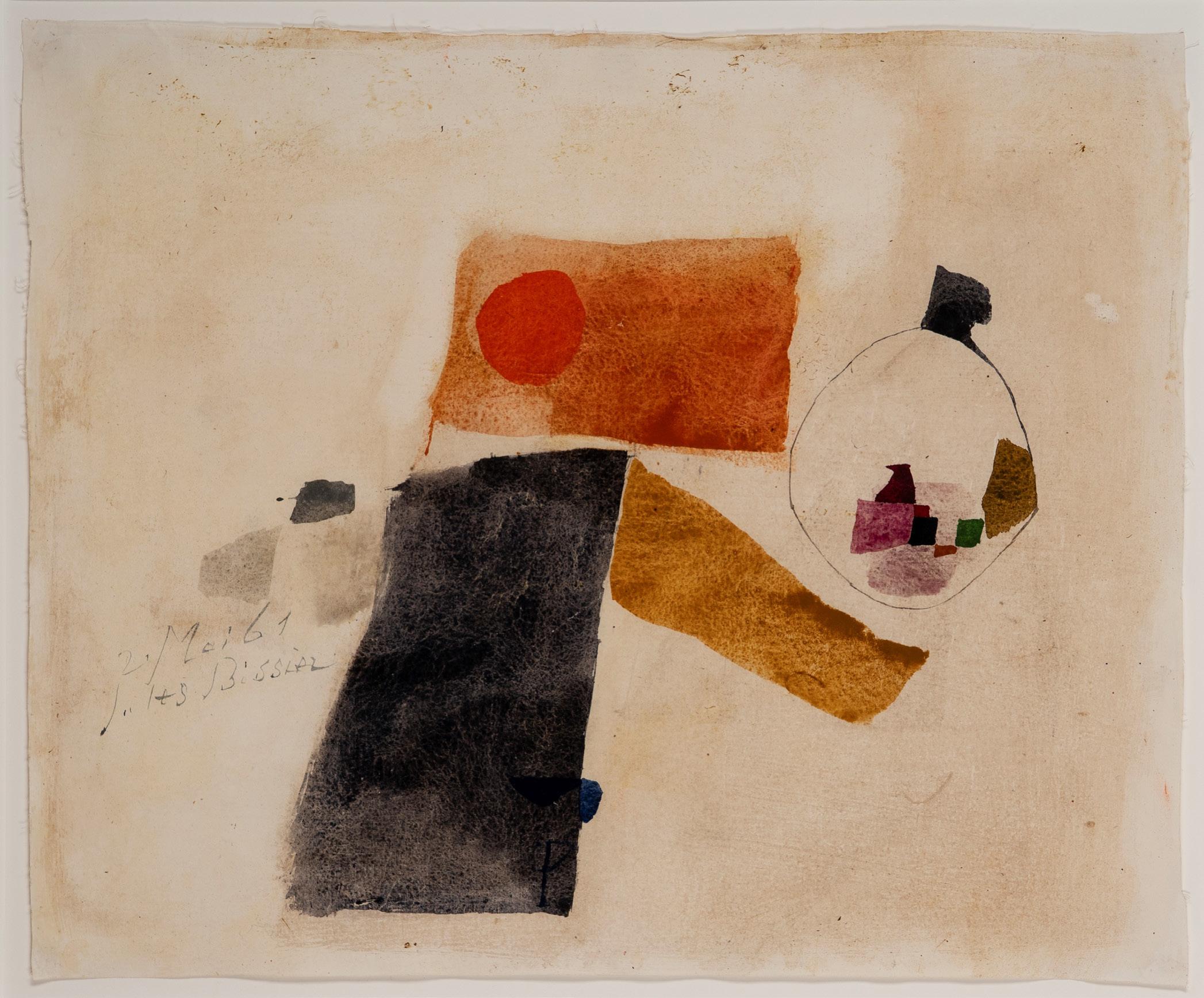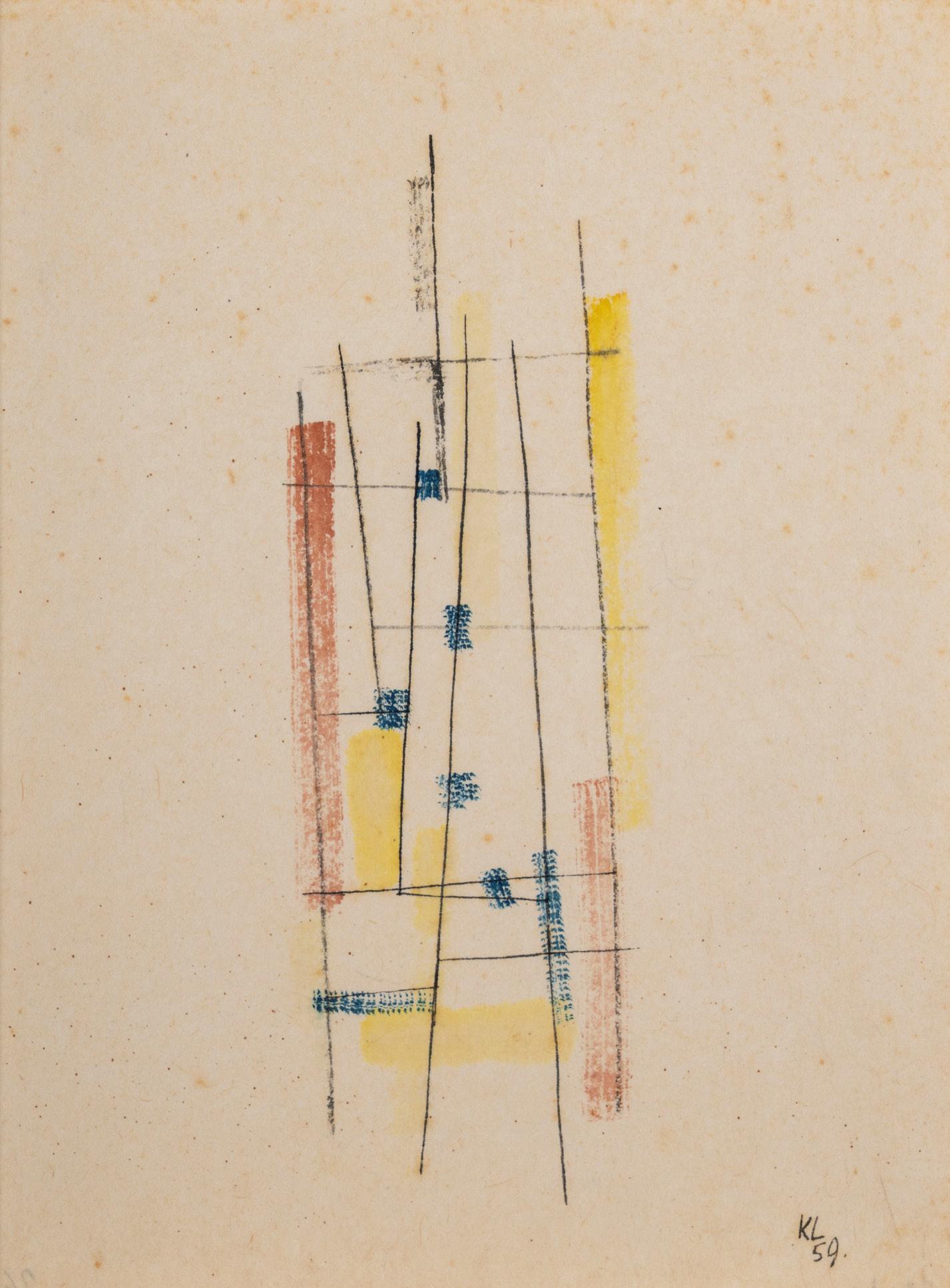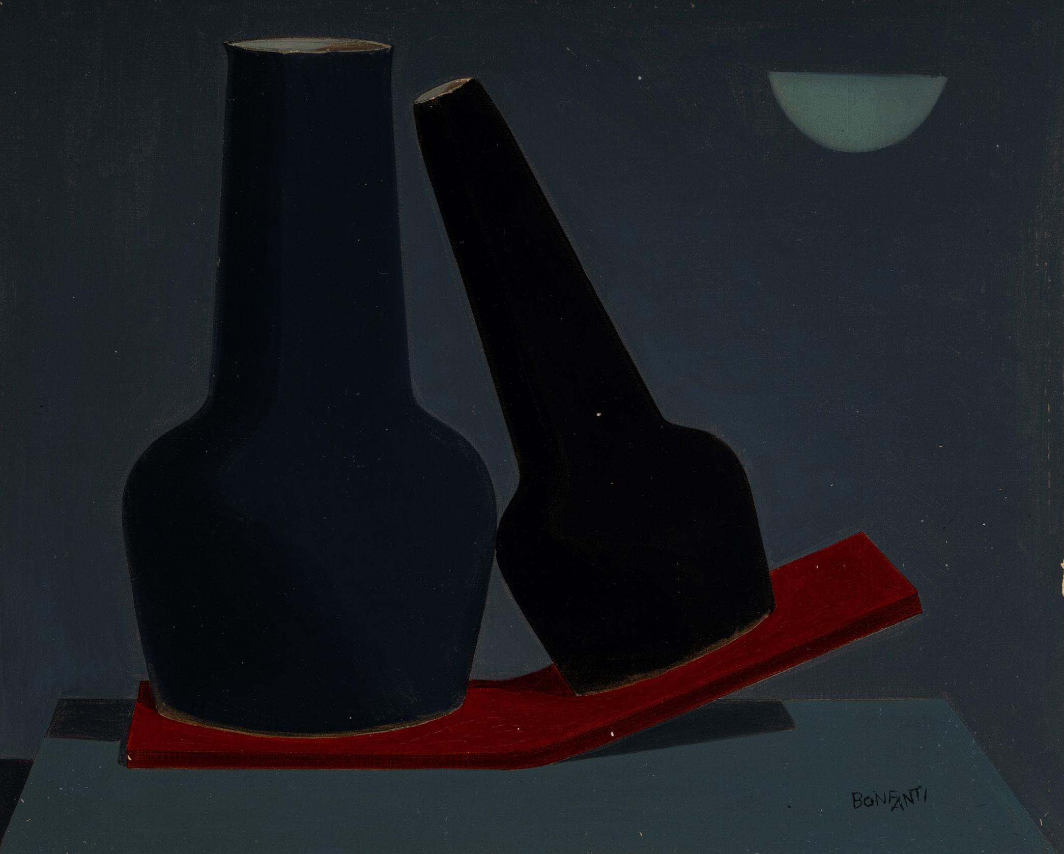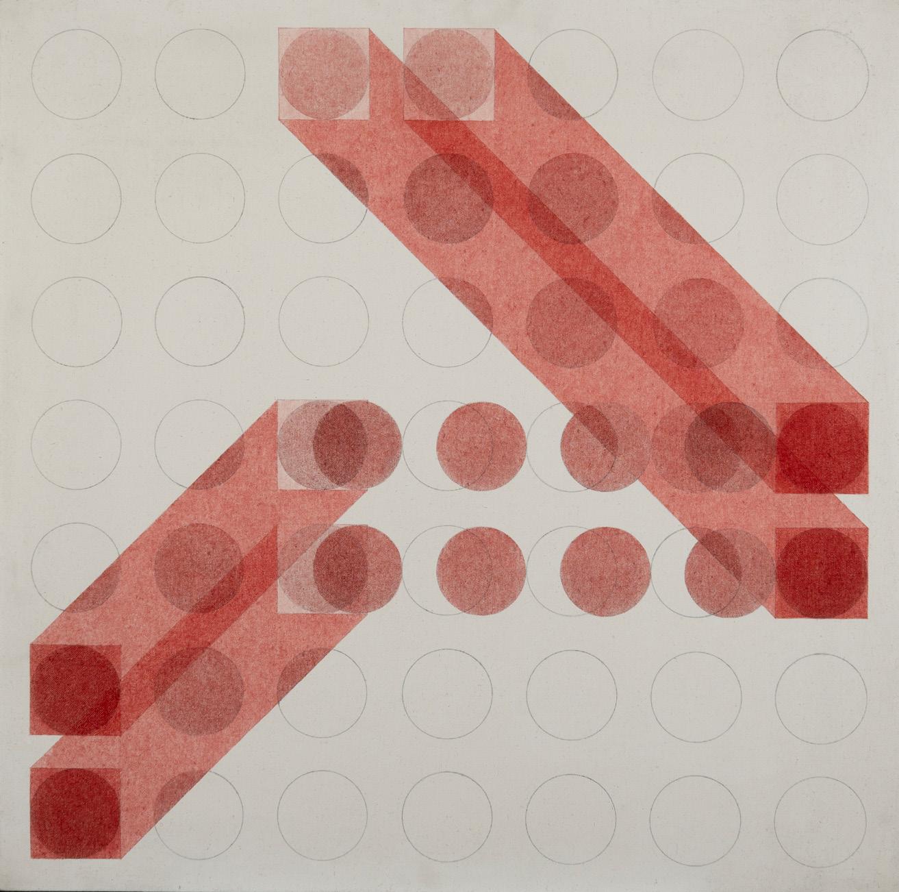 Nel frattempo, a Milano le opere cominciavano ad affollare le pareti e tutte le superfici orizzontali, fino a invadere persino la sala da bagno. I quadri geometrici appesi ai muri ricordavano al Professore le mirabolanti opere ingegneristiche che aveva visto progettare – ponti, dighe, bacini di contenimento – suscitandogli uno spazio mentale in cui triangoli, archi, ellissi e rettangoli si confrontavano in un equilibrio calibrato e sempre vibrante, portando armonia nell’intimo del suo abitare. È in questo contesto che la collezione si arricchisce di una prima composizione di Atanasio Soldati, dove diverse superfici piane strutturate in rettangoli e quadrati, costruiscono un ordine modulare, con una vibrazione tonale quasi musicale. È un’opera chiave, del primo astrattismo italiano, che anticipa il concetto di “astrazione poetica” dove il linguaggio razionale è innervato di sensibilità.