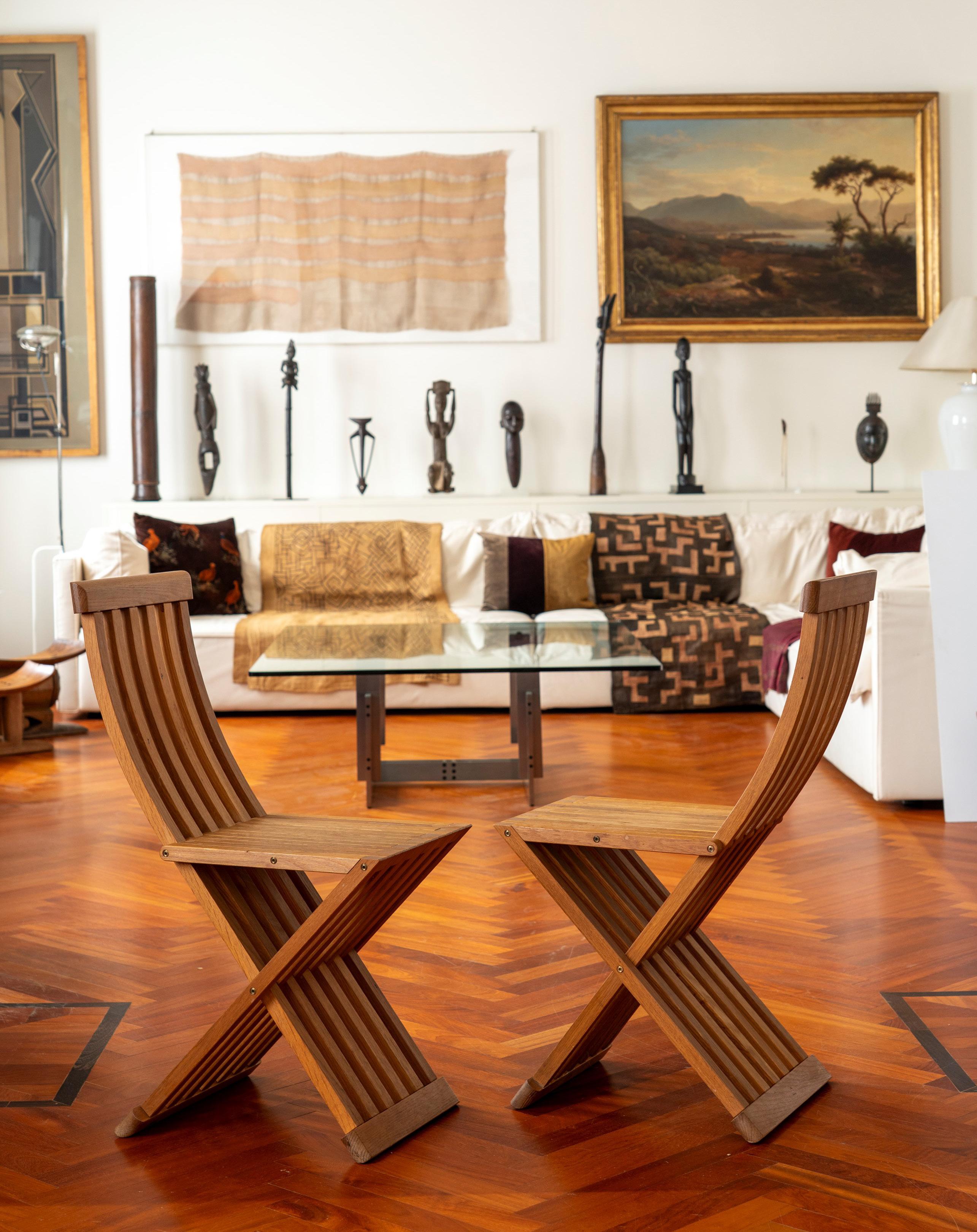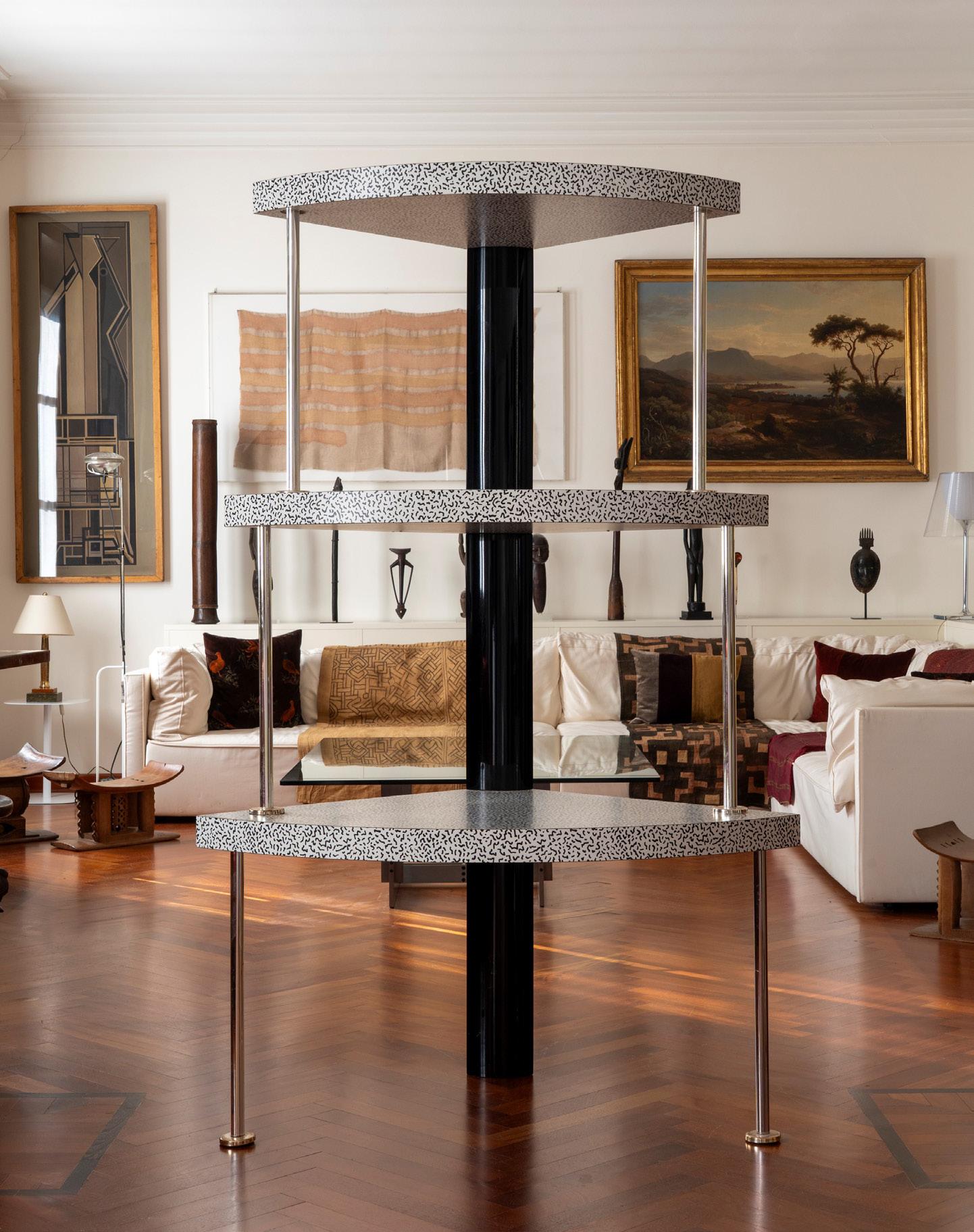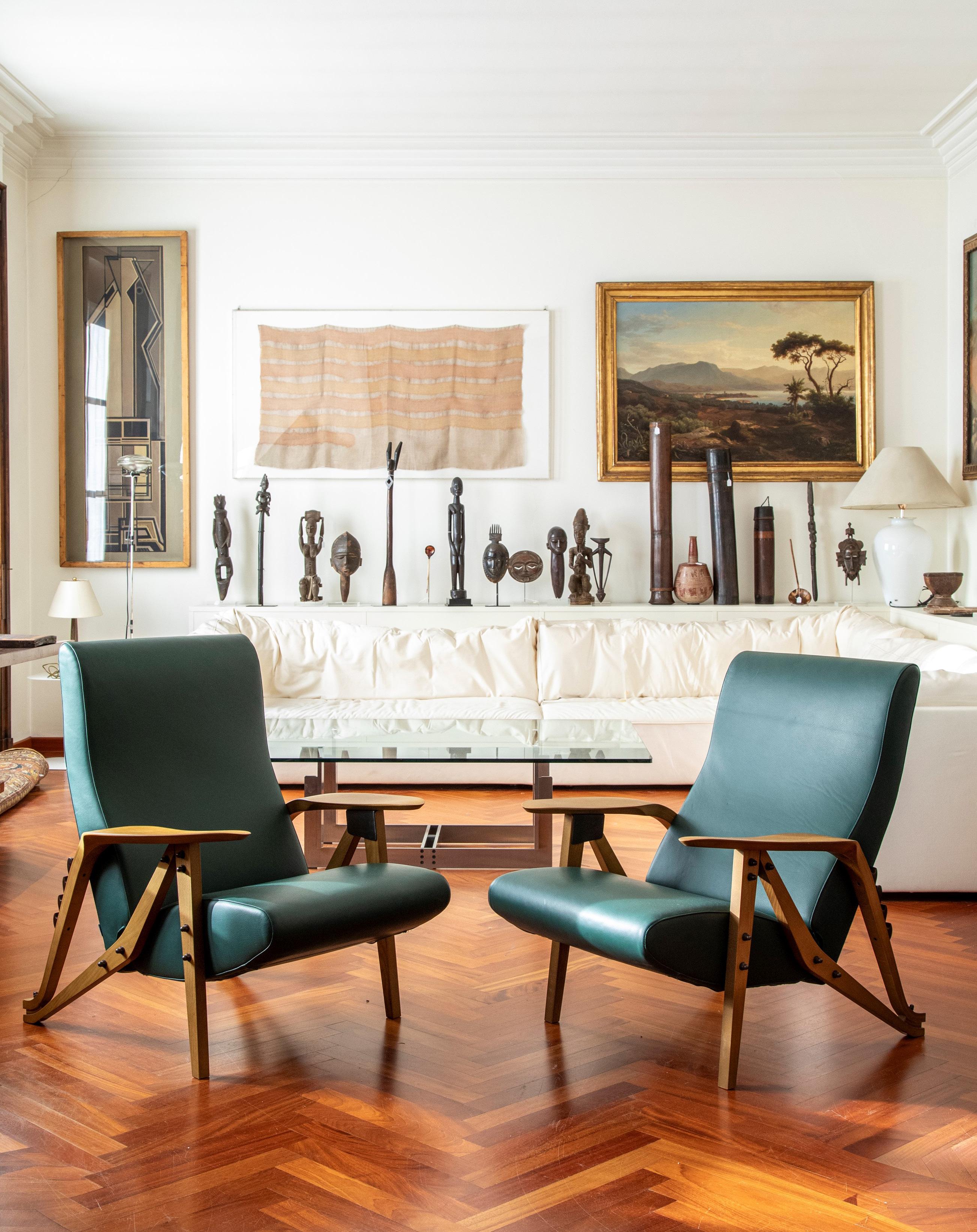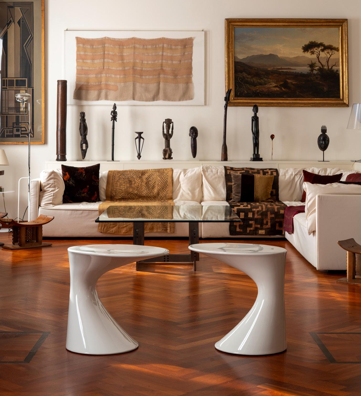 Le sue case raccontano questa postura esistenziale meglio di qualsiasi cronologia. Sono architetture interiori, mappe di un pensiero che si è sedimentato negli anni. Entrare in questi spazi significa attraversare una geografia privata fatta di equilibri silenziosi, di accostamenti inattesi, di presenze scelte a una a una nel corso dei decenni. Qui l’arte africana dialoga con il design, la pittura astratta del Novecento convive con arredi d’epoca rigorosi, le sculture si dispongono come sentinelle domestiche accanto a tavoli e finestre. Nulla appare esibito: tutto è vissuto.