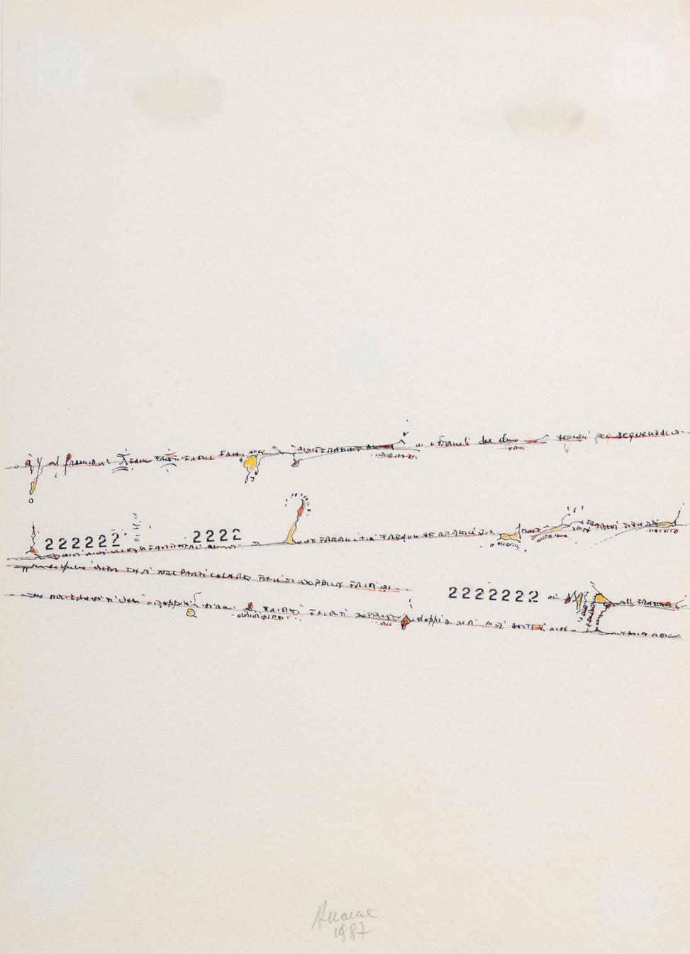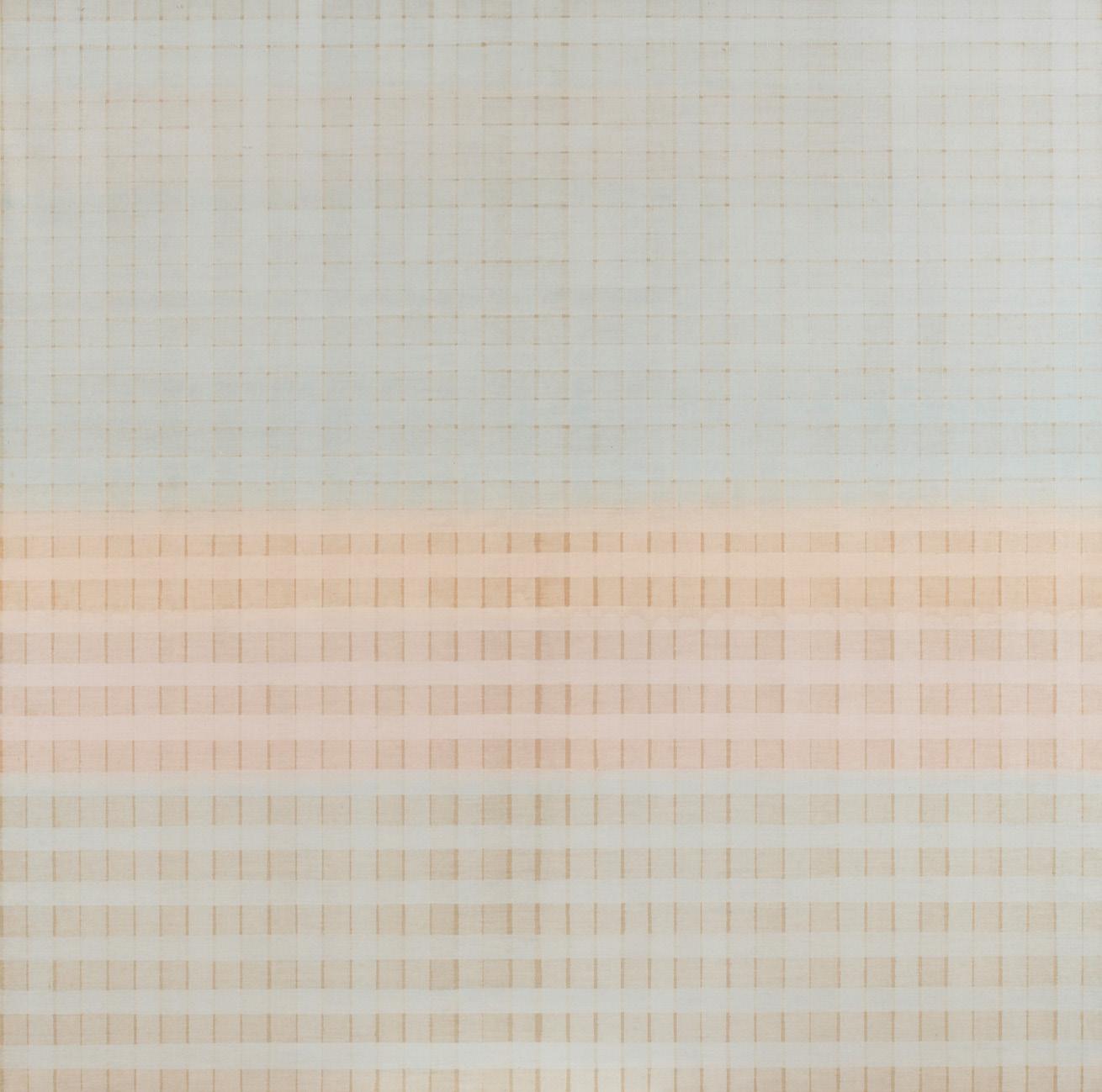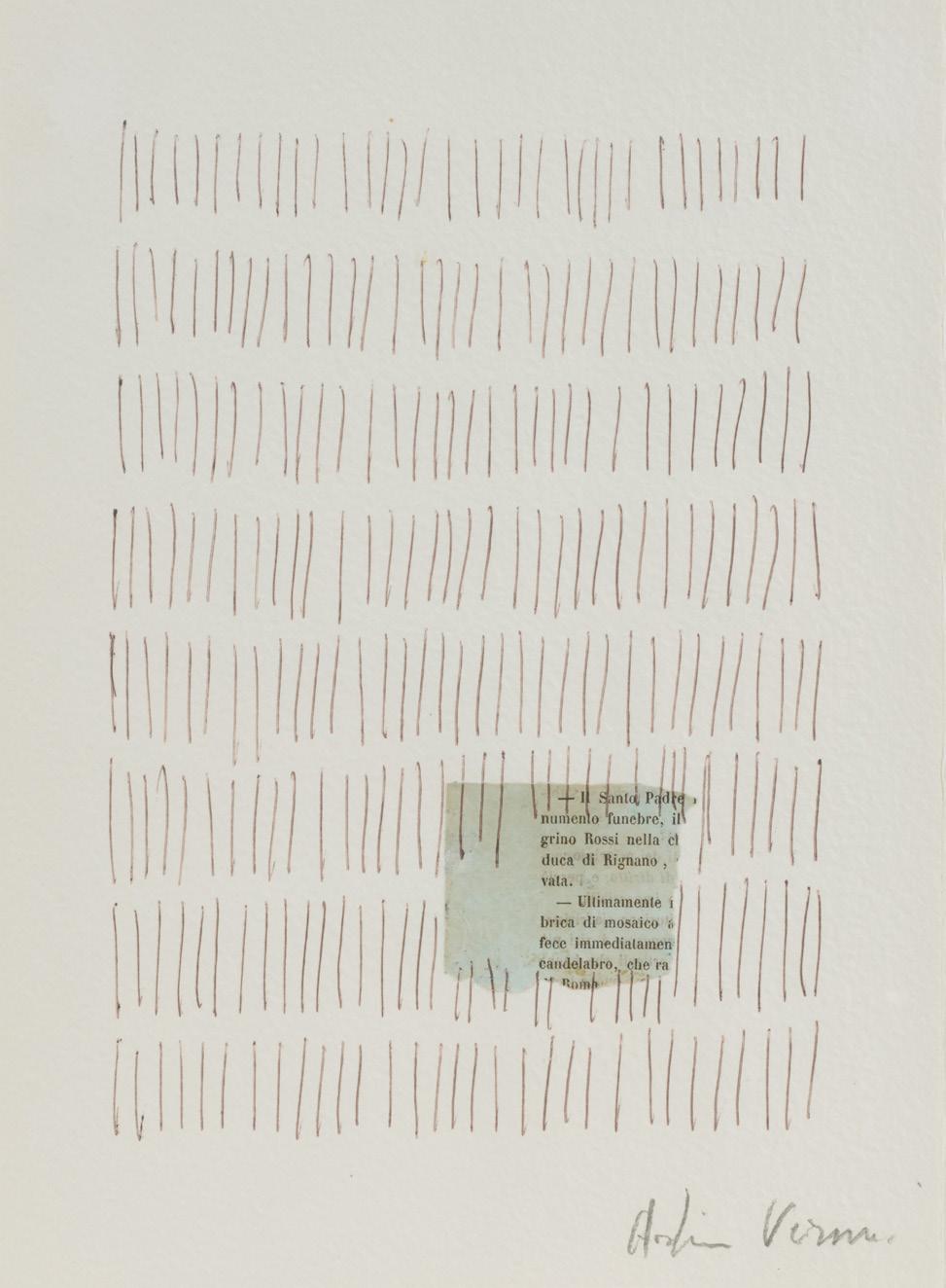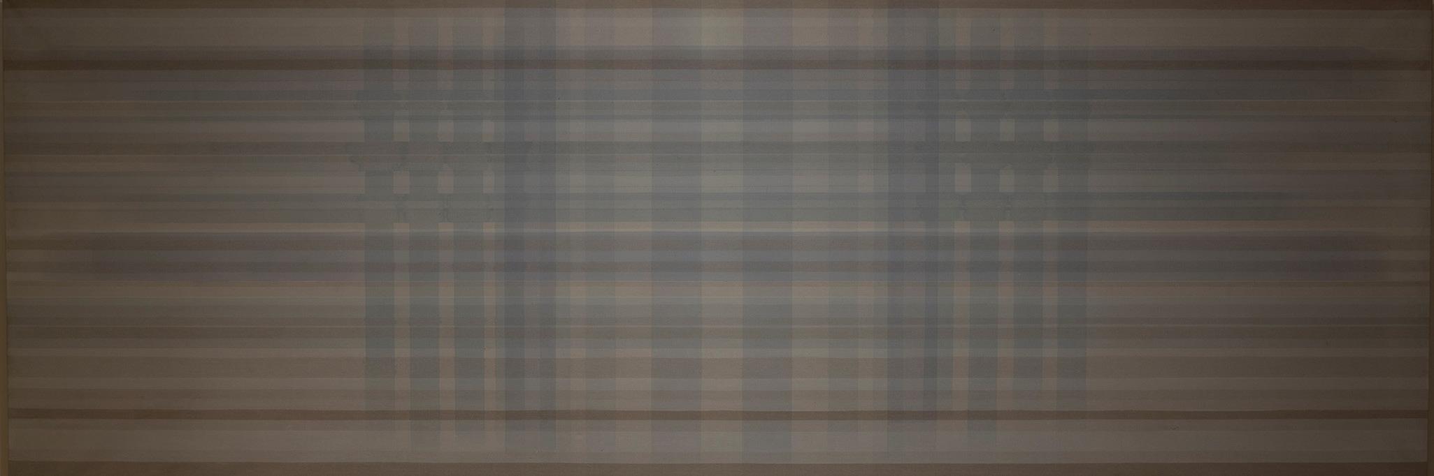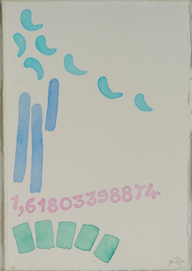 A via Cossa, la collezione del Professore trova la sua massima espressione anche espositiva. Cresciuta fino a quel momento seguendo la serendipità dell’occasione, nell’attico di Milano si ravviva di nuova luce ed esprime al massimo il suo potenziale narrativo. Le meravigliose opere di Giorgio Griffa, esponente centrale della pittura analitica italiana, si esprimono qui in tutta la loro impermanenza. Tele di cotone grezzo, lino e altre fibre naturali servono da supporto per colori acrilici molto diluiti, stesi direttamente sulla superficie non preparata, così che il colore penetri nelle fibre. I margini piegati fanno parte dell’opera, come pure le pieghe e le deformazioni dovute alla materialità del supporto, diventando gesto che testimonia lo stato di sospensione dell’opera, mai finita e sempre in progress. La collezione Crivellaro vanta anche un acquerello originale della collaborazione di Griffa per la messa in scena de “La vita di Galileo” (titolo originale tedesco Leben des Galilei) di Brecht.