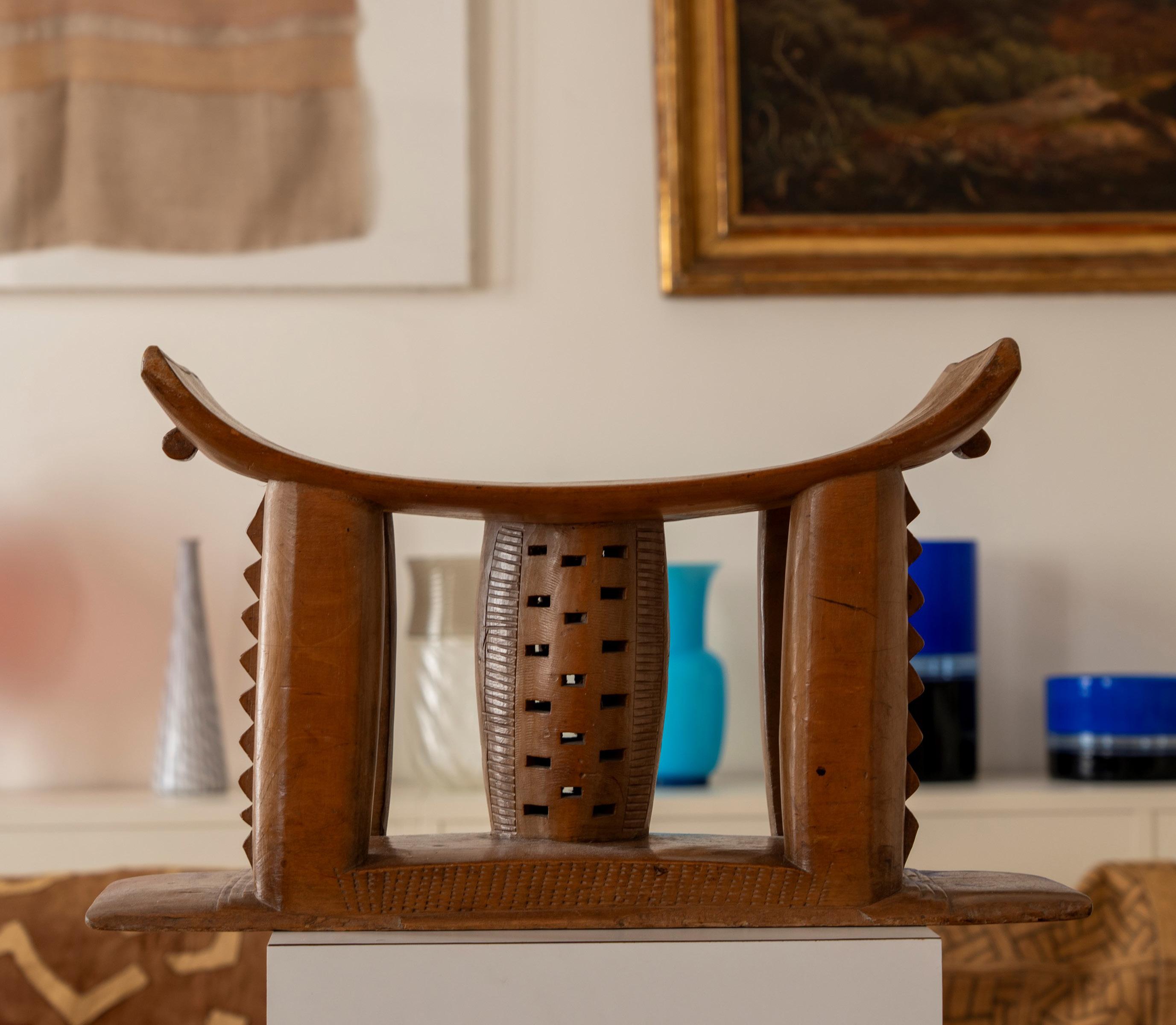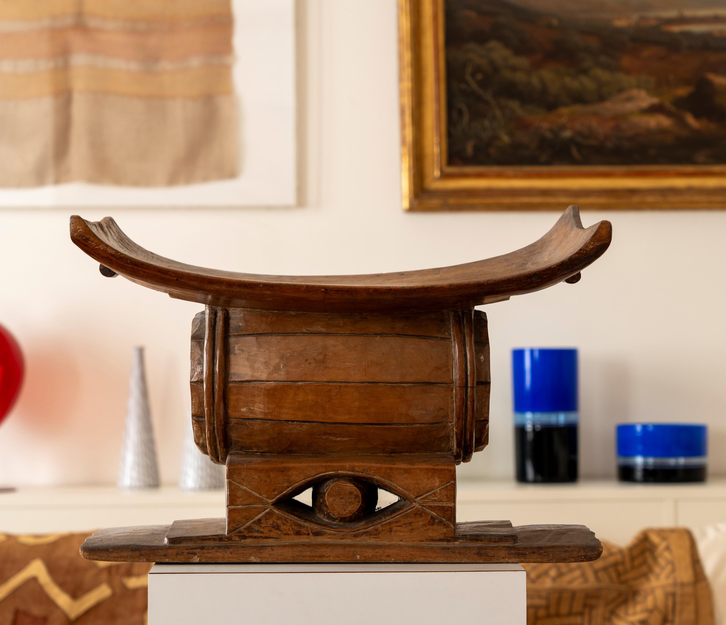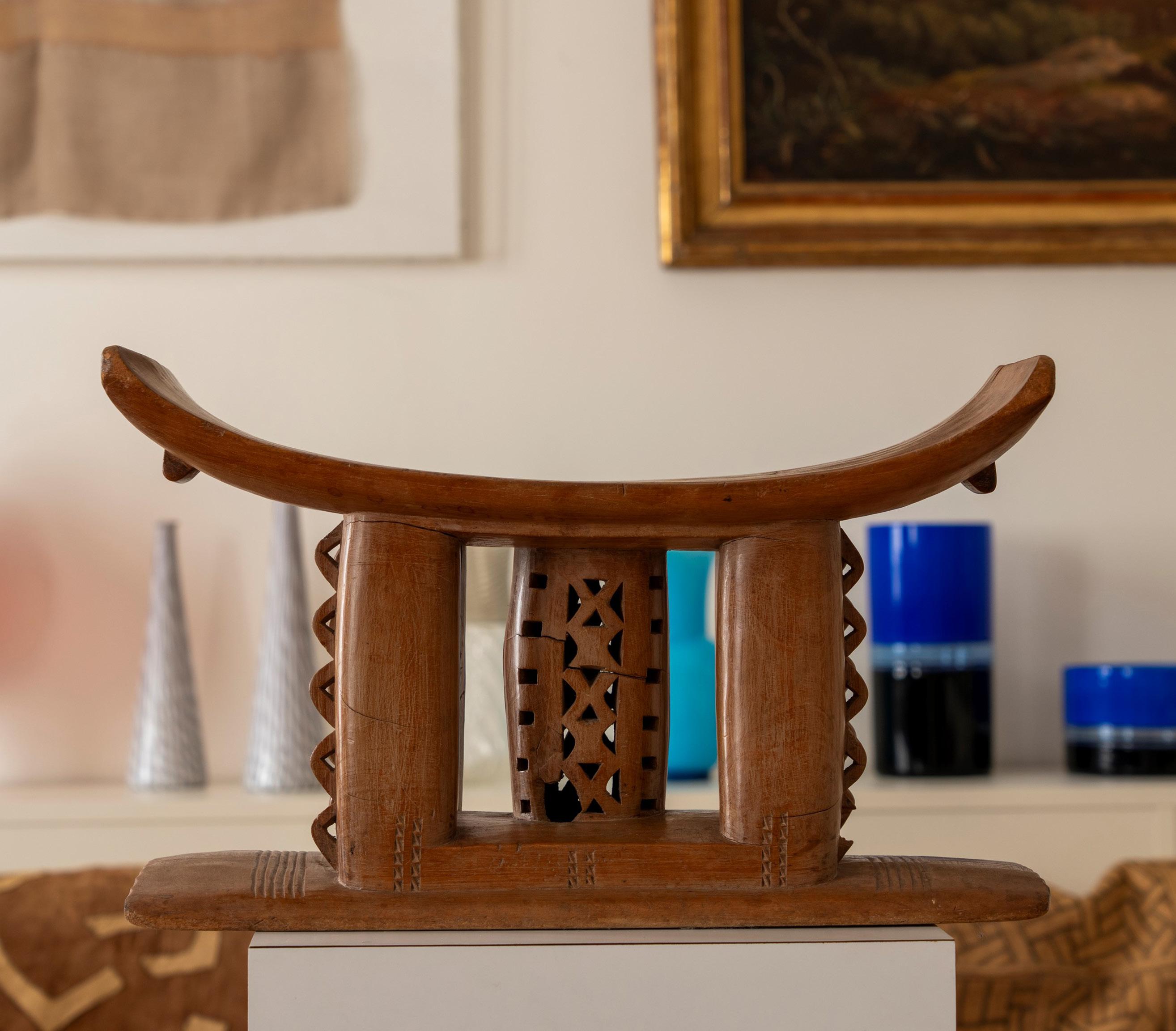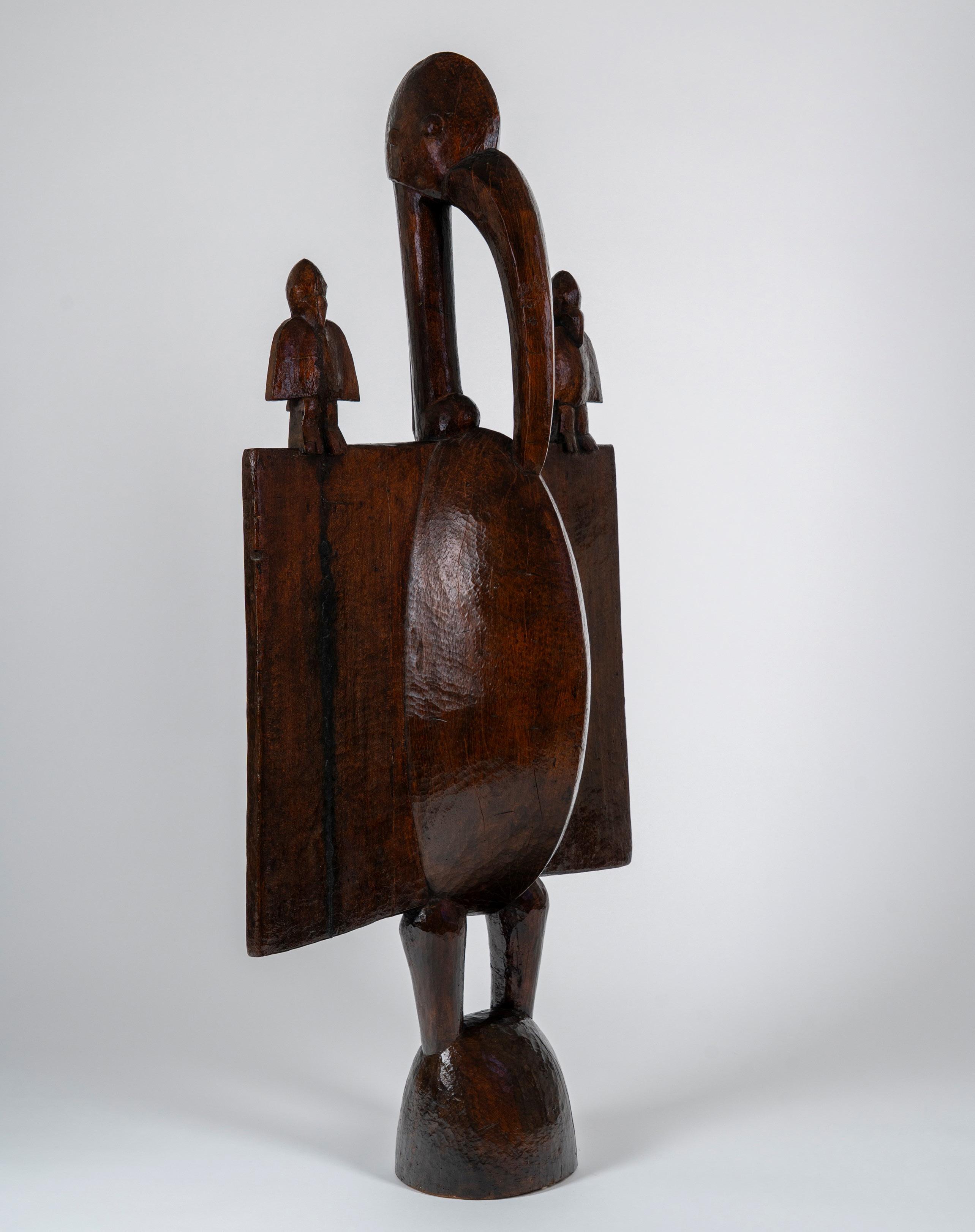 All’ingresso, la scultura in bronzo patinato di Mario Negri “Erma”, acquistata anni prima, veniva posta come un totem all’entrata, non a caso a segnare una soglia – simbolo di protezione e di confine, punto di passaggio tra il mondo esterno e lo spazio della casa. Una grande scultura lignea della Costa d’Avorio, il Calao, – uccello mitico legato alla fertilità, alla conoscenza e al legame fra cielo e terra – era posta dietro la porta d’entrata, quasi a custodire la dimensione più intima e raccolta della vita domestica, racchiusa negli ampi spazi del doppio salone. A completare questo percorso nell’architettura simbolica delle soglie, la struttura di supporto del tetto di una Toguna, l’edificio pubblico caratteristico della cultura Dogon del Mali, si stagliava come ulteriore emblema di accoglienza e protezione.