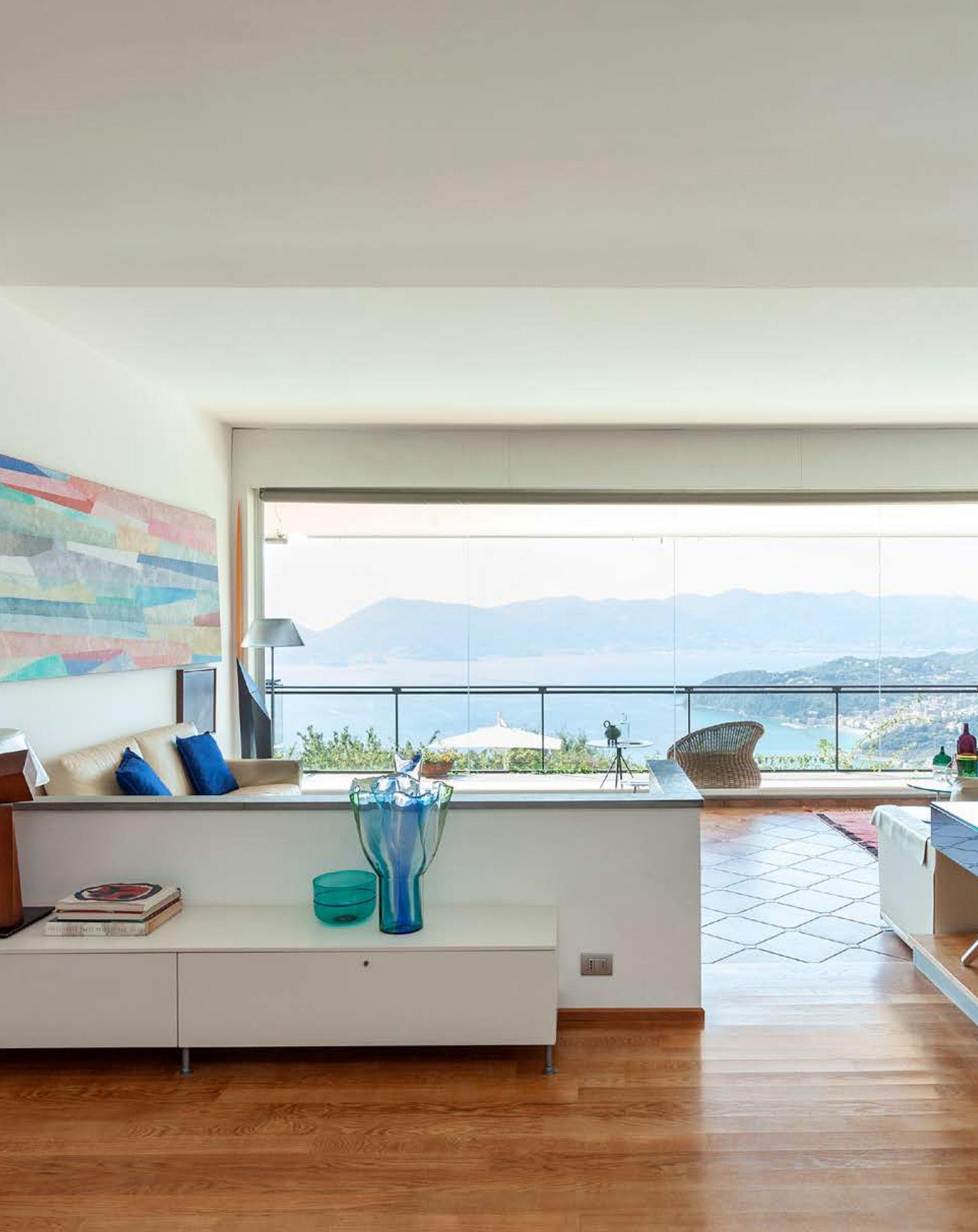 Ora che la villa di Lerici offre ampi spazi in dialogo col verde delle piante e il blu del mare, si diletta a progettare giardini e fioriere, sempre ricche di colori da Pasqua al finire dell’autunno. La luce della riviera ligure gli regala oltre vent’anni di pura bellezza: il salone di Villa Bona, circondato da una parete tutto vetro con affaccio a ovest, si adorna quotidianamente di tramonti mozzafiato che diventano quadri – essi stessi opere d’arte in dialogo con la sinuosità dei vasi da collezione Venini, con il profilo della rossa poltrona bergère disegnata da Carlo Molino, e con il giallo dei tappeti berberi disposti in obliquo per riprodurre le composizioni geometriche tanto amate.