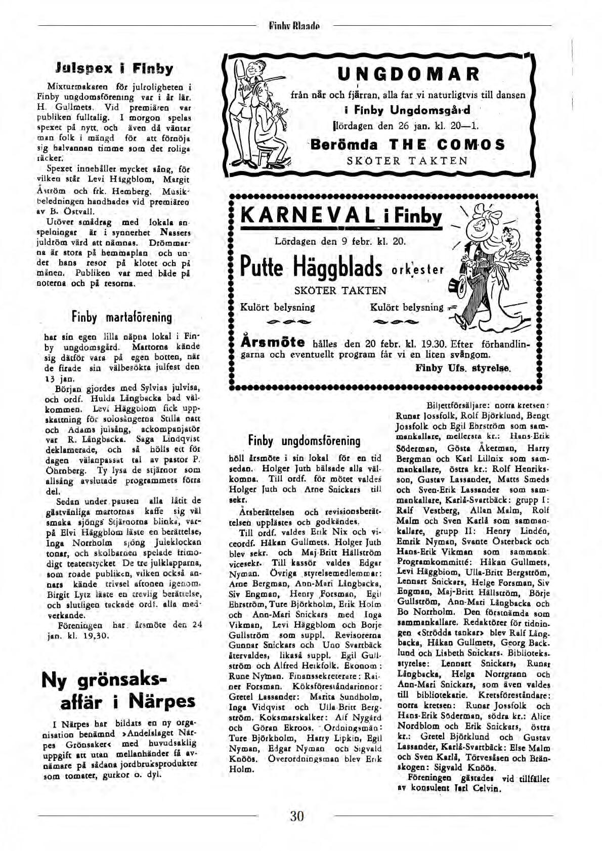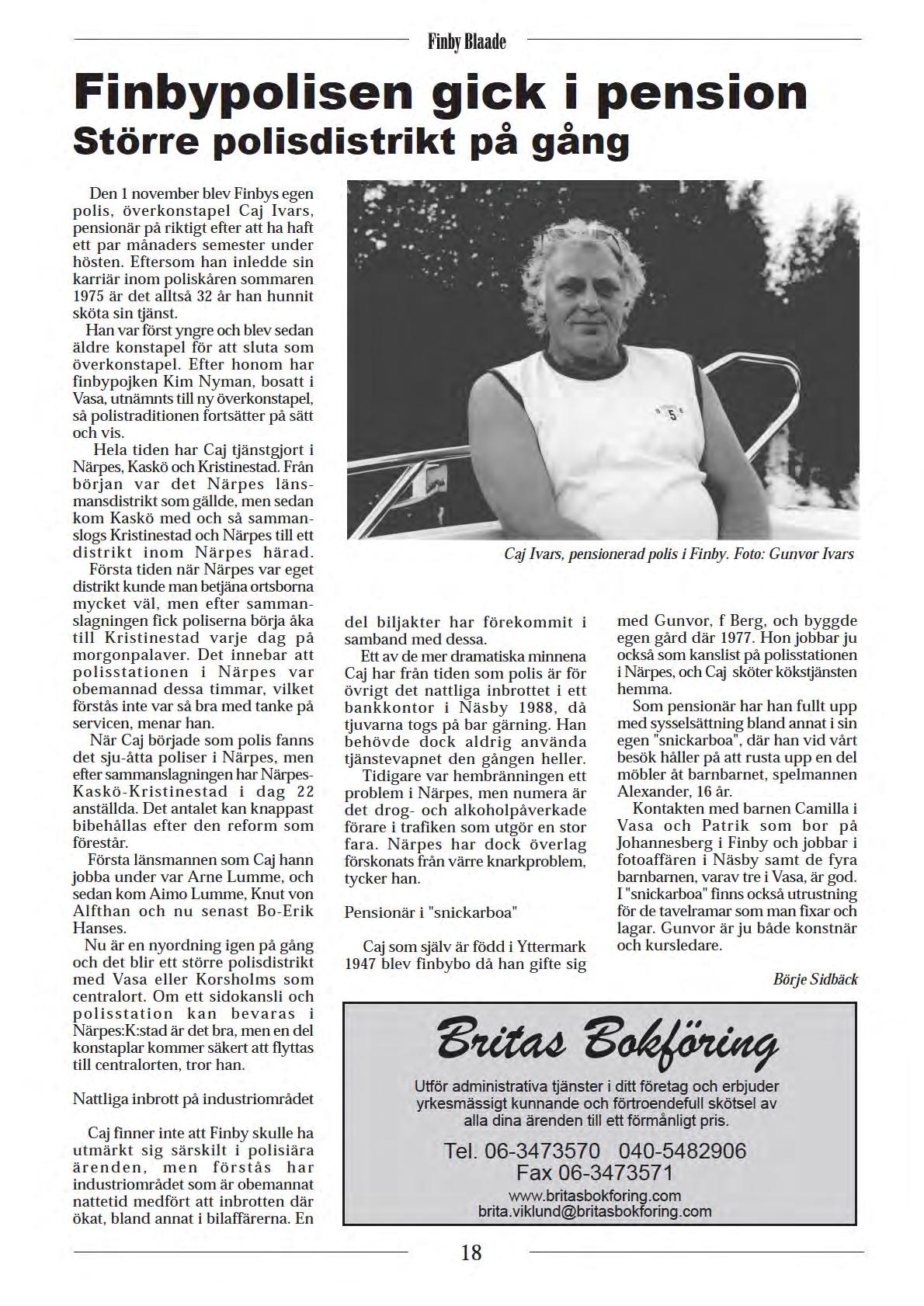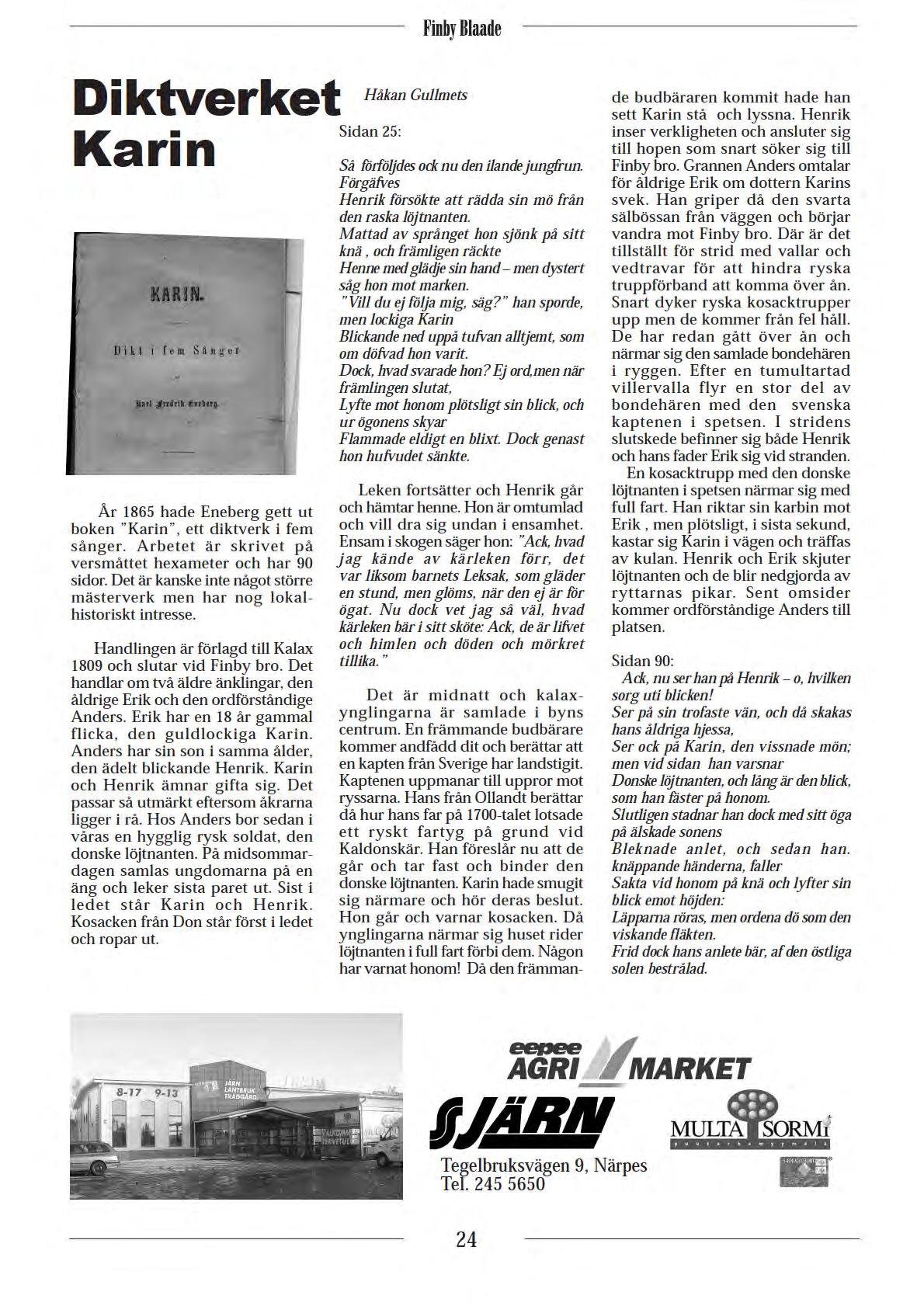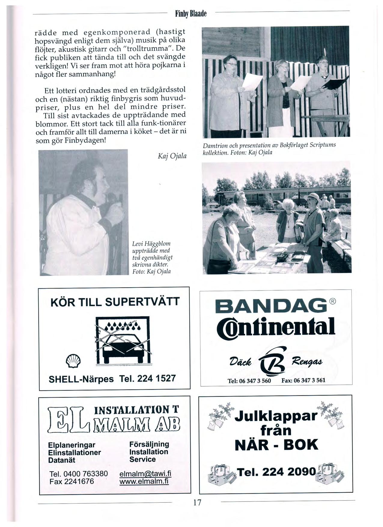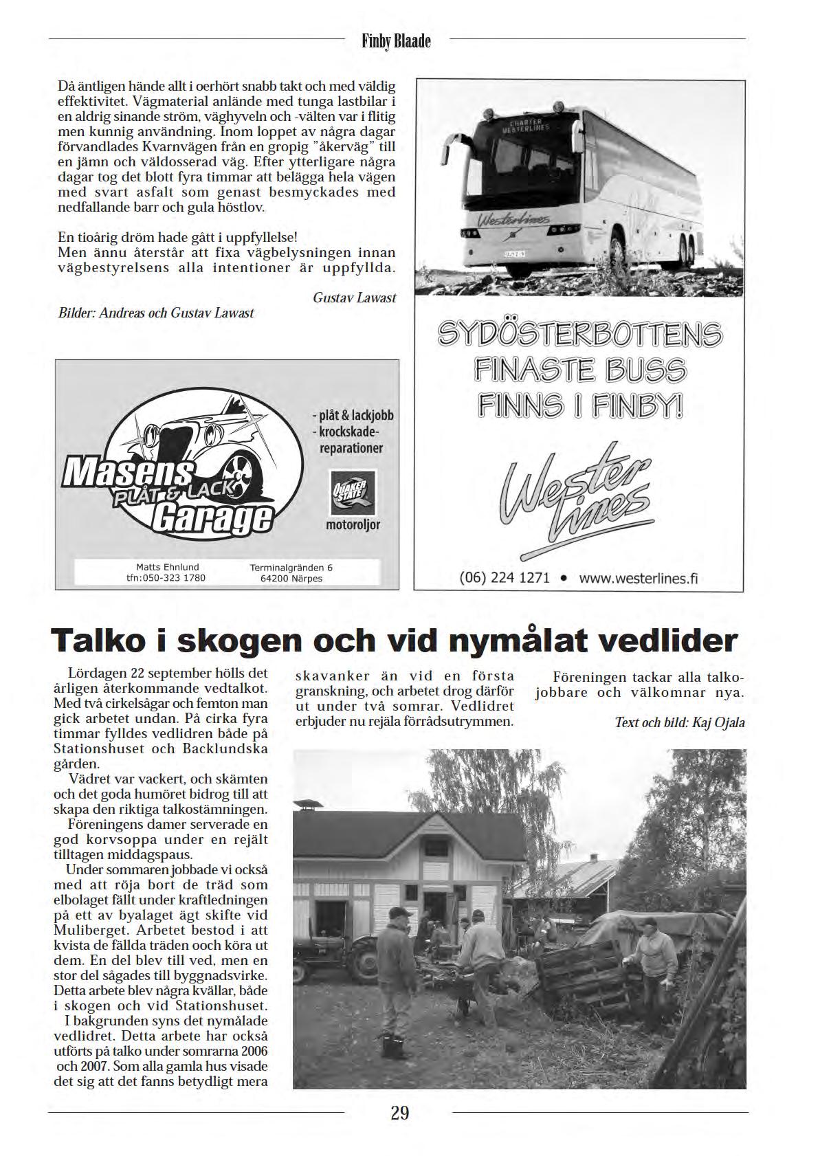Ett omfattande arbete sattes ner på byhhistoriken Finbyboken - en by i Närpes. Den blev på hela 616 sidor utkom 16.12 1989 i 1.200 ex. FinbyBlaadeharsedanstarten1985årligen tryckts i en upplaga om 500-600 exemplar