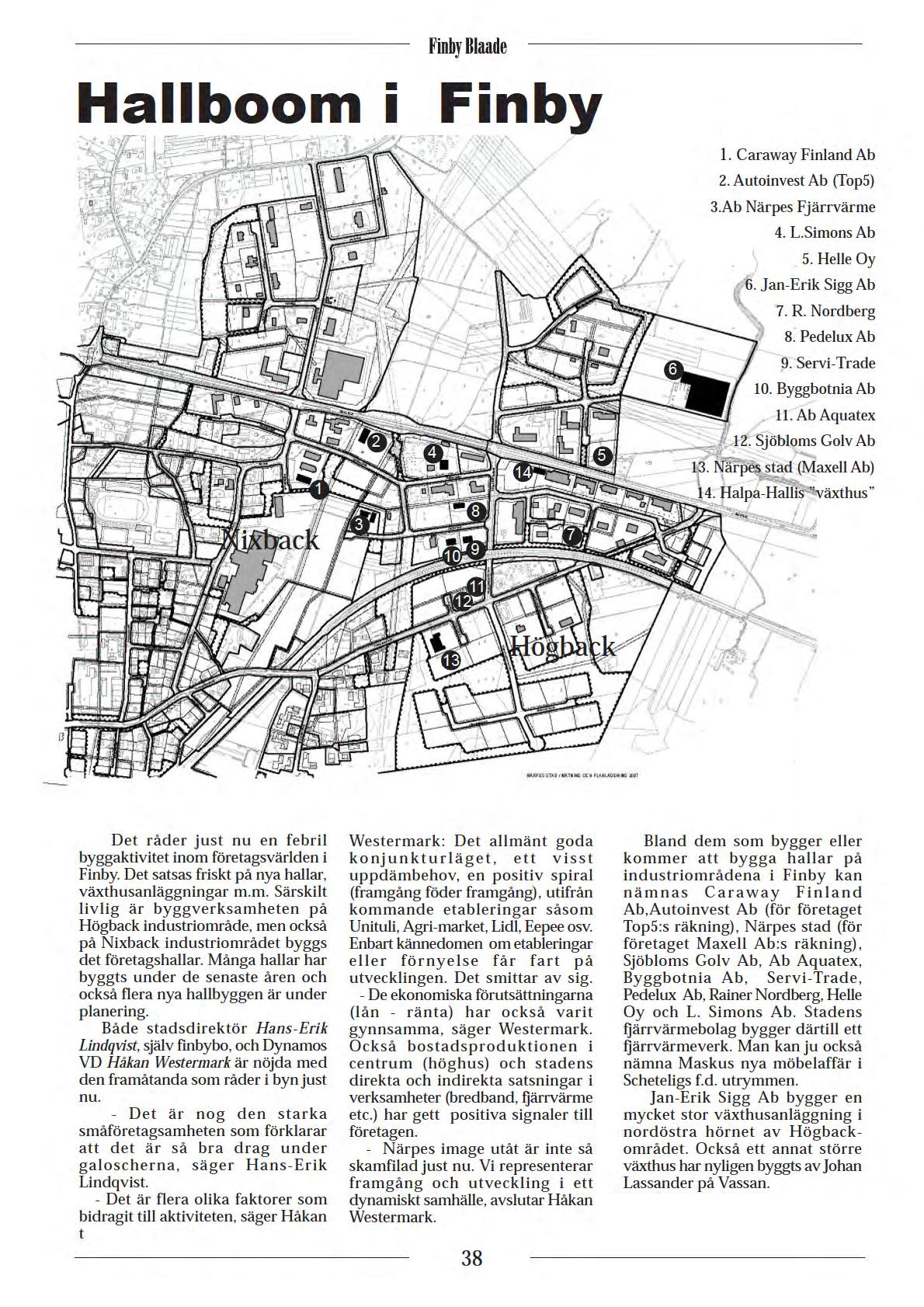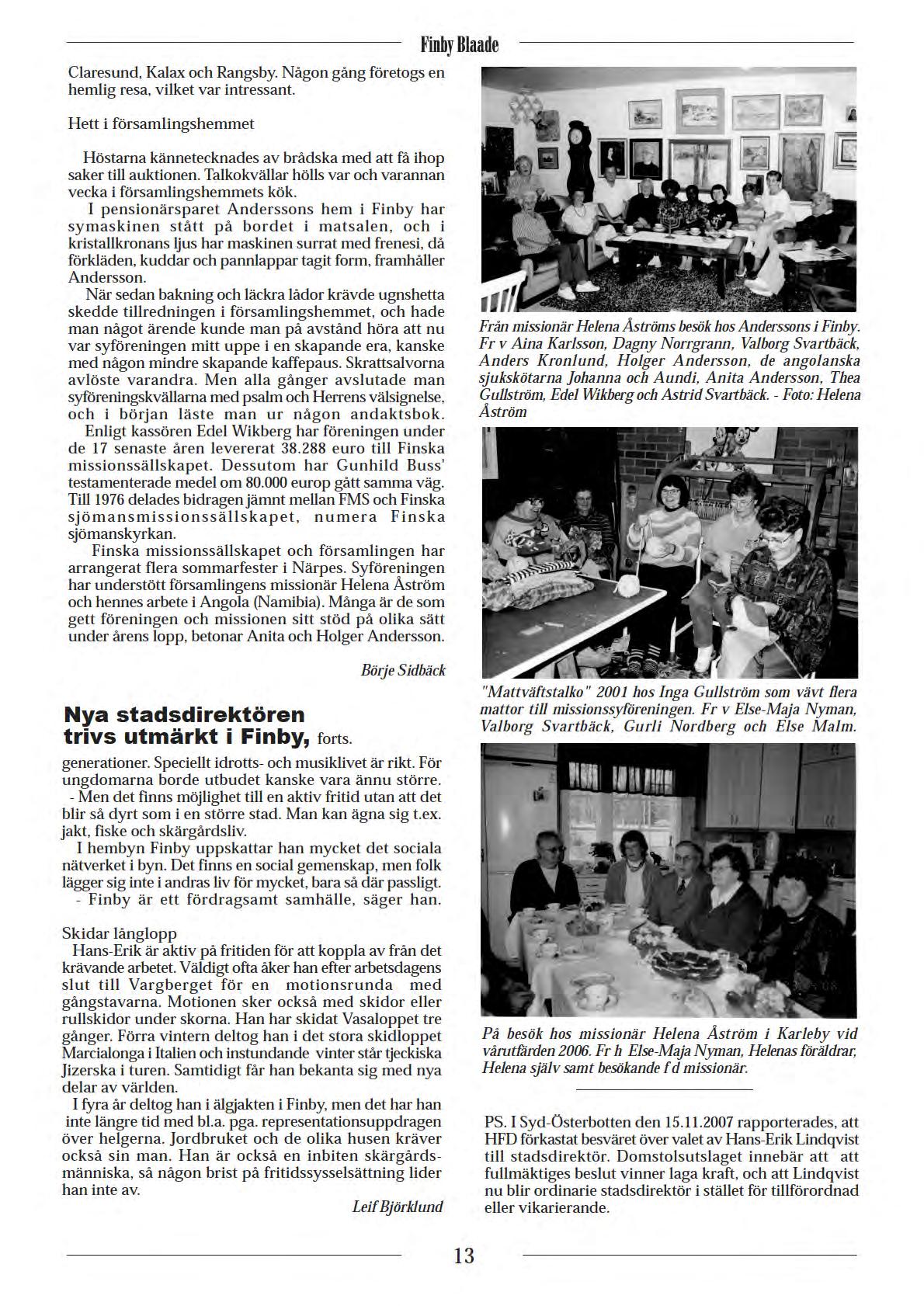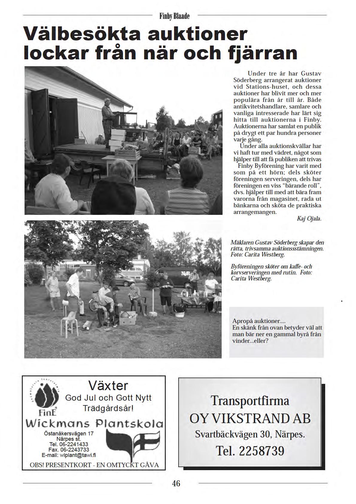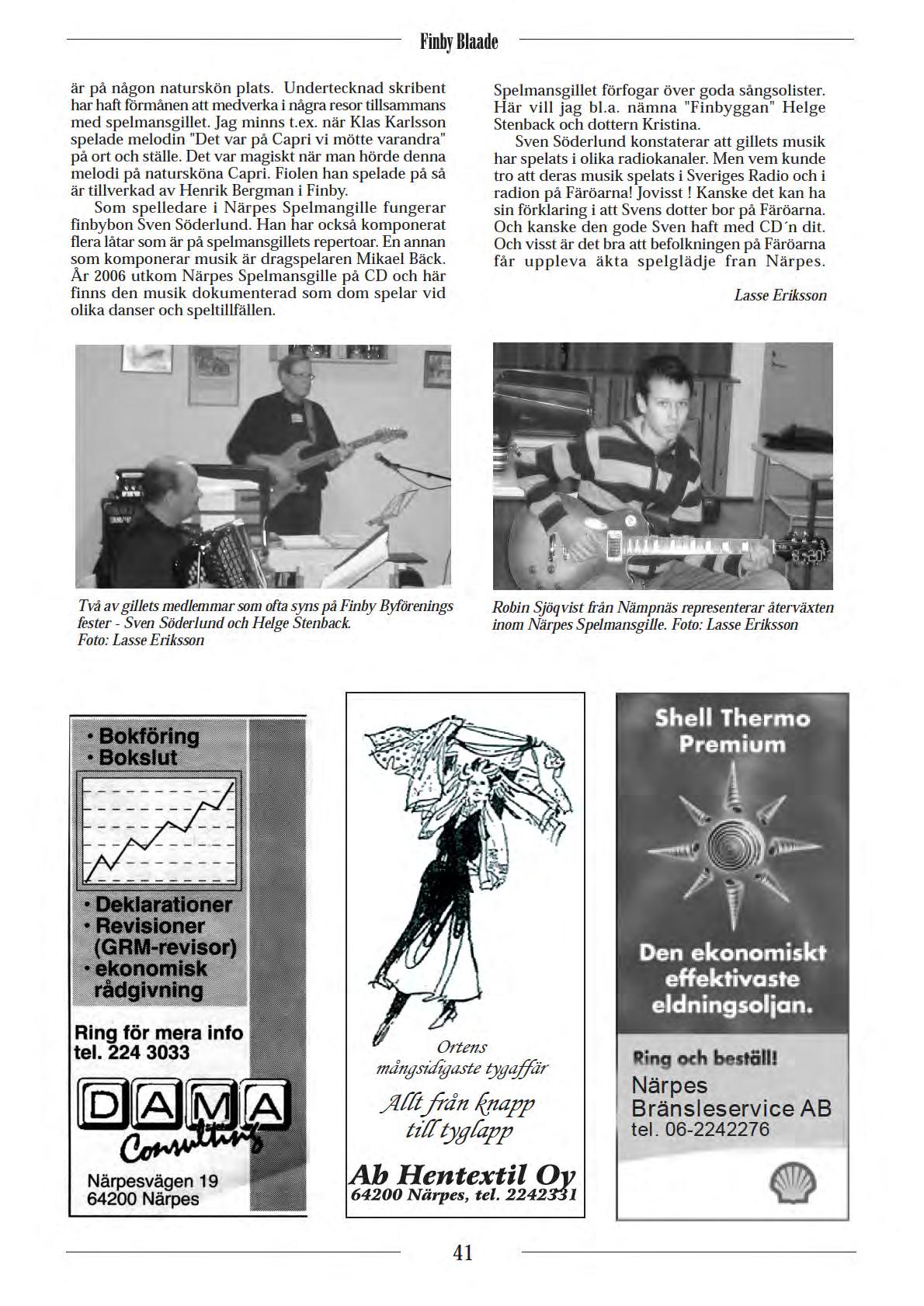 Ett omfattande arbete sattes ner på byhhistoriken Finbyboken - en by i Närpes. Den blev på hela 616 sidor utkom 16.12 1989 i 1.200 ex. FinbyBlaadeharsedanstarten1985årligen tryckts i en upplaga om 500-600 exemplar