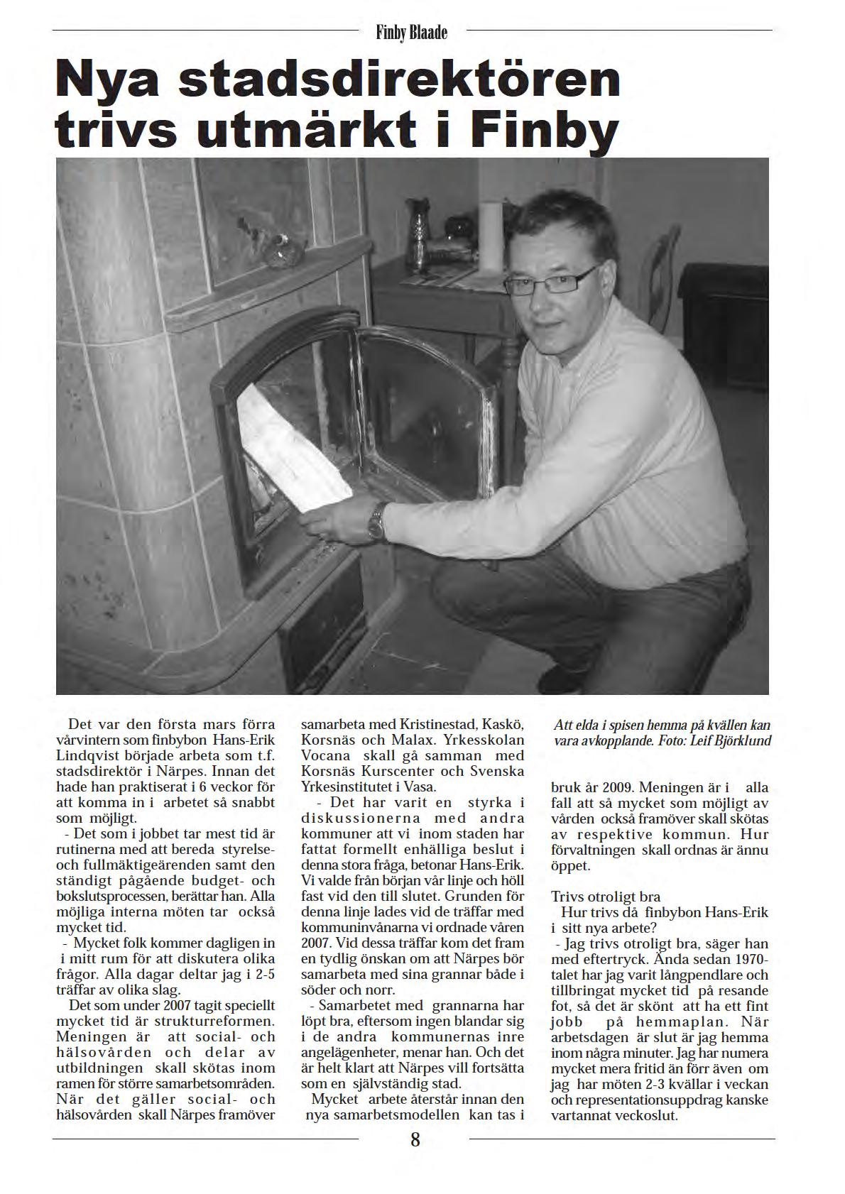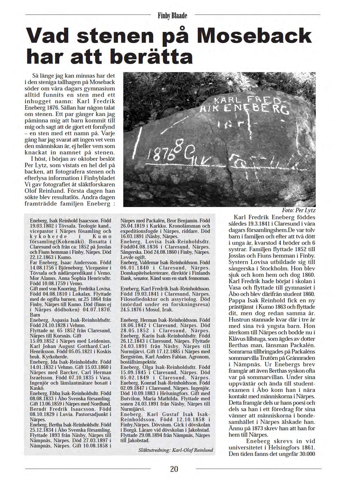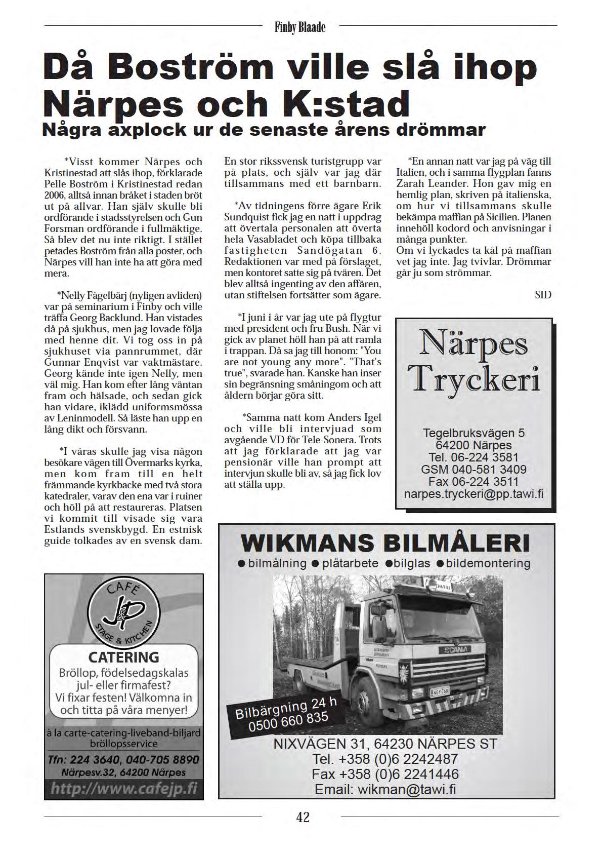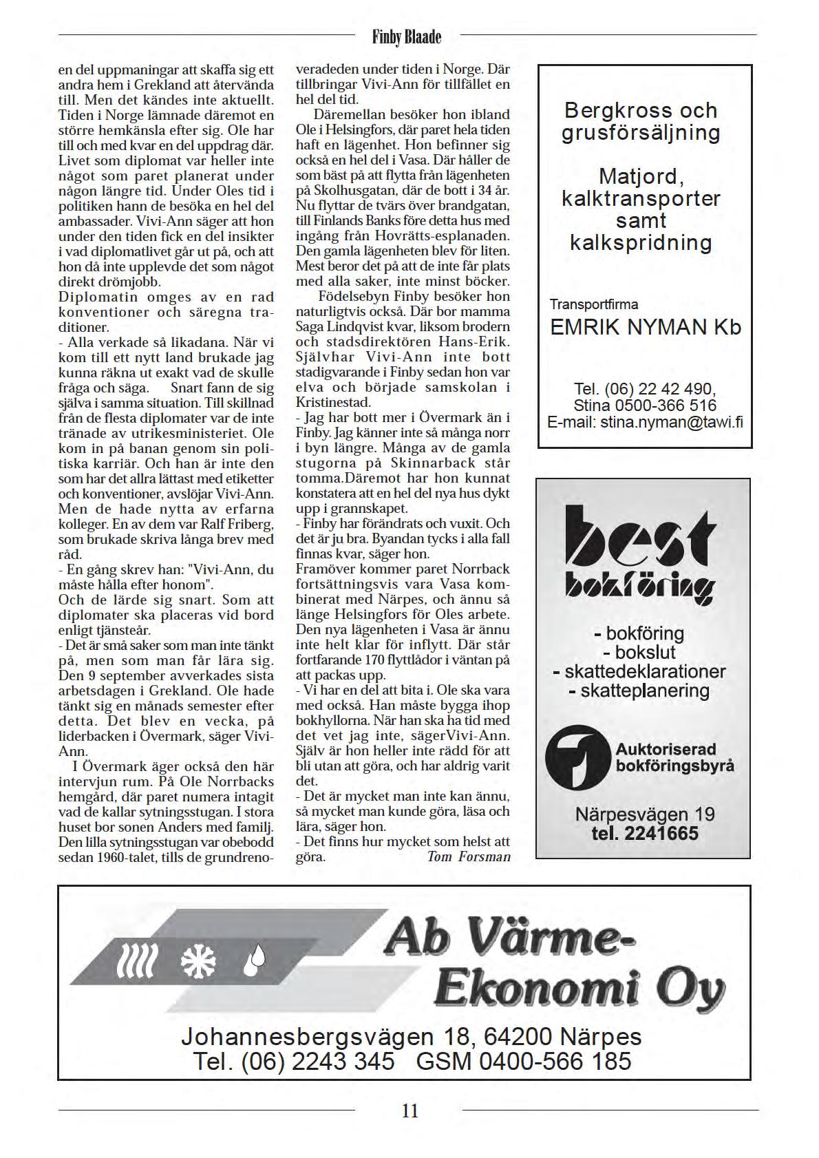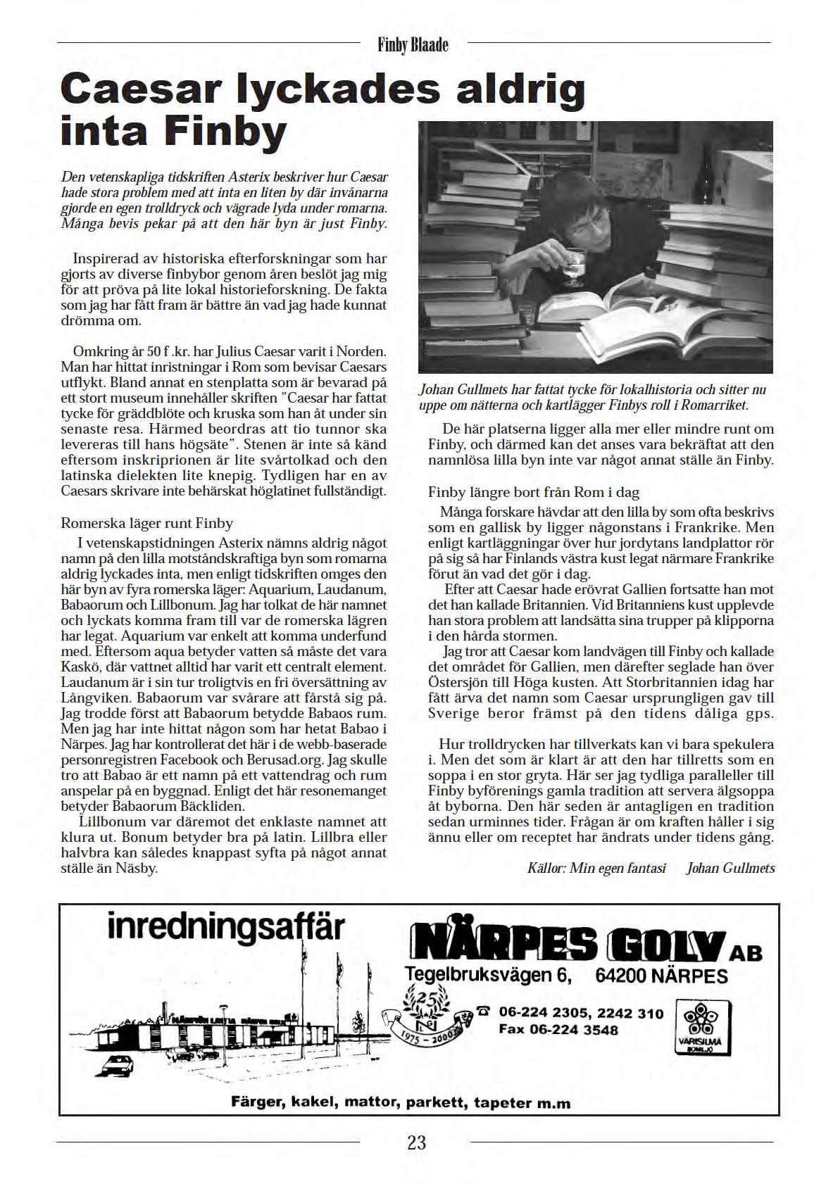 Ett omfattande arbete sattes ner på byhhistoriken Finbyboken - en by i Närpes. Den blev på hela 616 sidor utkom 16.12 1989 i 1.200 ex. FinbyBlaadeharsedanstarten1985årligen tryckts i en upplaga om 500-600 exemplar
