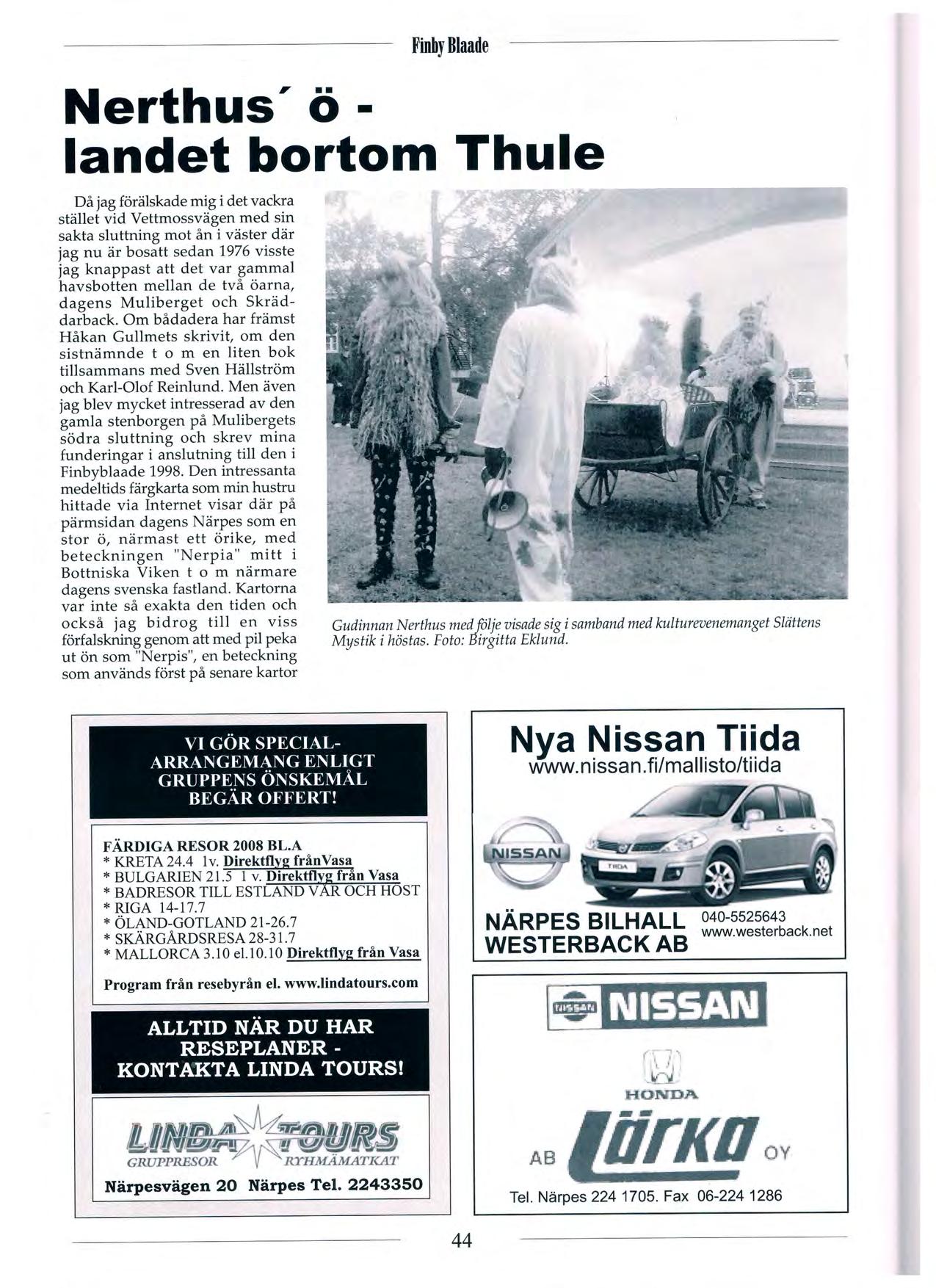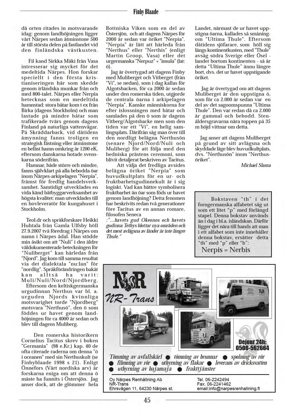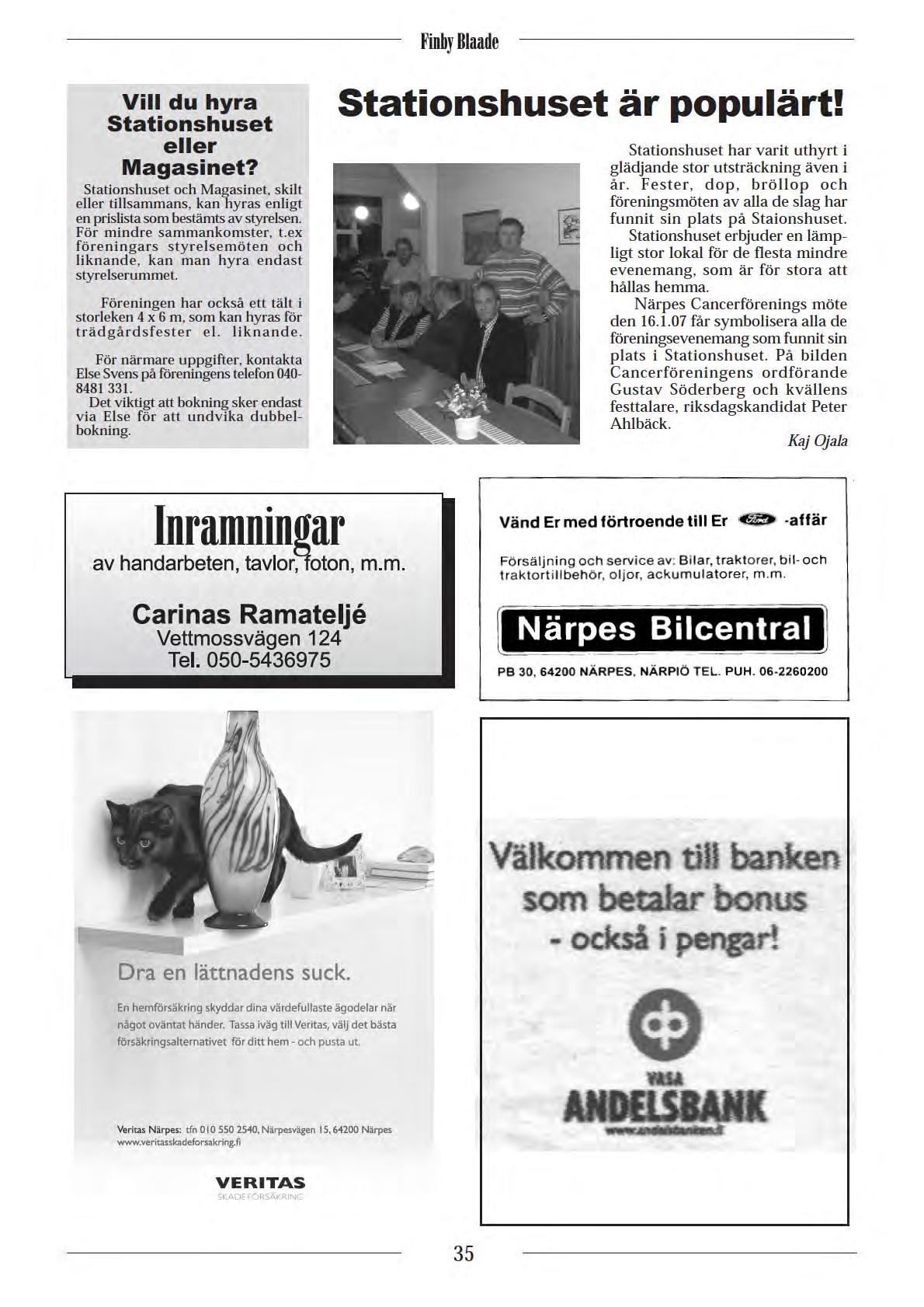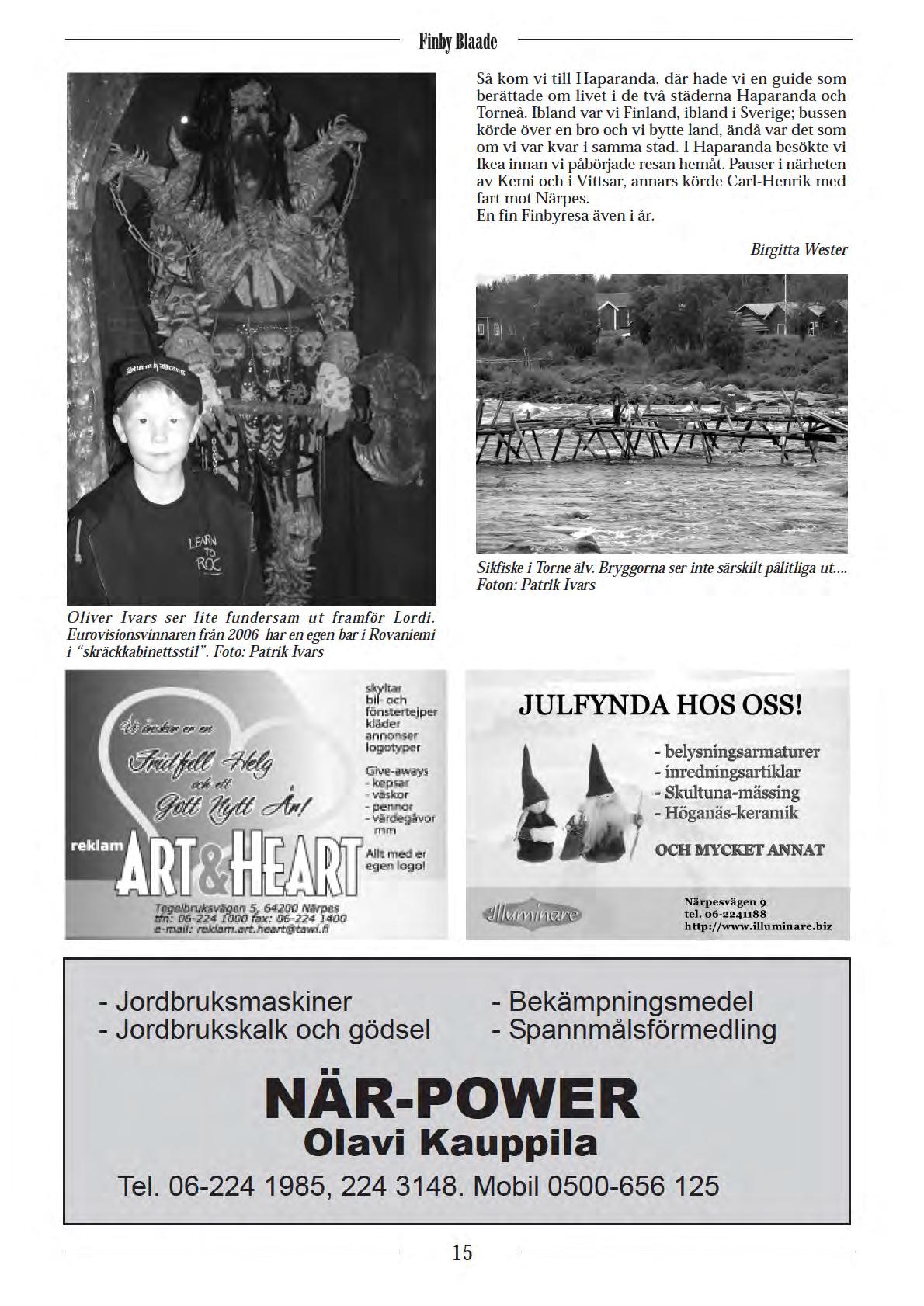 Ett omfattande arbete sattes ner på byhhistoriken Finbyboken - en by i Närpes. Den blev på hela 616 sidor utkom 16.12 1989 i 1.200 ex. FinbyBlaadeharsedanstarten1985årligen tryckts i en upplaga om 500-600 exemplar