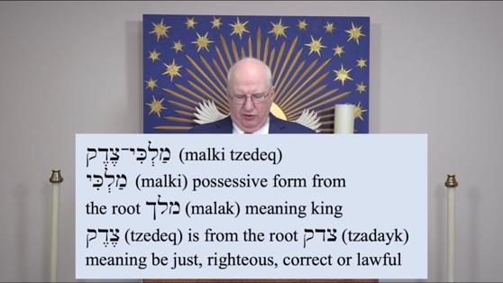 Title number one was his name, and its q®dRx_yI;kVlAm (malki-tzedeq) . It's a compound word. The yI;kVlAm (malki) is in the construct form, and it's from the root which means king, Klm (malak). The q®dRx (tzedeq) comes from the root qdx (tzadayk), and it means to be just, righteous, correct, or lawful. So he was king of righteousness. He was the king of everything correct, lawful, and right. So, this is his first title, King of Righteousness.