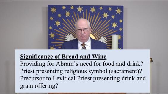 Now, Melchizedek came out. He met Abram and he brought him bread and wine.