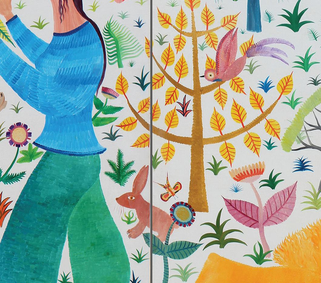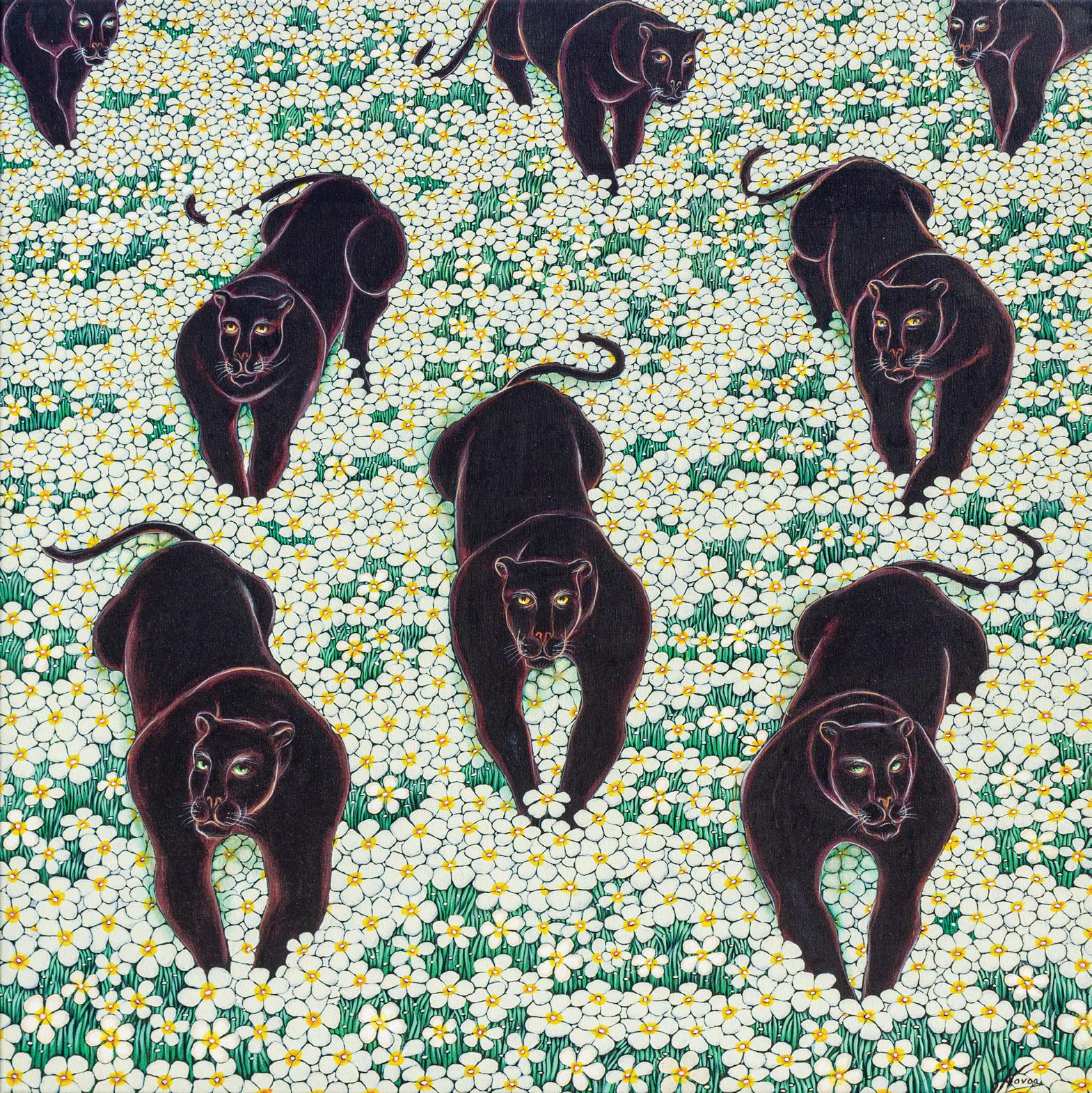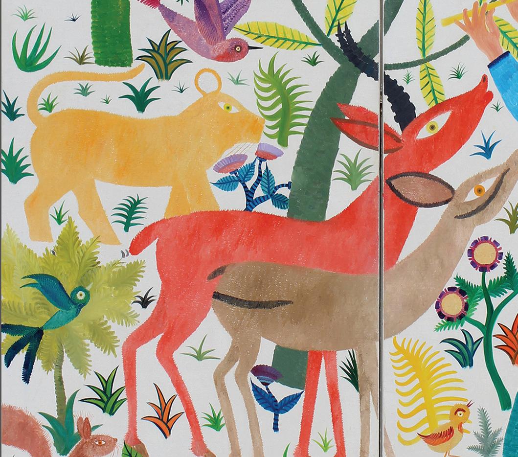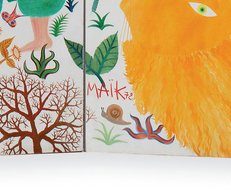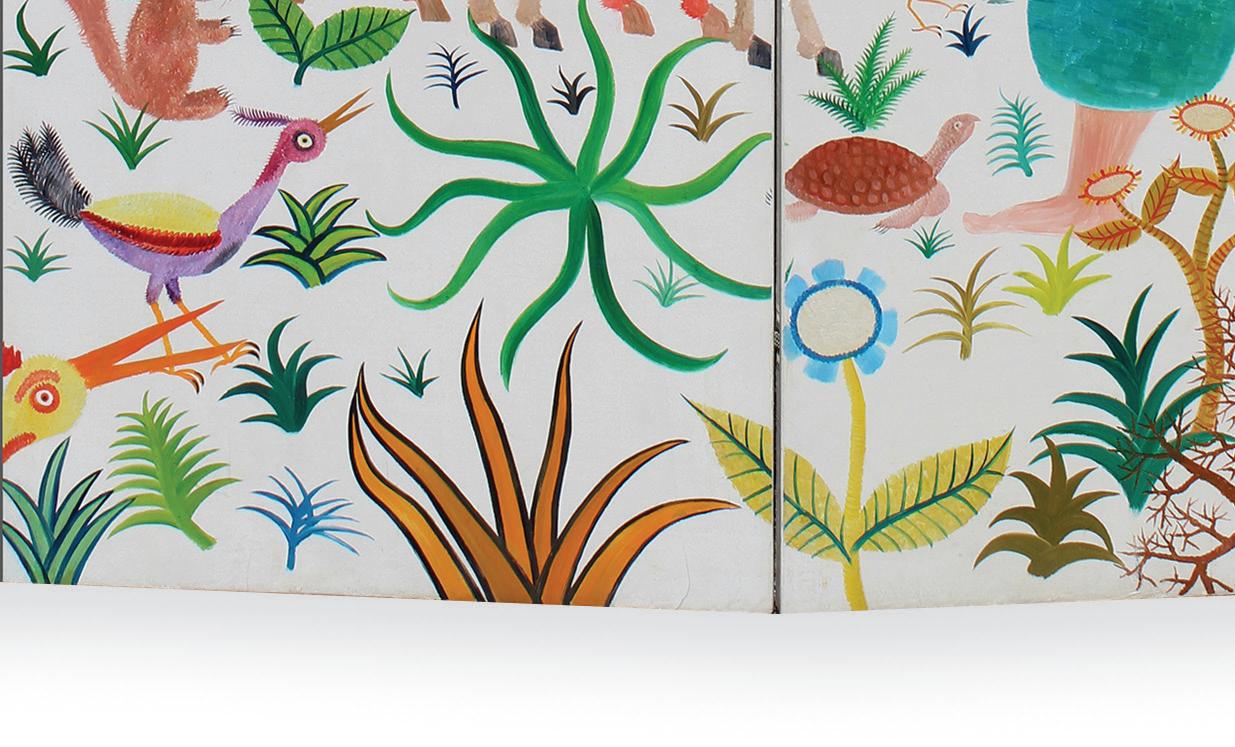Henri Maïk Jungle Debut, 1972 | oil on panel 59 x 78 3/4 in. (four panel screen) FG© 140754