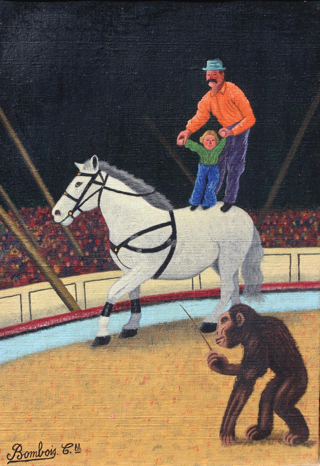 Bombois was born in 1883 in the Côte-d’Or, France, in humble circumstances. His childhood was spent living on a barge and attending a local school until the age of twelve when he became a farm worker. During his free time, he drew and competed in wrestling competitions at local fairs. He became a champion wrestler before joining a traveling circus as a strongman and wrestler.
