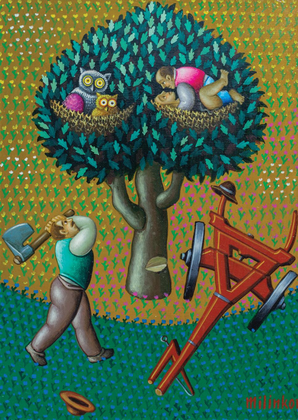 Tall and dark, Milinkov’s appearance is a striking contrast to the small paintings he creates with infinite patience. He paints an average of ten hours a day, and each painting represents three to four weeks of work. Milinkov’s work is astonishingly rich and varied.