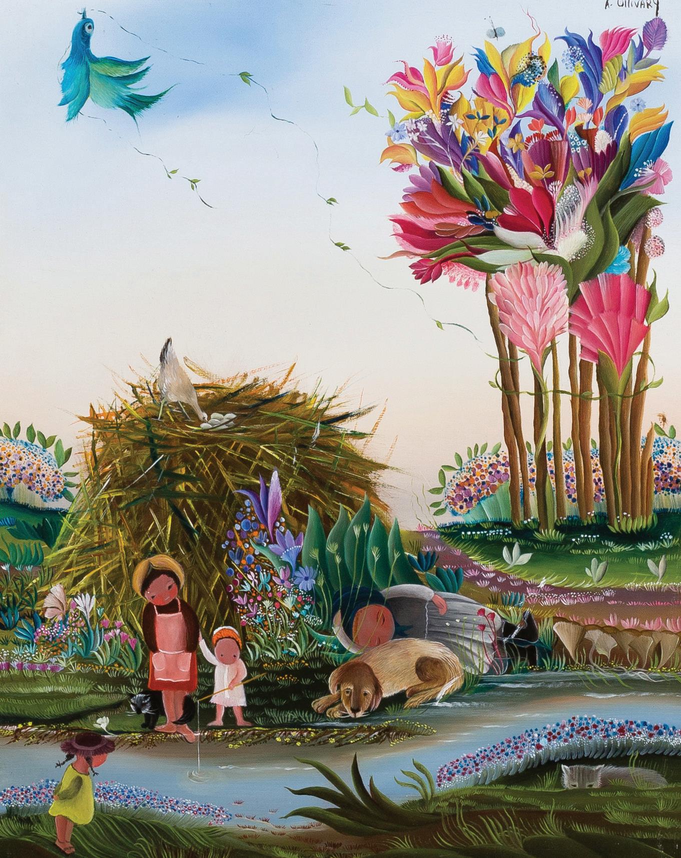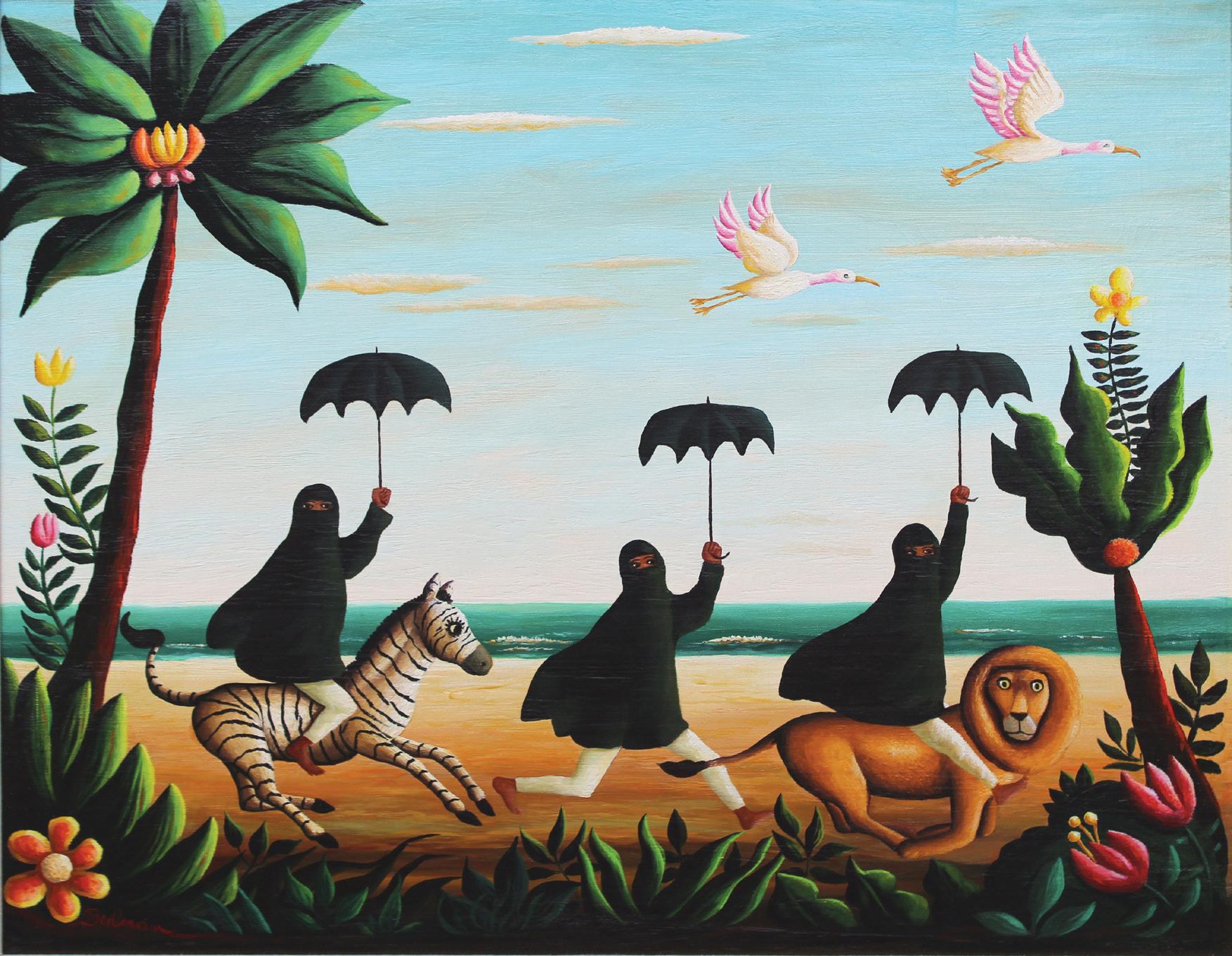 While the first Naïf painters made an appearance in the 1600’s, the work of Henri Rousseau in the late 1800’s strongly influenced a future generation of artists who desired a primitive freshness in their work. The unfettered creativity that came with being self-taught defined the Naif painter. As modern living reached all continents in the 20th century, the art world developed an affinity for the sophisticated simplicity of Naïf paintings, contrasting the graying and troubled world outside.