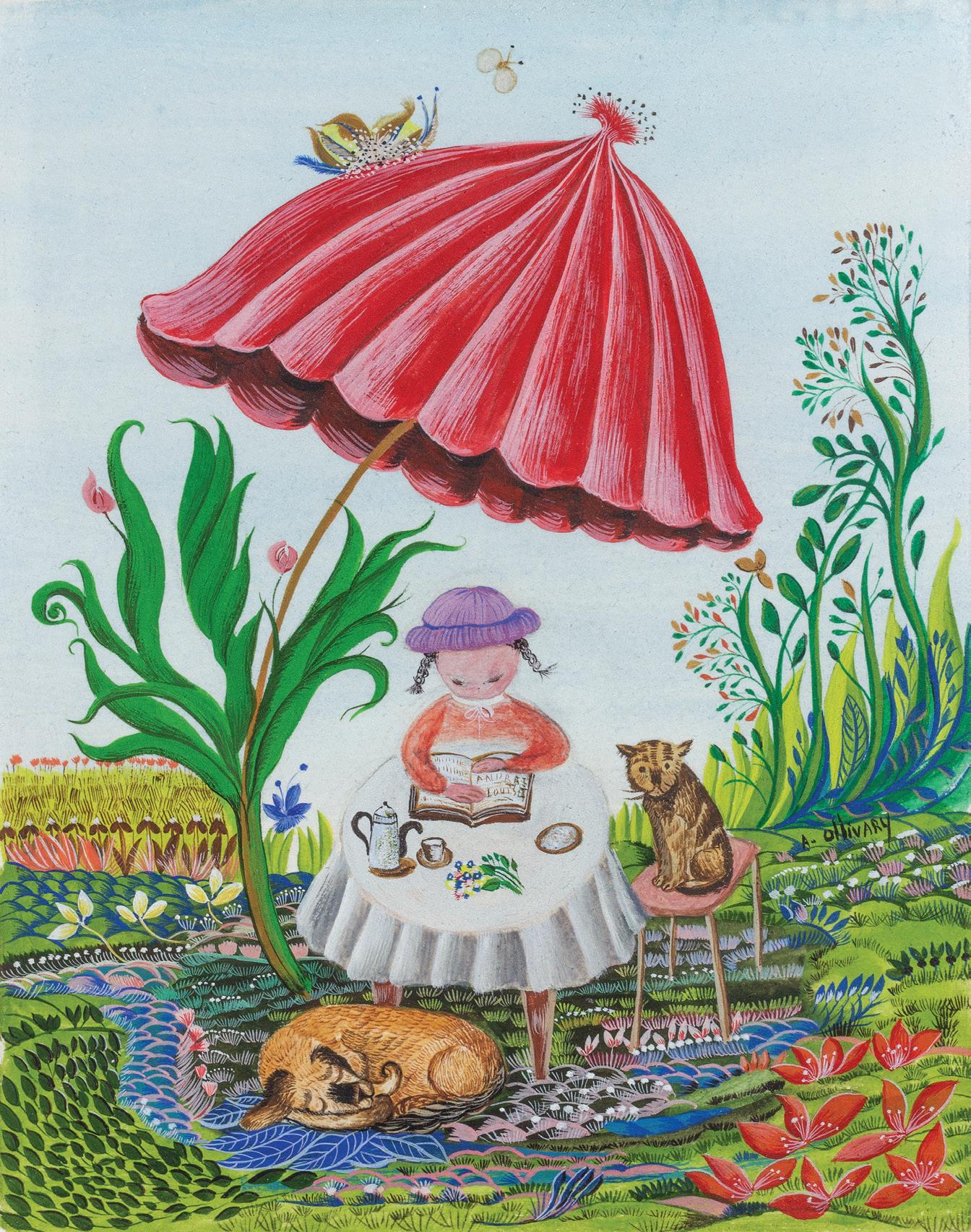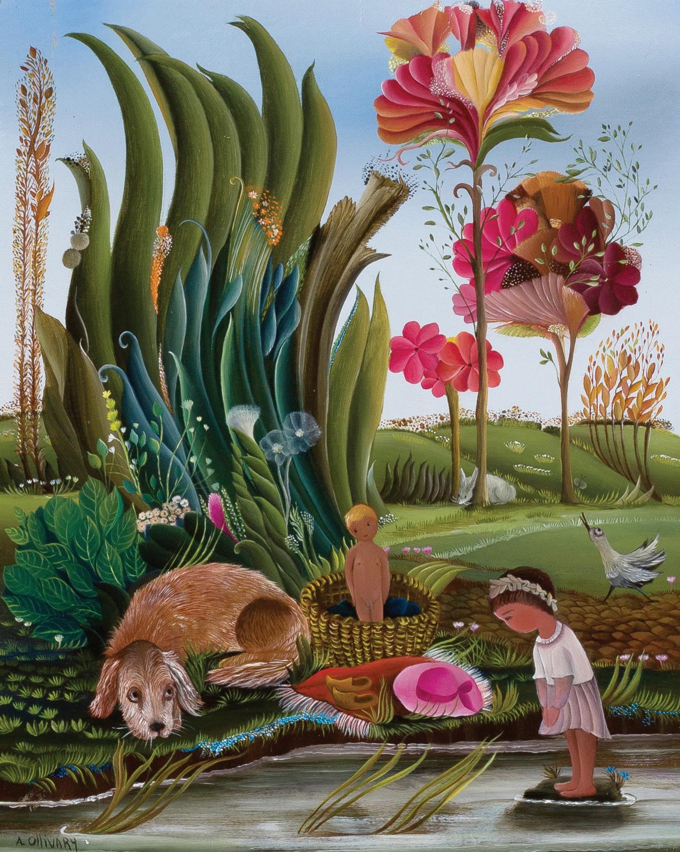 From Marseille, Annette Ollivary went to Paris to study painting at the Académie Julian. Those who see her paintings today are inevitably reminded of the work of Rousseau, but the resemblance is only superficial. Annette declares that she had never seen any of his work when she started to paint. A careful study of her canvases reveals that any parallel between her work and that of Rousseau is not justified. Annette paints in a manner that is distinctly her own.
