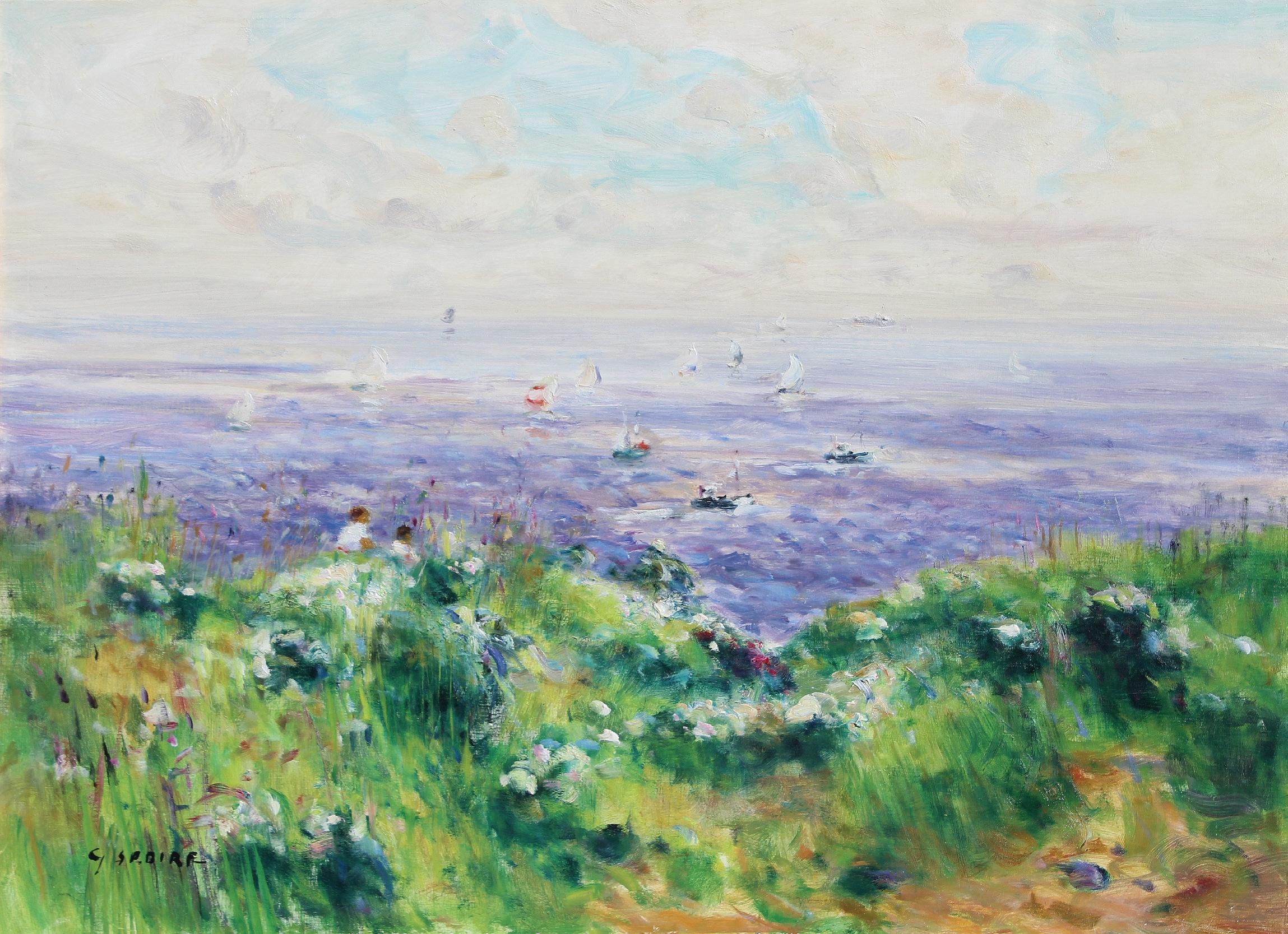 A talented, independent, and productive painter, Sébire is recognized today as one of the premier Post-Impressionists from the famed l’École de Rouen and a master of plein-air painting. Sébire’s eloquent paintings revolve around the song of the earth, the beautiful landscapes, seascapes, and villages where life is imbued with blue skies, light winds, colorful regattas, and afternoons in the garden or by the seashore. His works bridge the gap between the traditional and the modern, with straightforward representations becoming luscious expressionistic works.