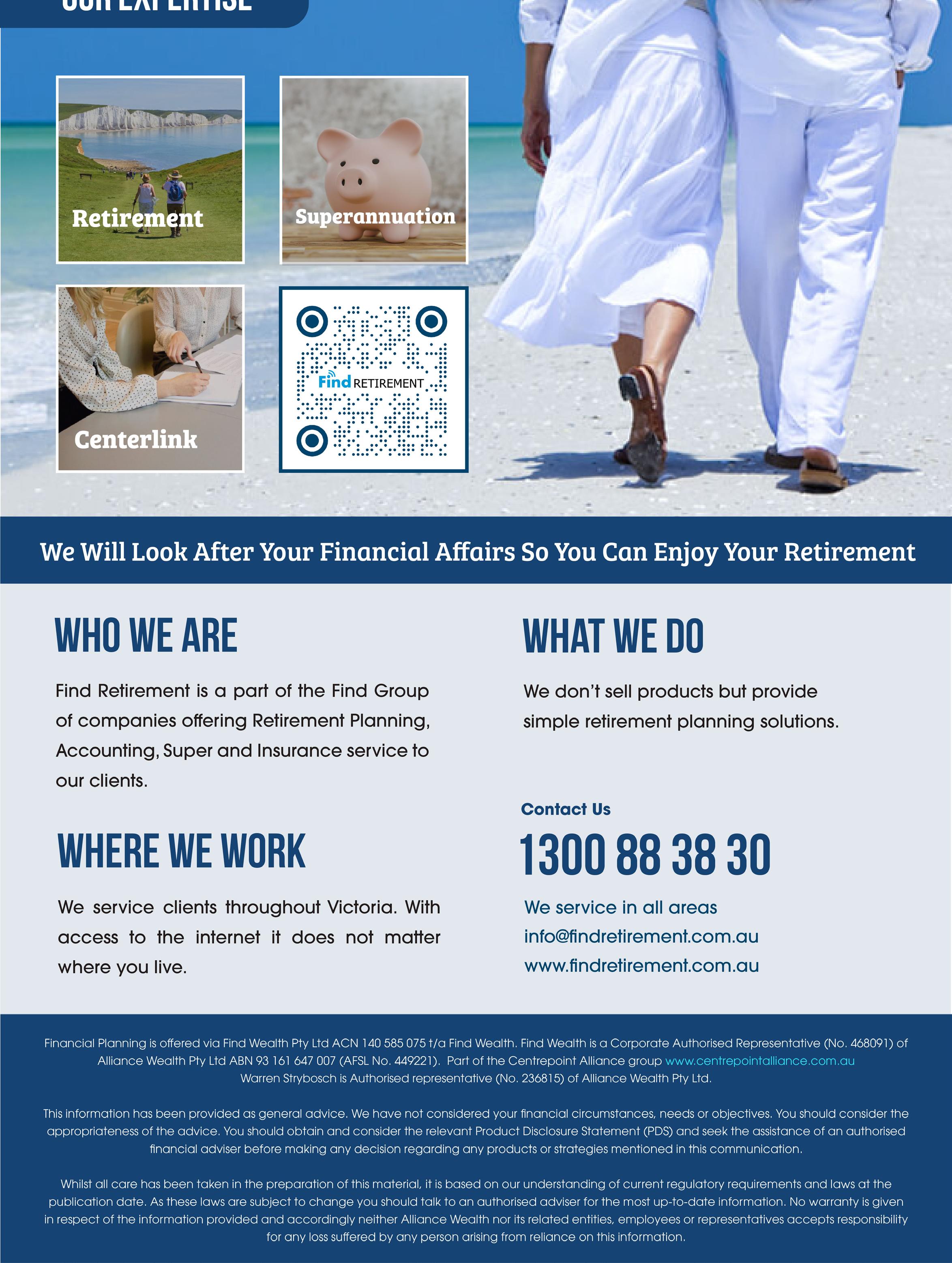 Readers are advised that the Find Geelong accepts no responsibility for financial, health or other claims published in advertising or in articles written in this newspaper. All comments are of a general nature and do not take into account your personal financial situation, health and/or wellbeing. We recommend you seek professional advice before acting on anything written herein.