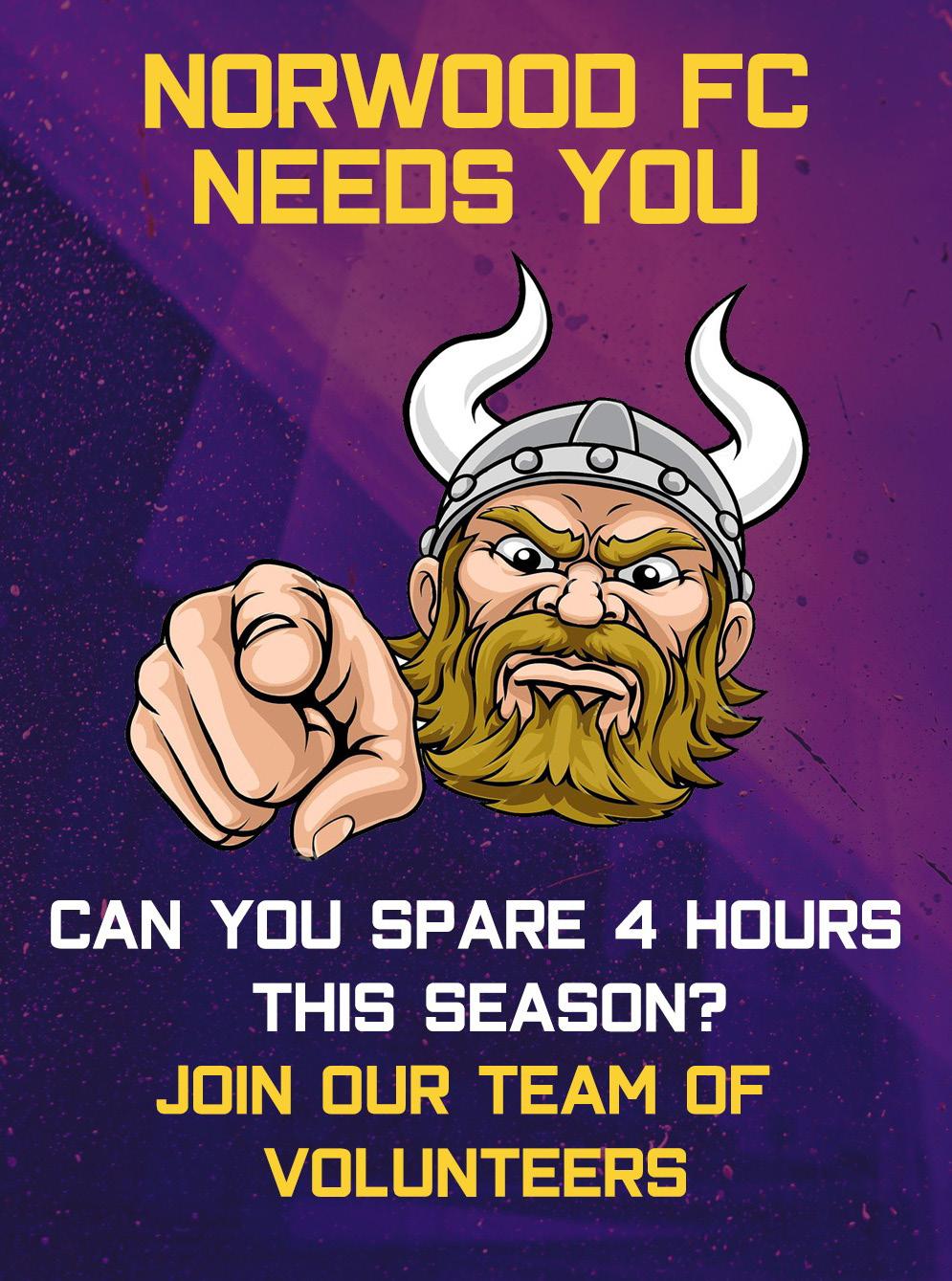 We need you! Volunteers are the lifeblood of the Norwood FC. If you’ve ever been interested in becoming a volunteer and helping out the Norwood FC, we have something for you to do.