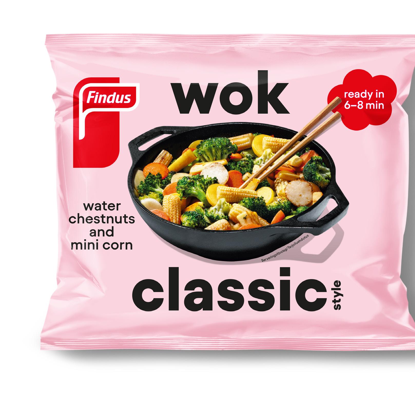 På Findus har vi försett svenska hushåll med wokmixar sedan 1989. Under 2023 fortsatte vi vår asiatiska smakresa med uppdaterad recept och ny förpackningsdesign för alla wokmixar. Varje blandning består av färdigskurna krispiga grönsaker som går snabbt och lätt att använda i köket direkt från frysen. Tack vare sina korta tillagningstid på 6-8 minuter har de blivit en riktigt populär vardagshjälte. Med den nya designen vill vi göra det enklare att välja gott och grönt när man ska göra sina matinköp.