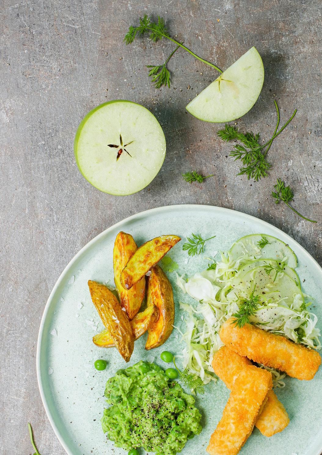 Jag tror det kan ha att göra med det traditionella sättet att äta panerad fisk på. På restaurang är den ofta friterad och serveras med potatis, eller pommes frites och fet sås. Ett tips kan vara att i stället svänga ihop en fräsch sallad till den panerade fisken för att göra rätten mer modern och attraktiv. Dessutom blir våra panerade fiskar härligt krispiga och perfekt tillagade om de tillagas i ugn eller airfryer där inget extra fett behöver tillsättas.